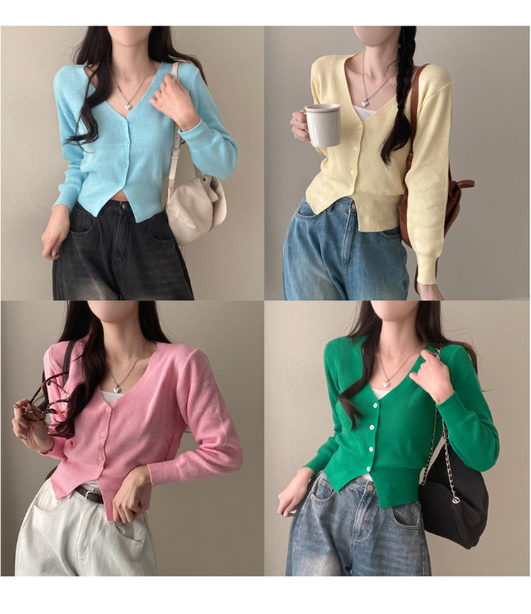 SGD26006 버니 허리잘록 하찌 브이넥 트임 가디건