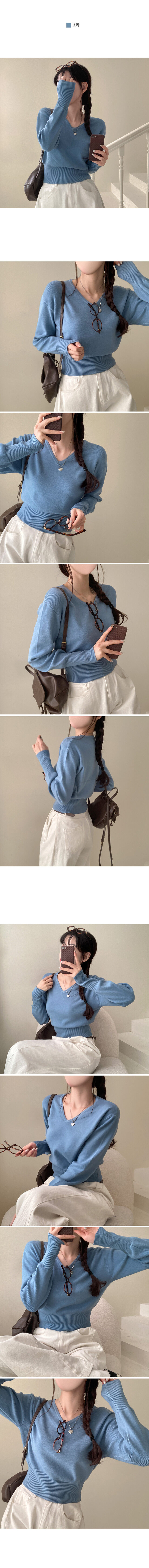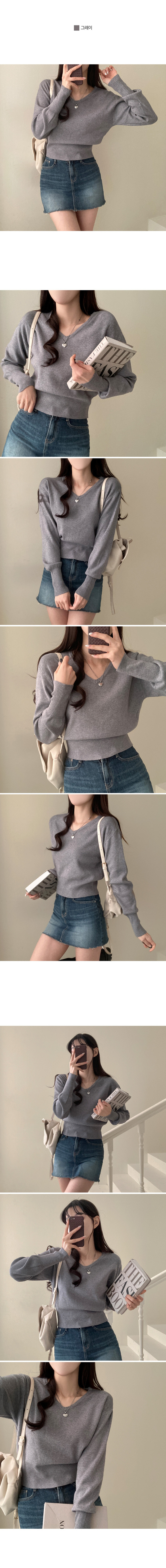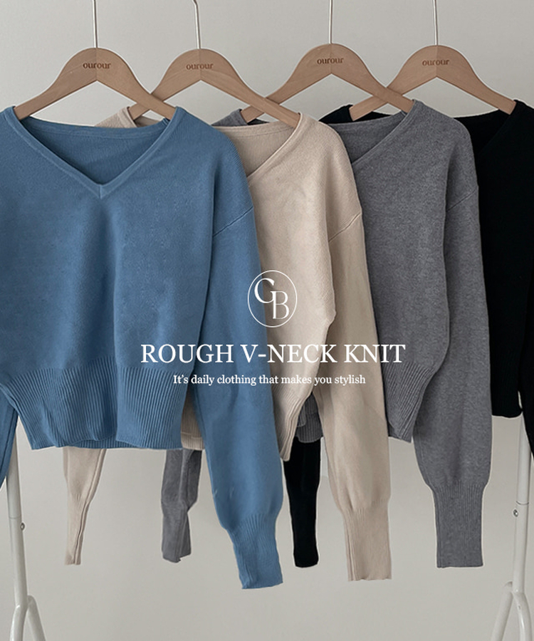 SNT30104 러프 베이직 밑단 시보리 브이넥 니트