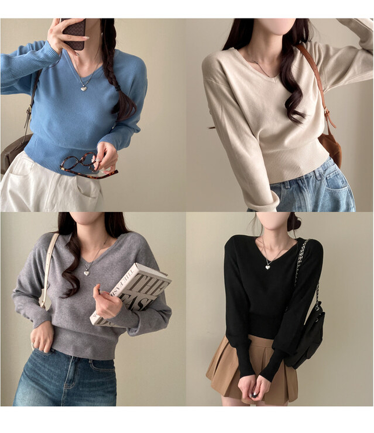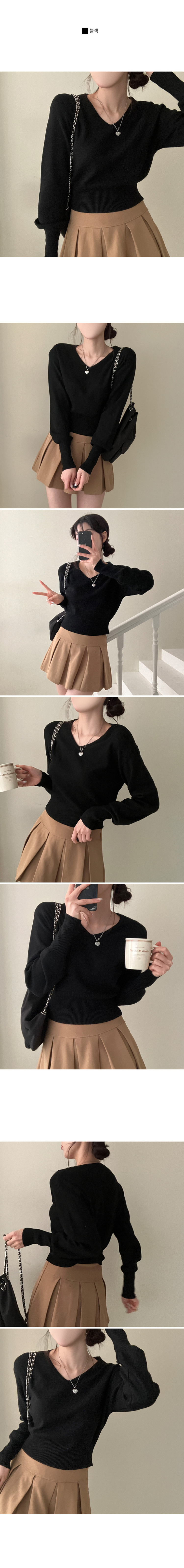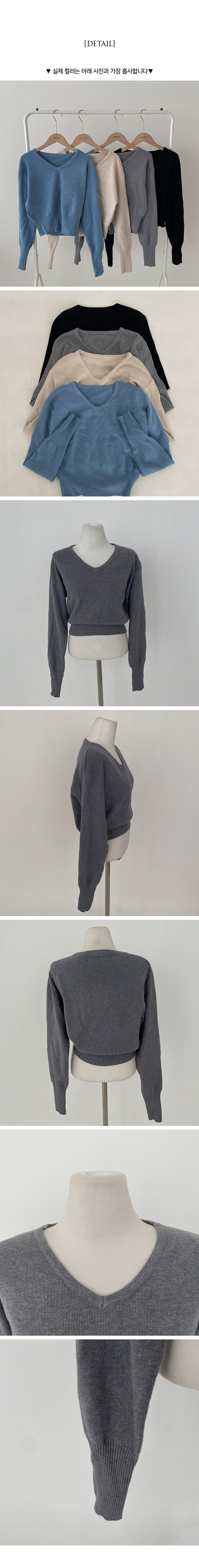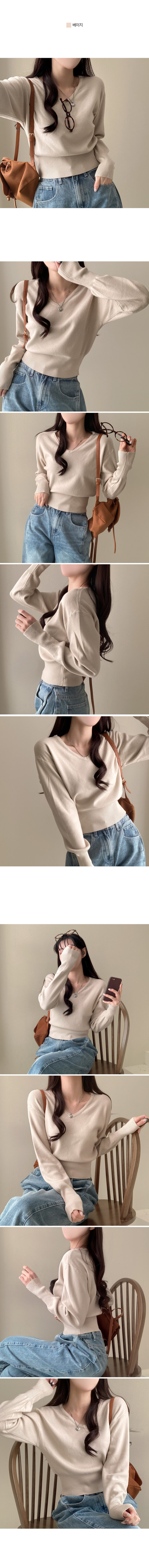 SNT30104 러프 베이직 밑단 시보리 브이넥 니트
