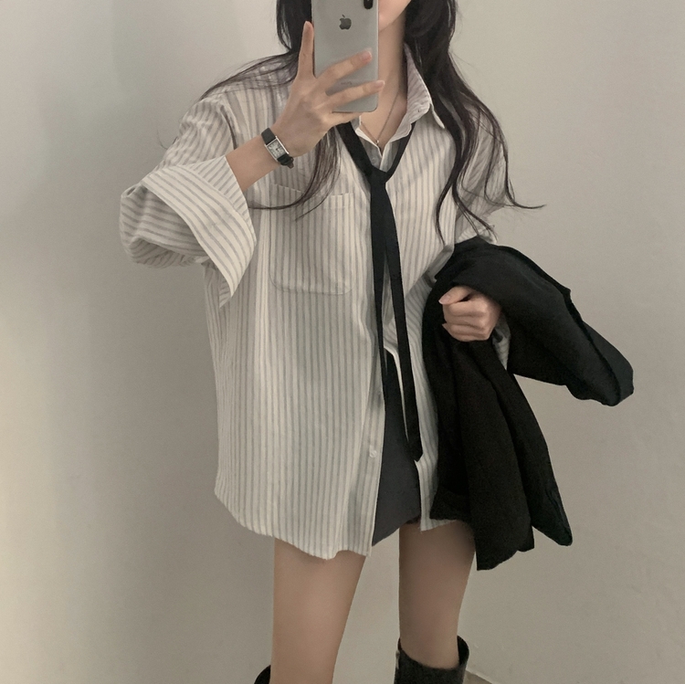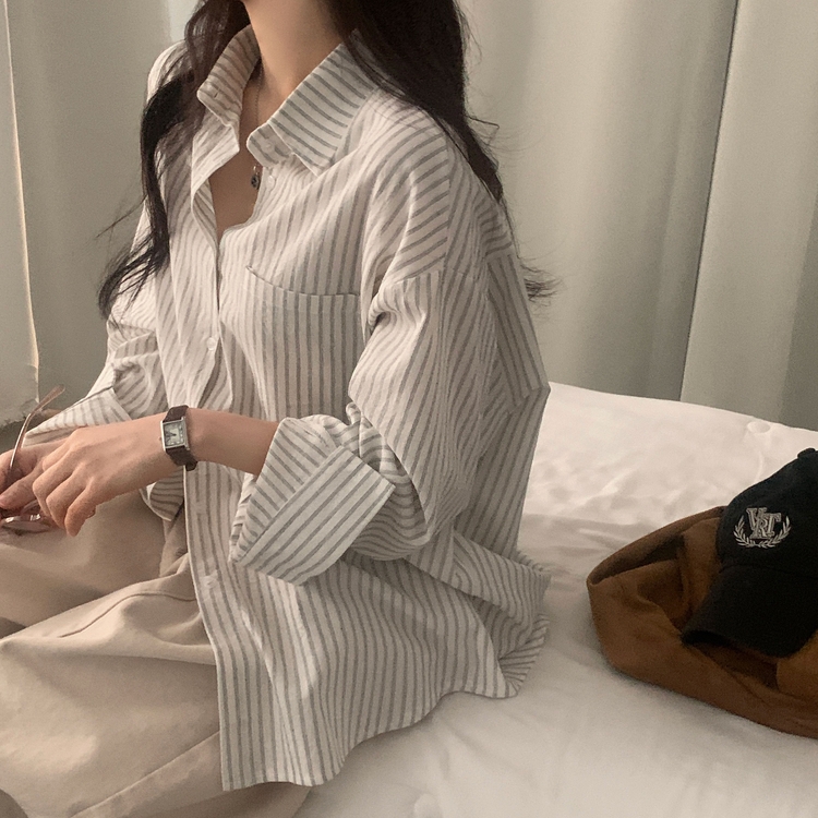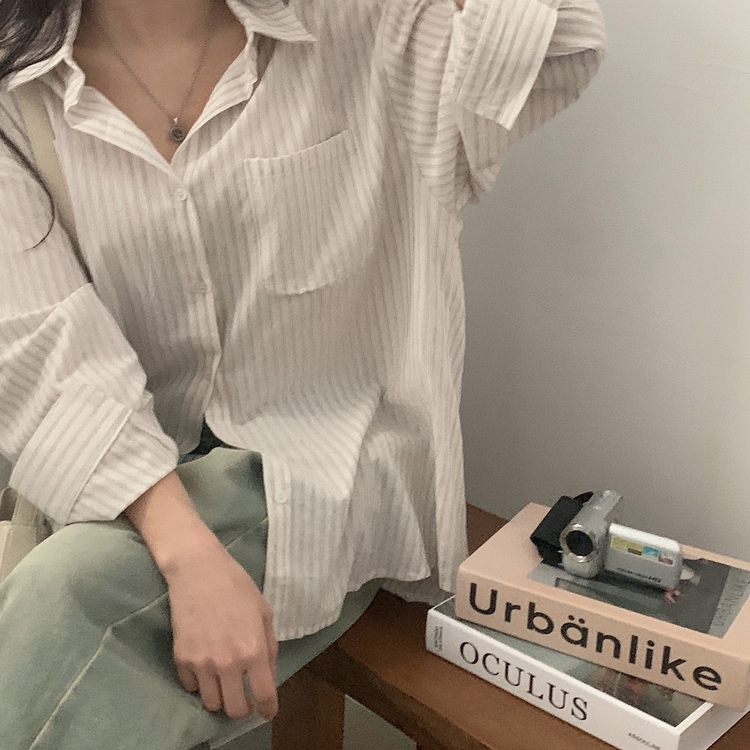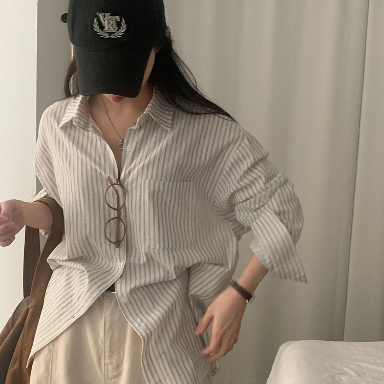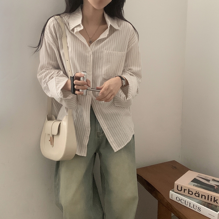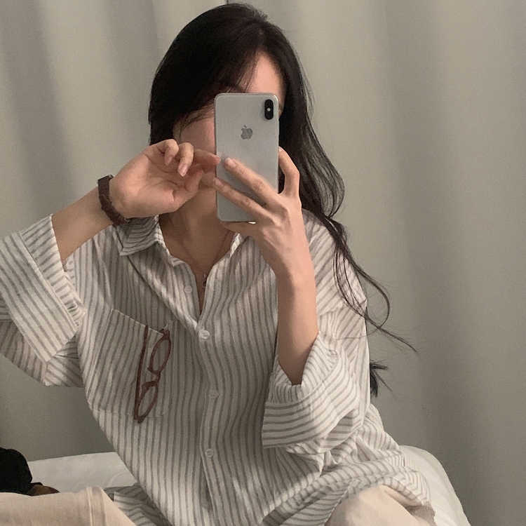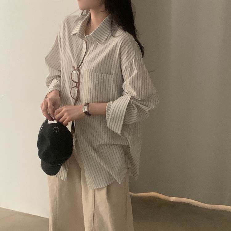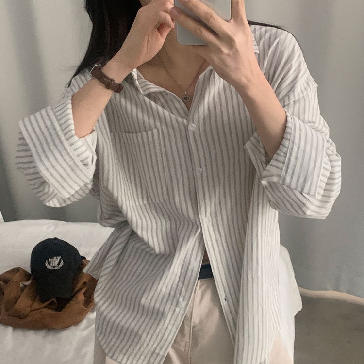 SBS24651 허니 스트라이프 코튼 포켓 오버핏 셔츠남방 3color