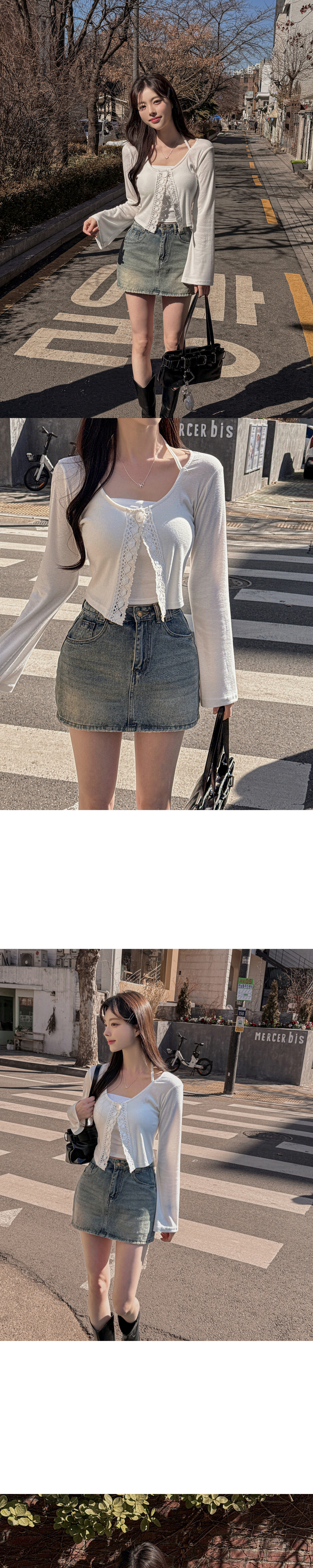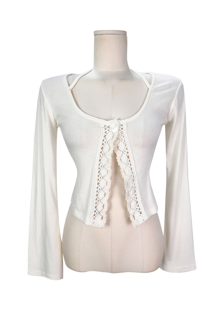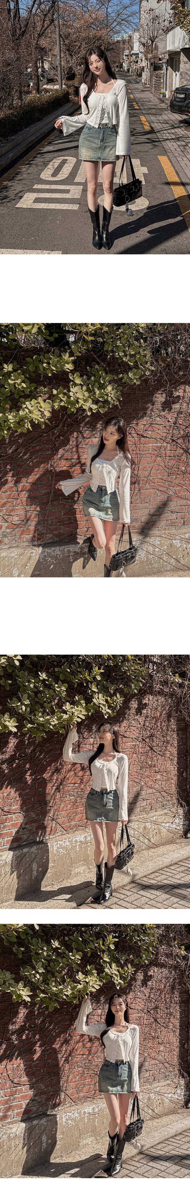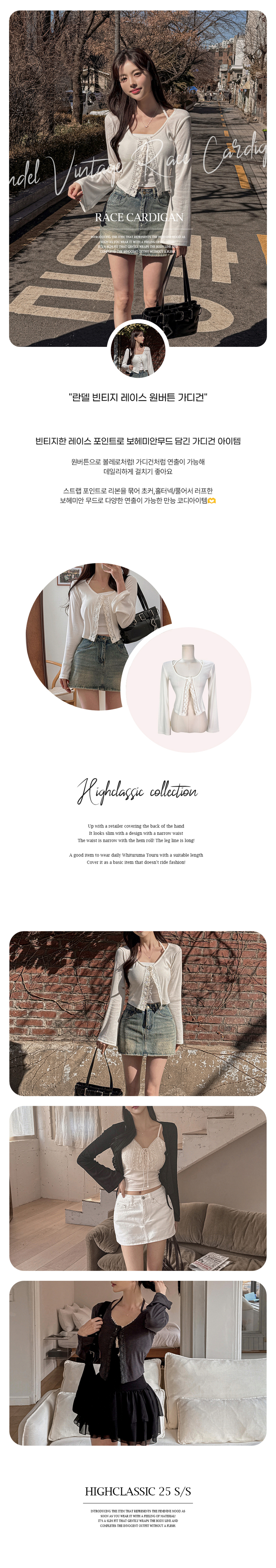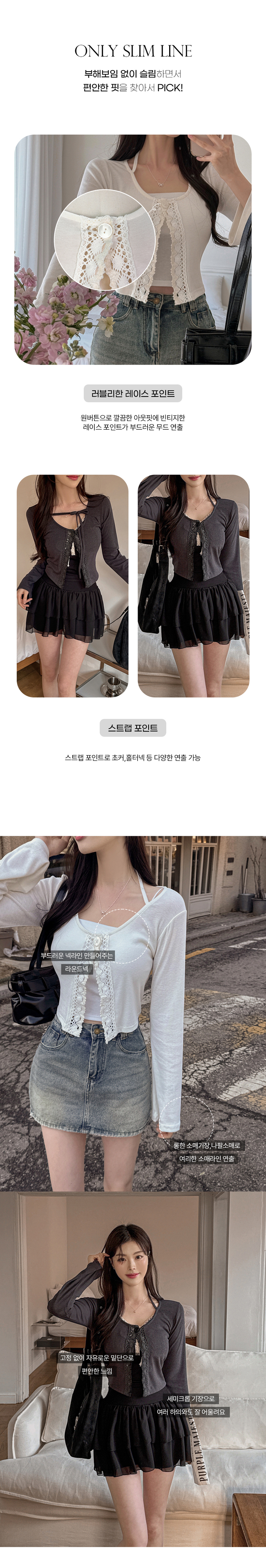 SGD26161 란델 라운드넥 스트랩 나팔소매 빈티지레이스 원버튼 세미크롭 가디건