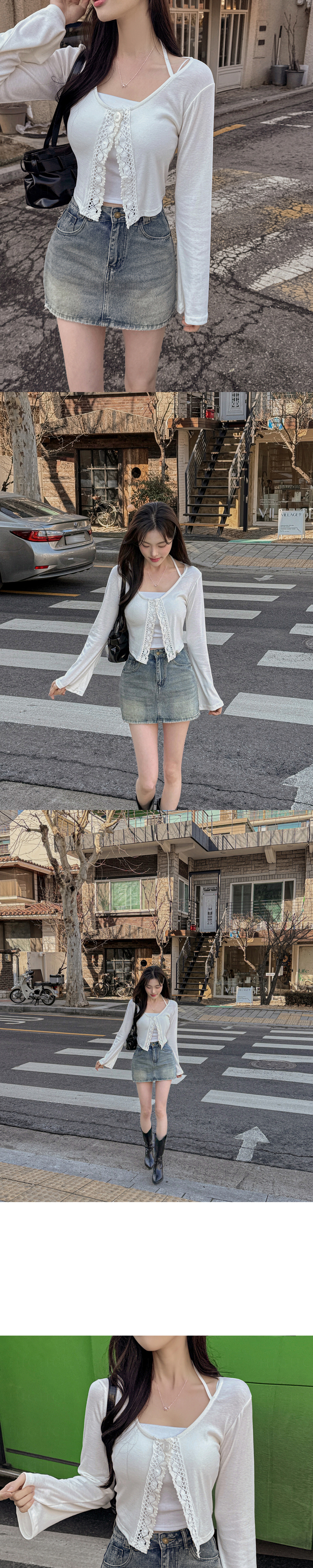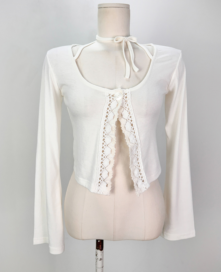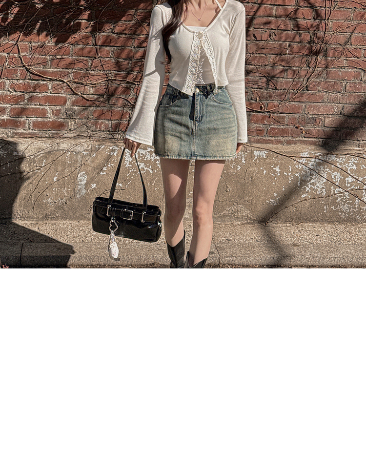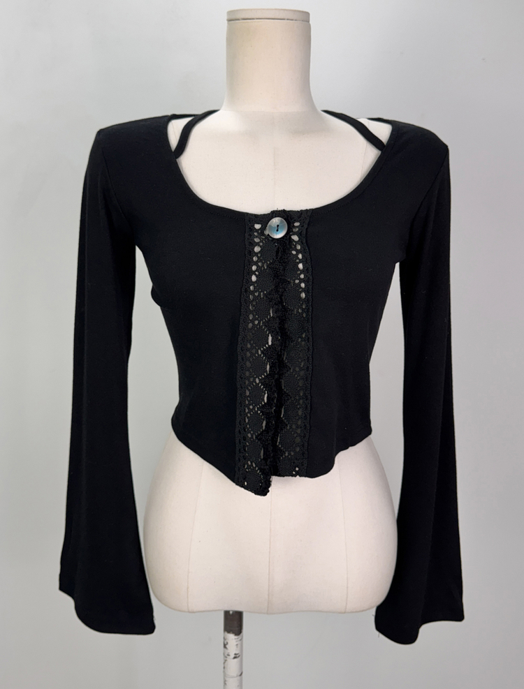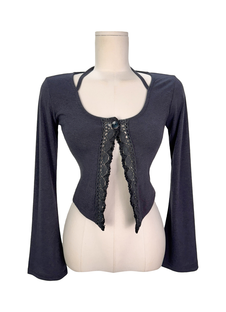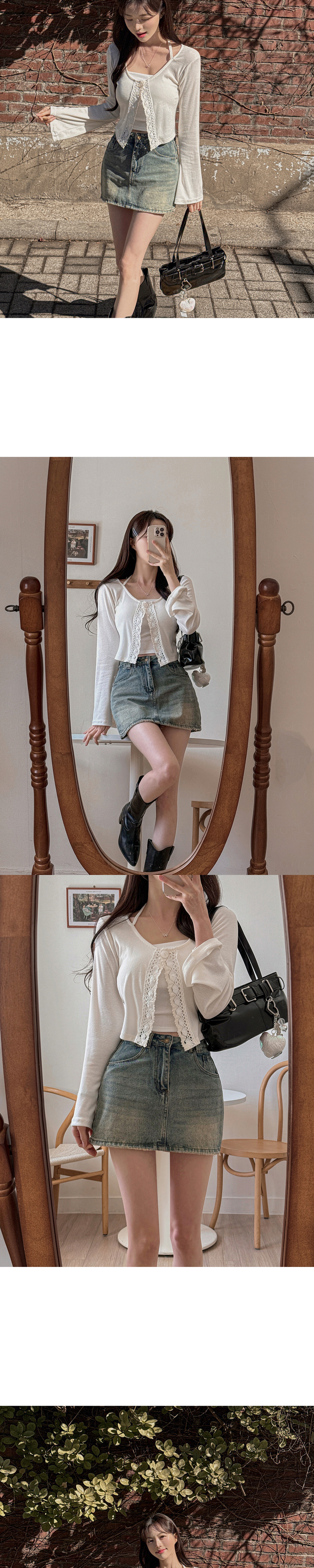 SGD26161 란델 라운드넥 스트랩 나팔소매 빈티지레이스 원버튼 세미크롭 가디건