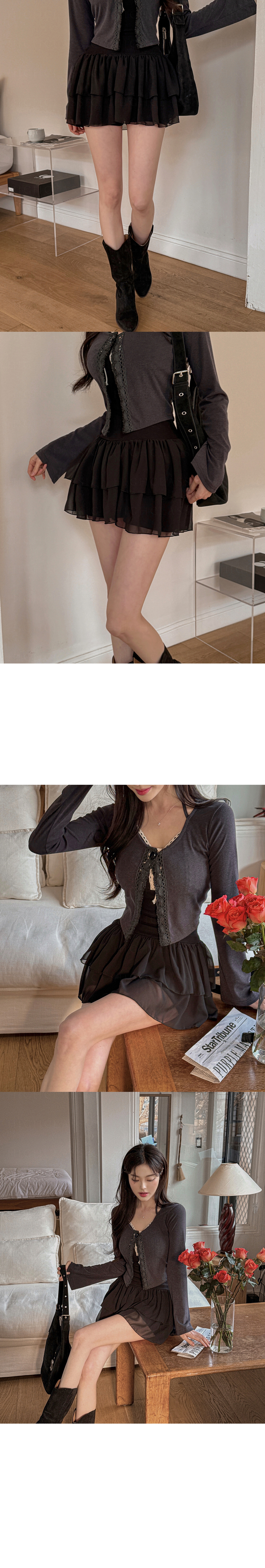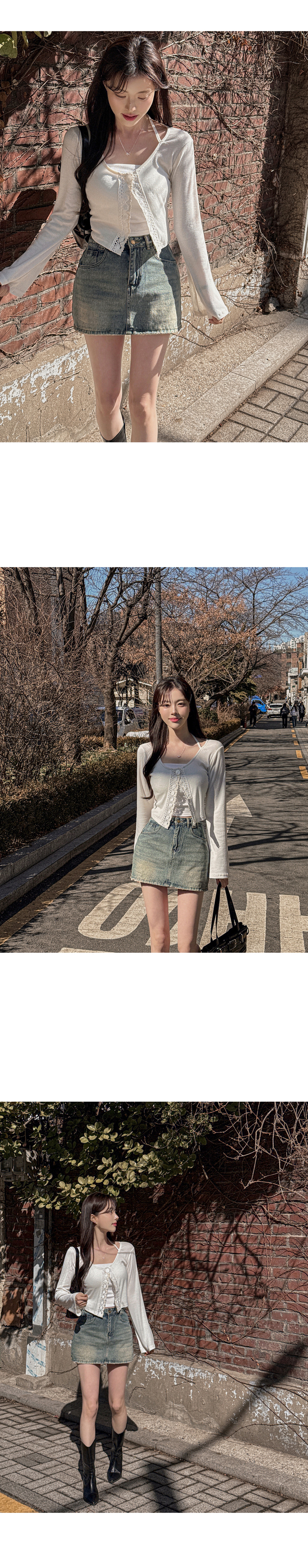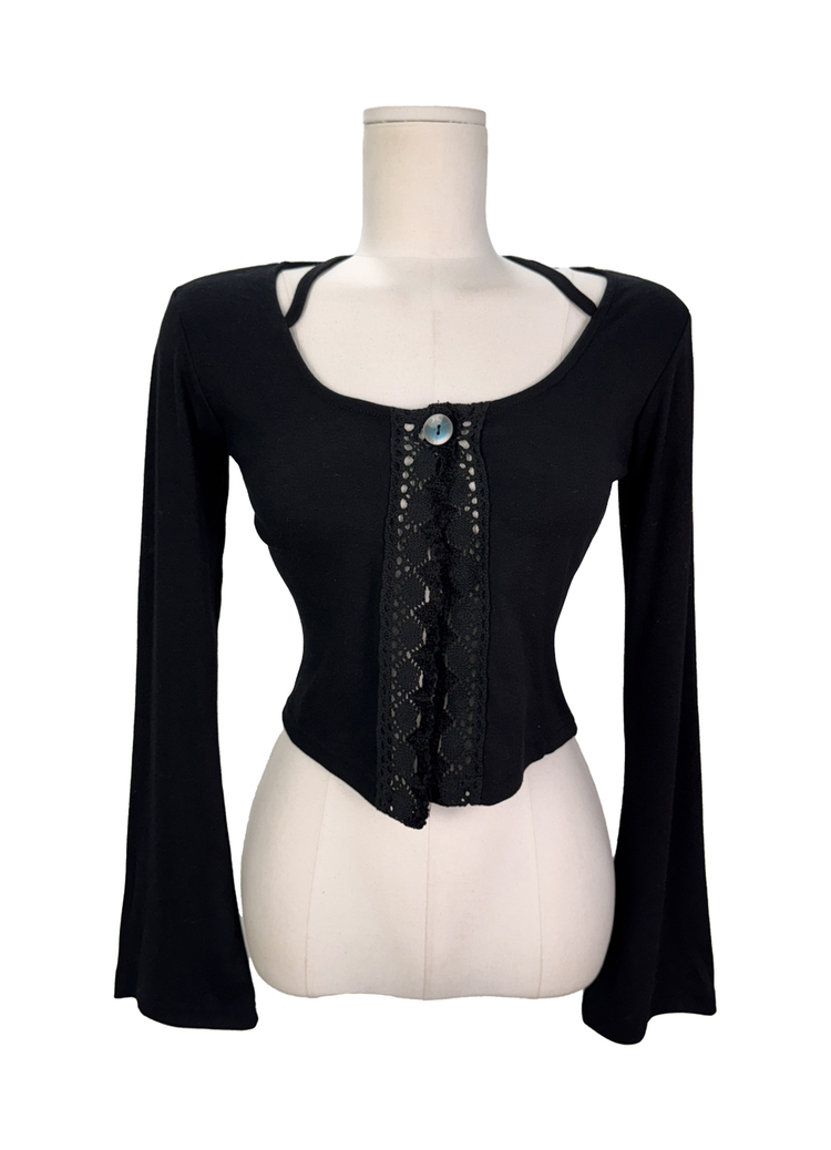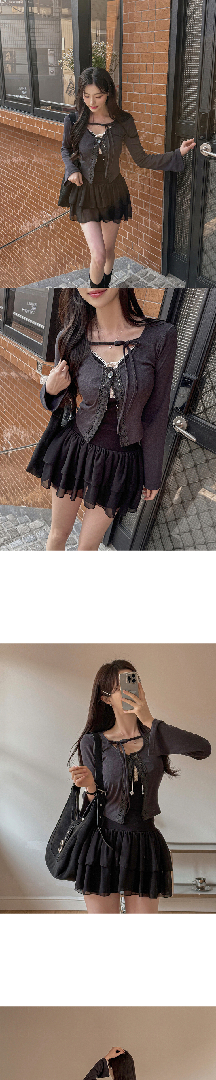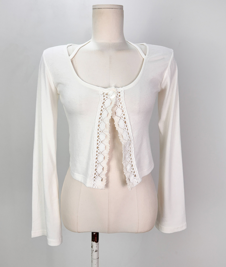 SGD26161 란델 라운드넥 스트랩 나팔소매 빈티지레이스 원버튼 세미크롭 가디건