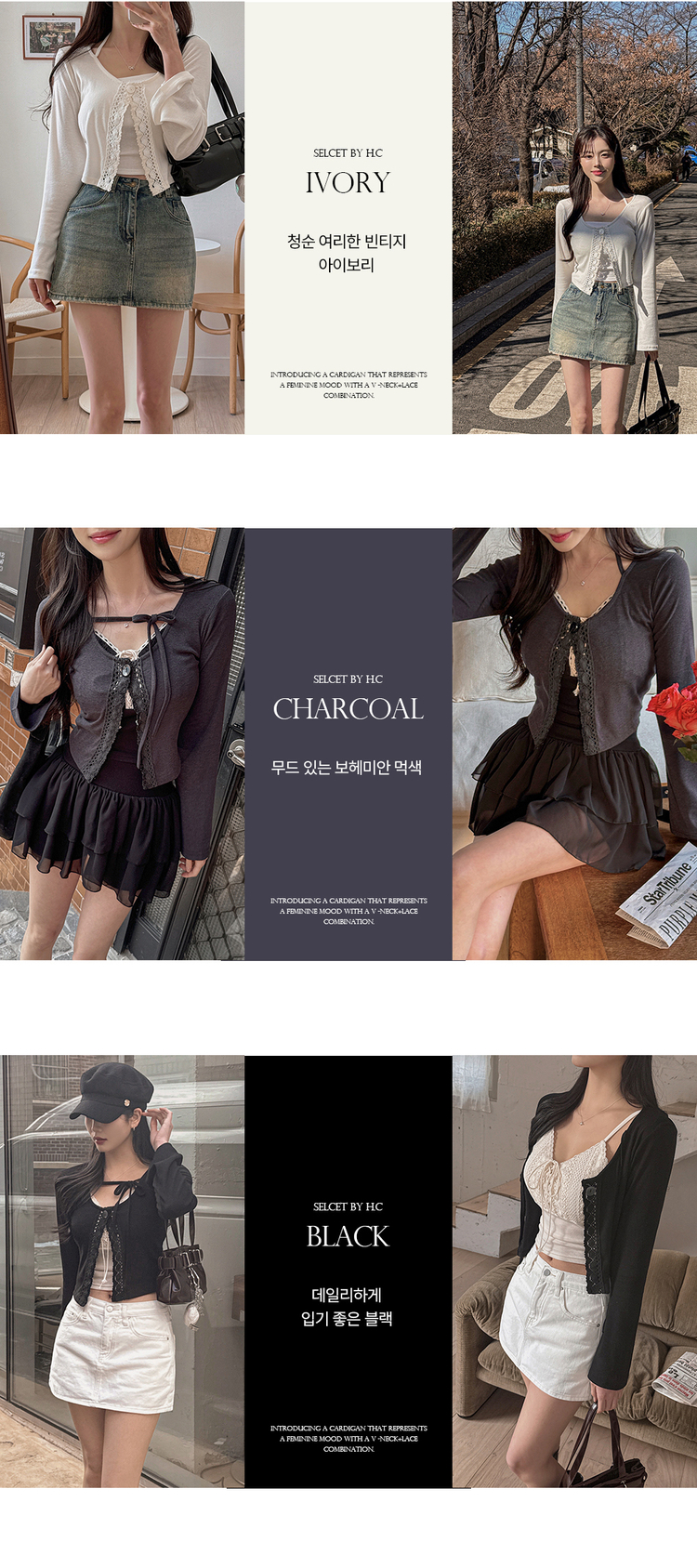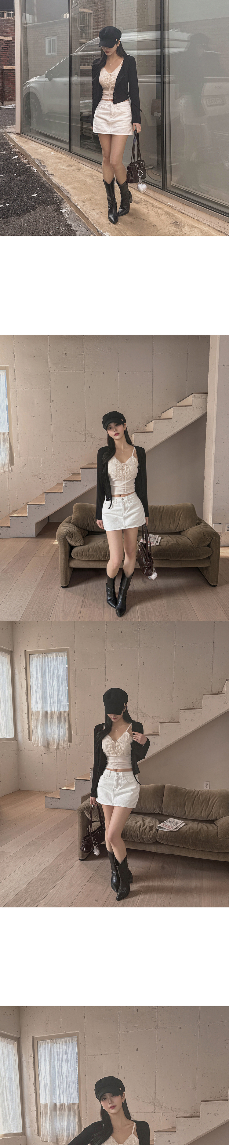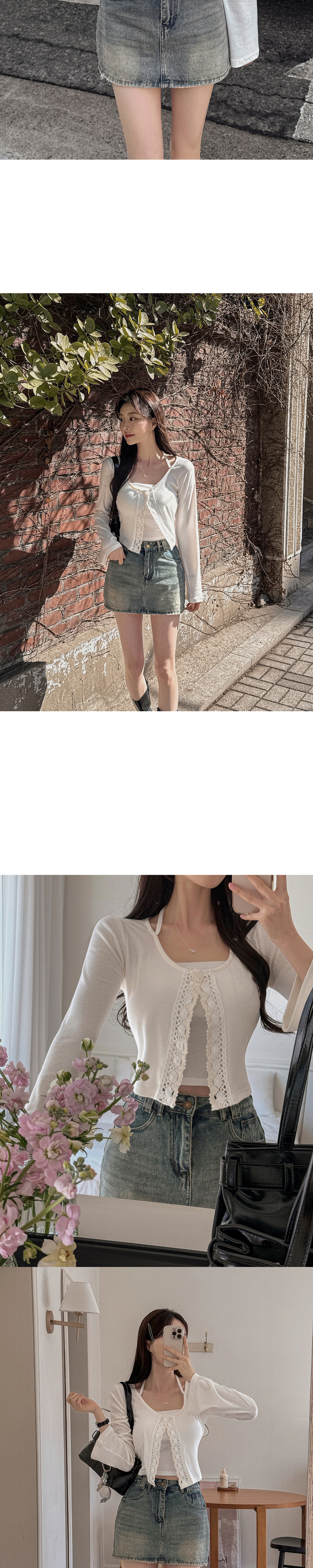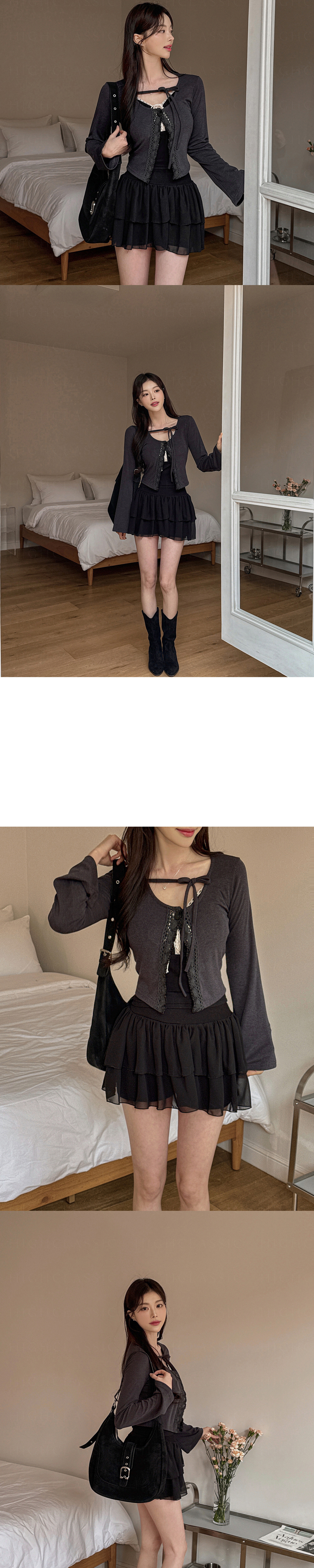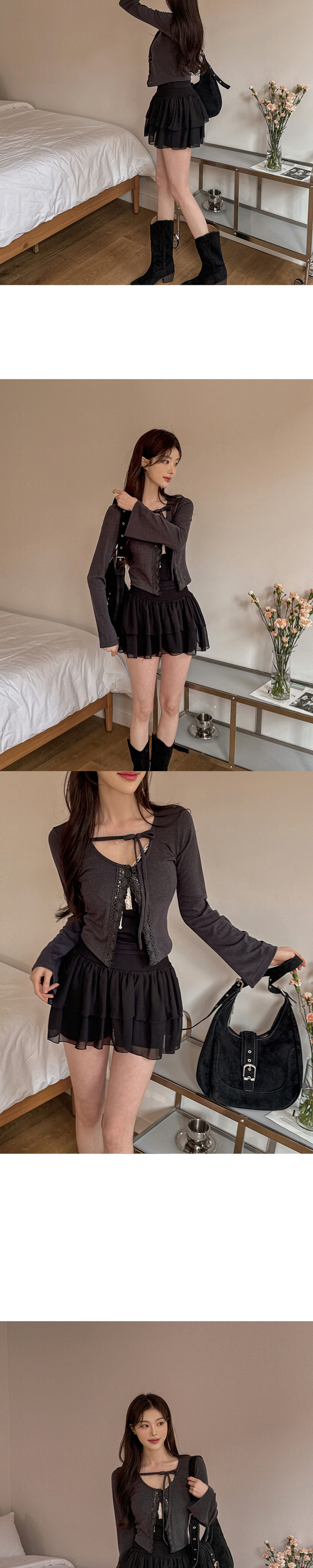 SGD26161 란델 라운드넥 스트랩 나팔소매 빈티지레이스 원버튼 세미크롭 가디건