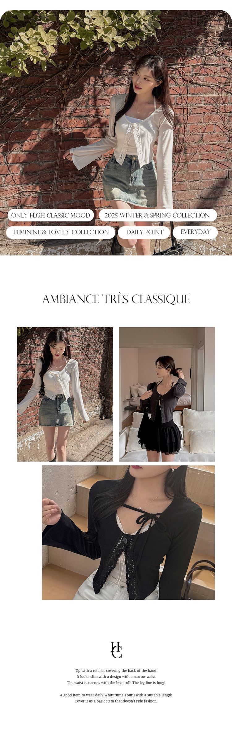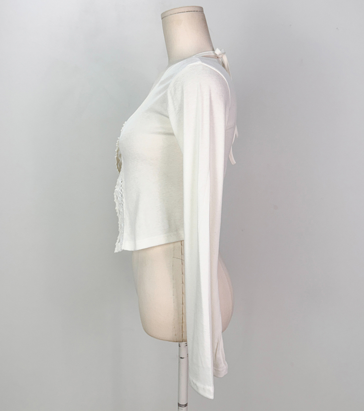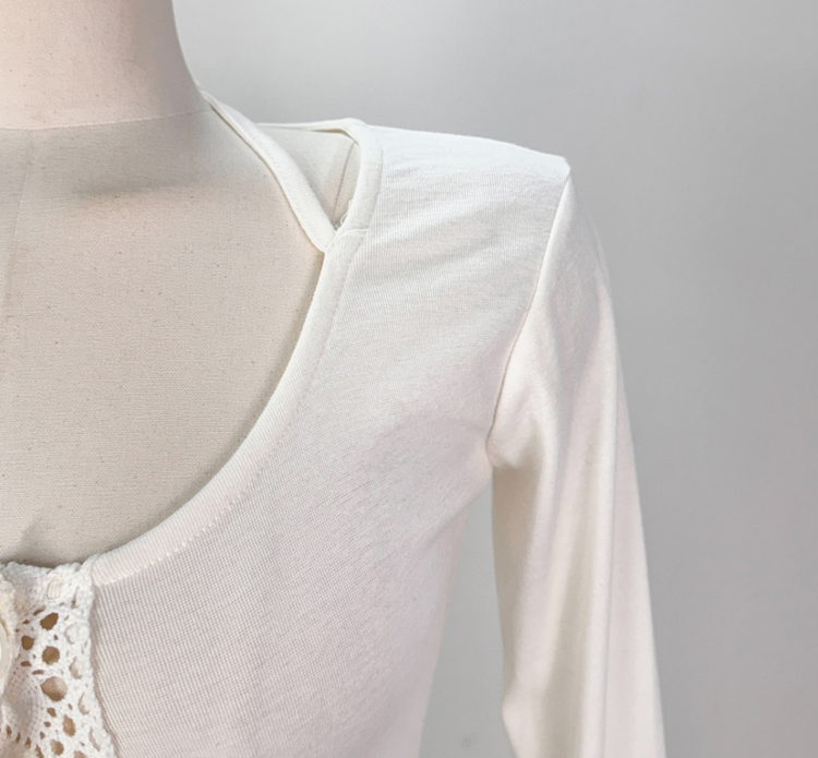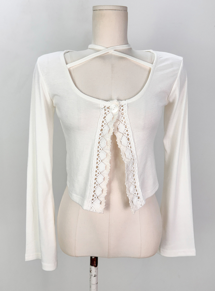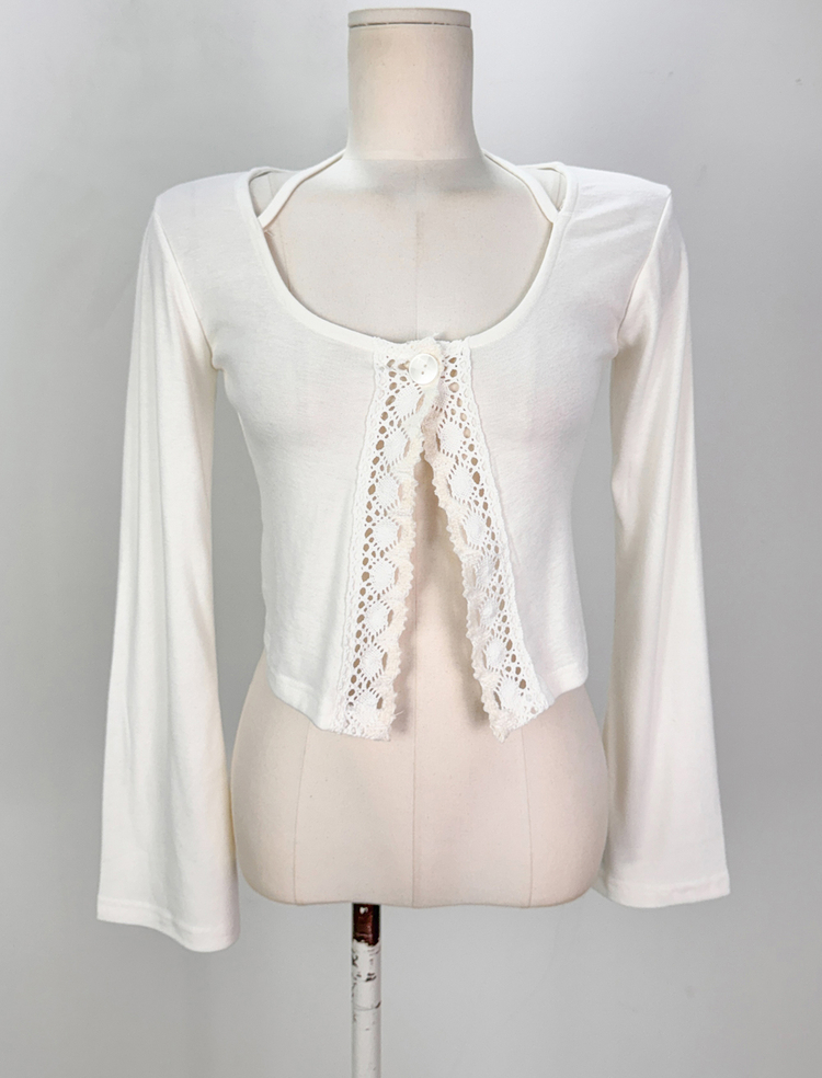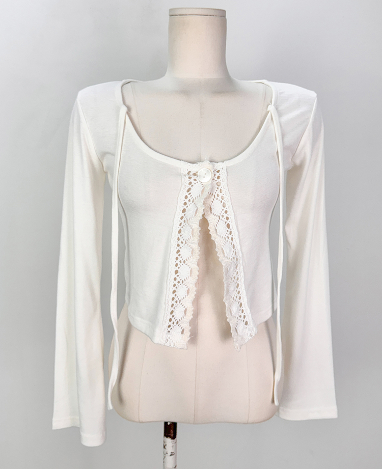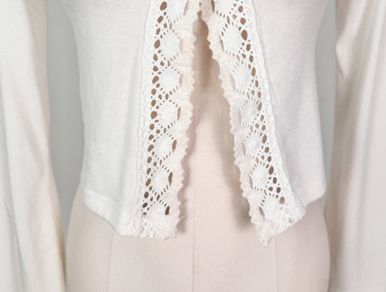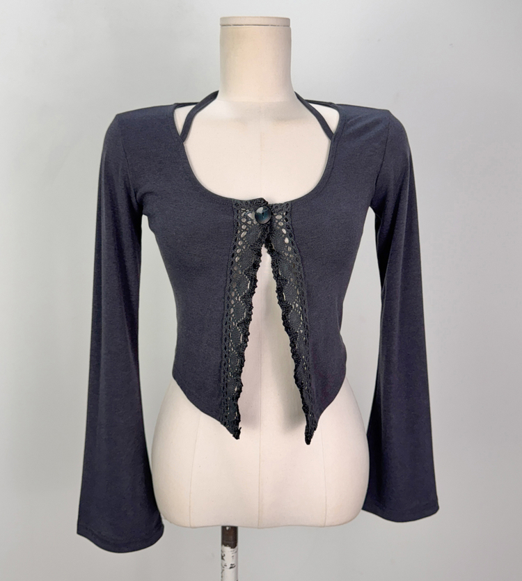 SGD26161 란델 라운드넥 스트랩 나팔소매 빈티지레이스 원버튼 세미크롭 가디건