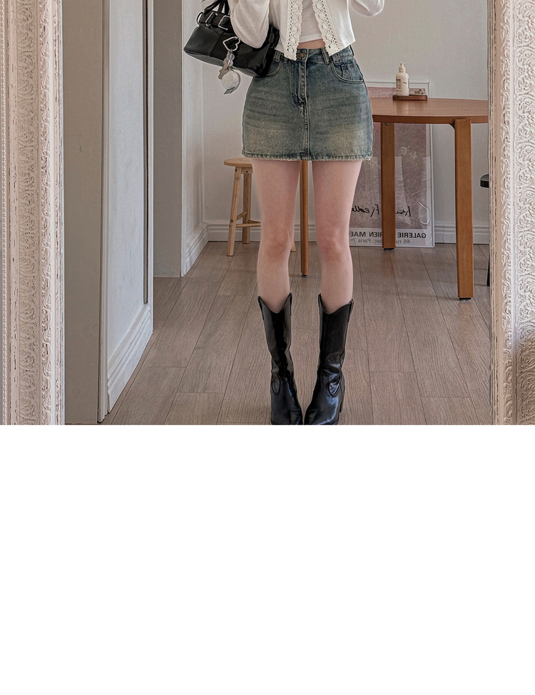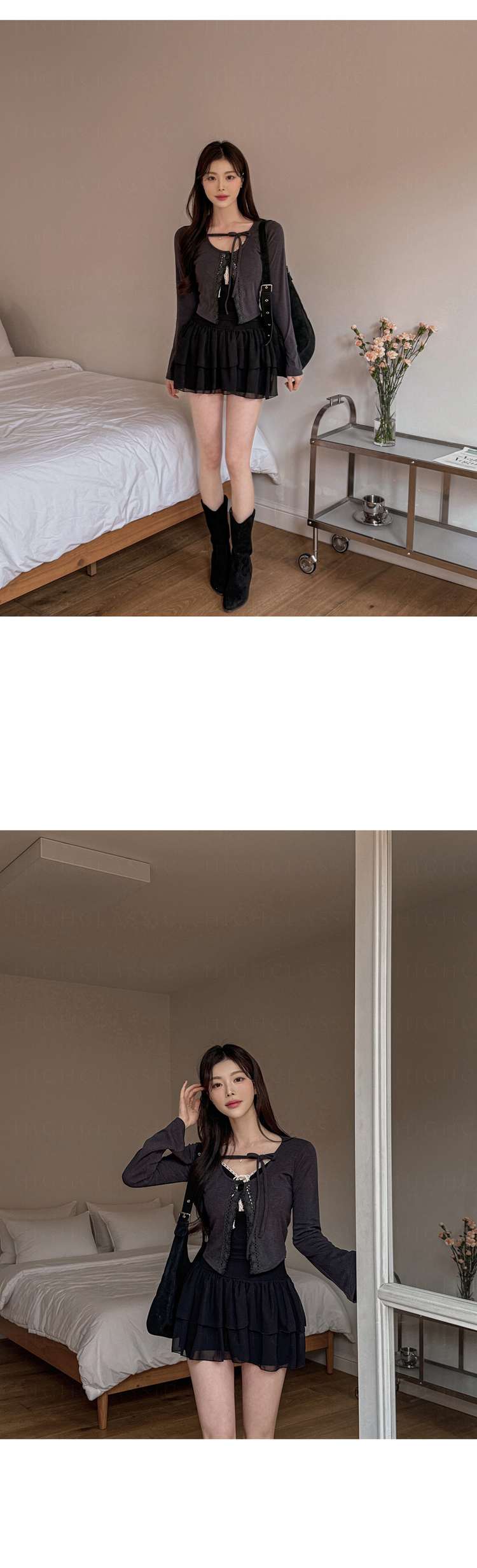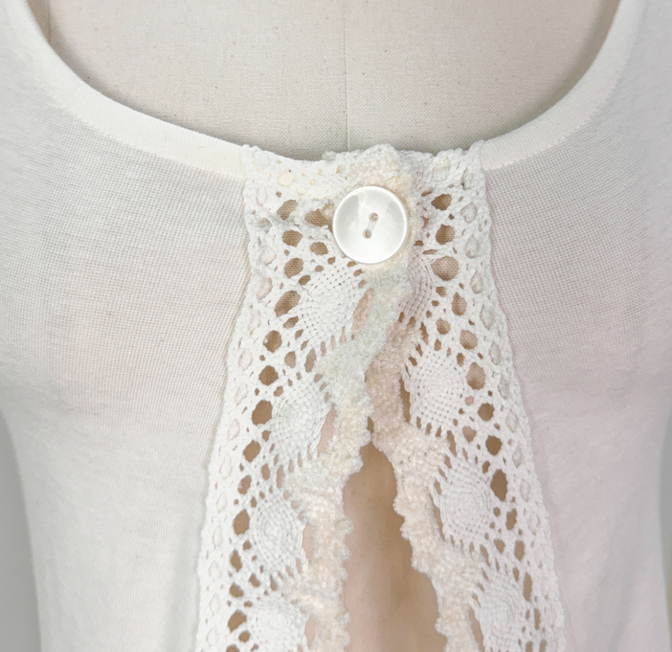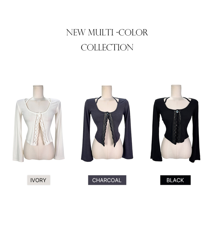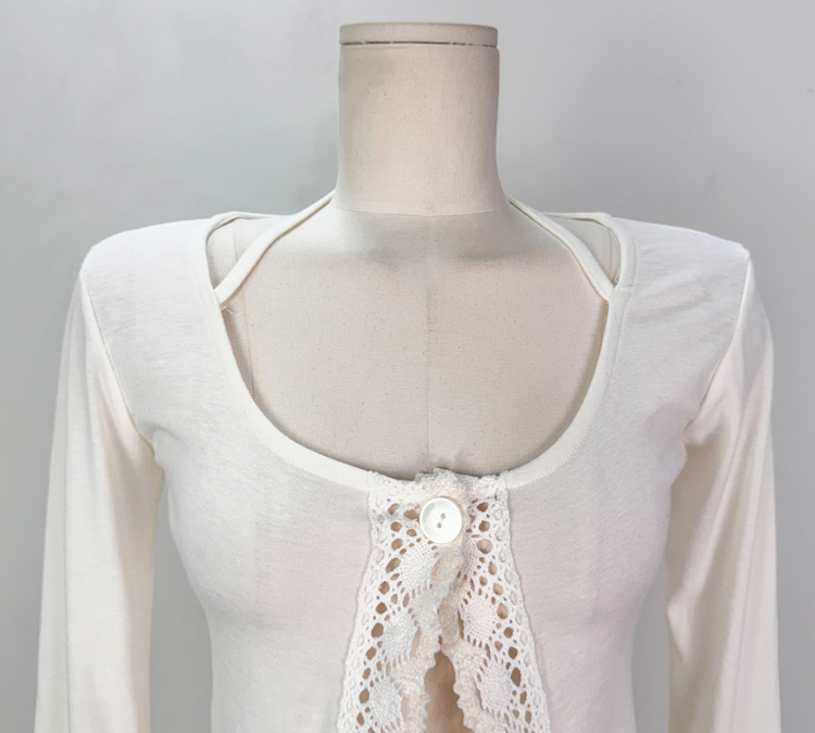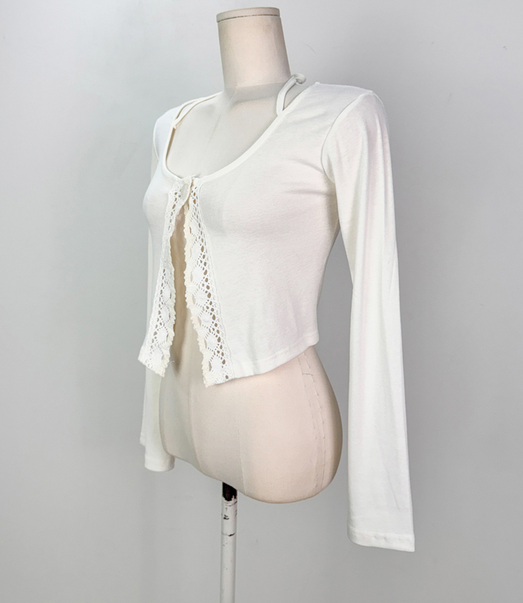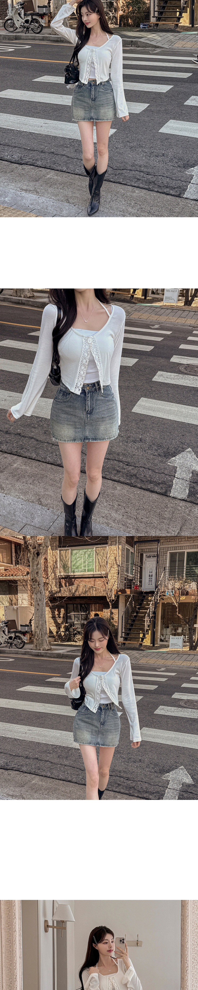 SGD26161 란델 라운드넥 스트랩 나팔소매 빈티지레이스 원버튼 세미크롭 가디건