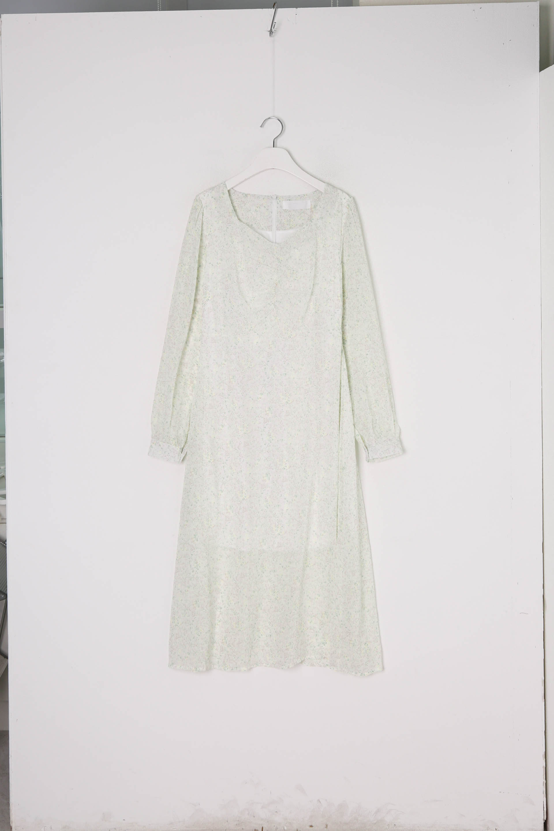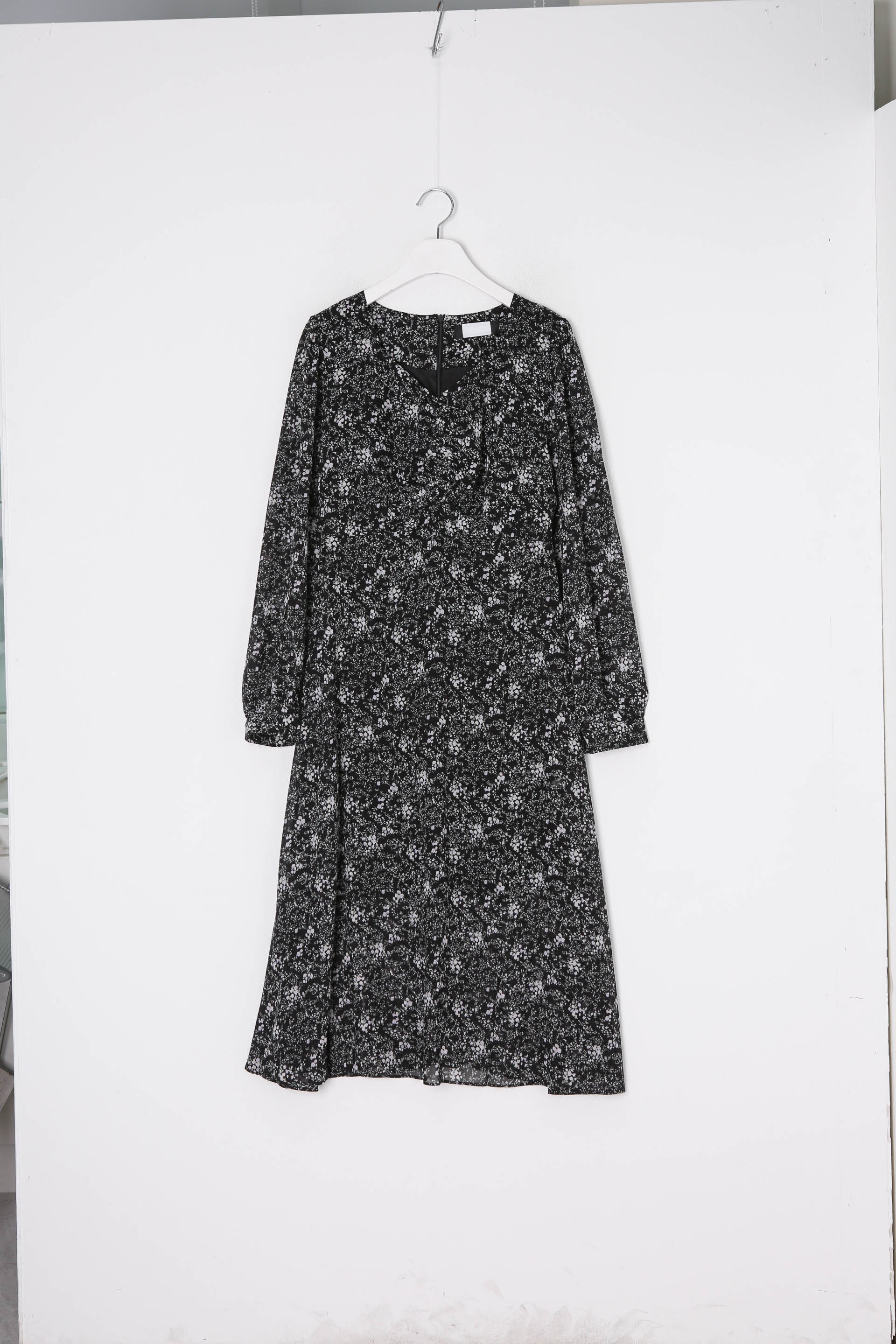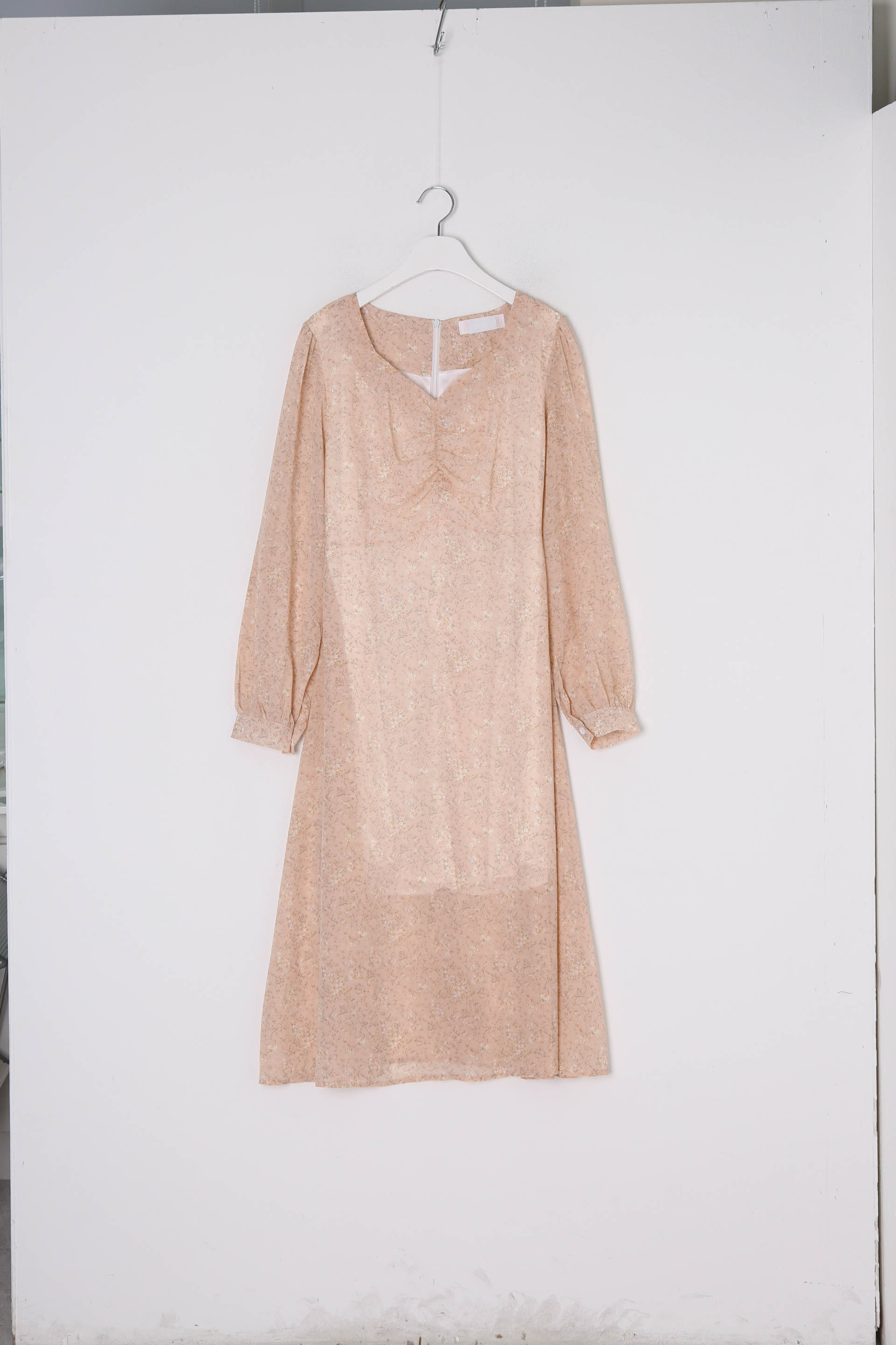SOP27496 플라워 셔링 하트넥 롱원피스 (3color)