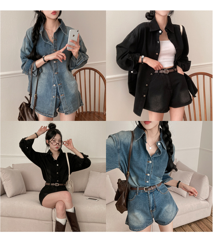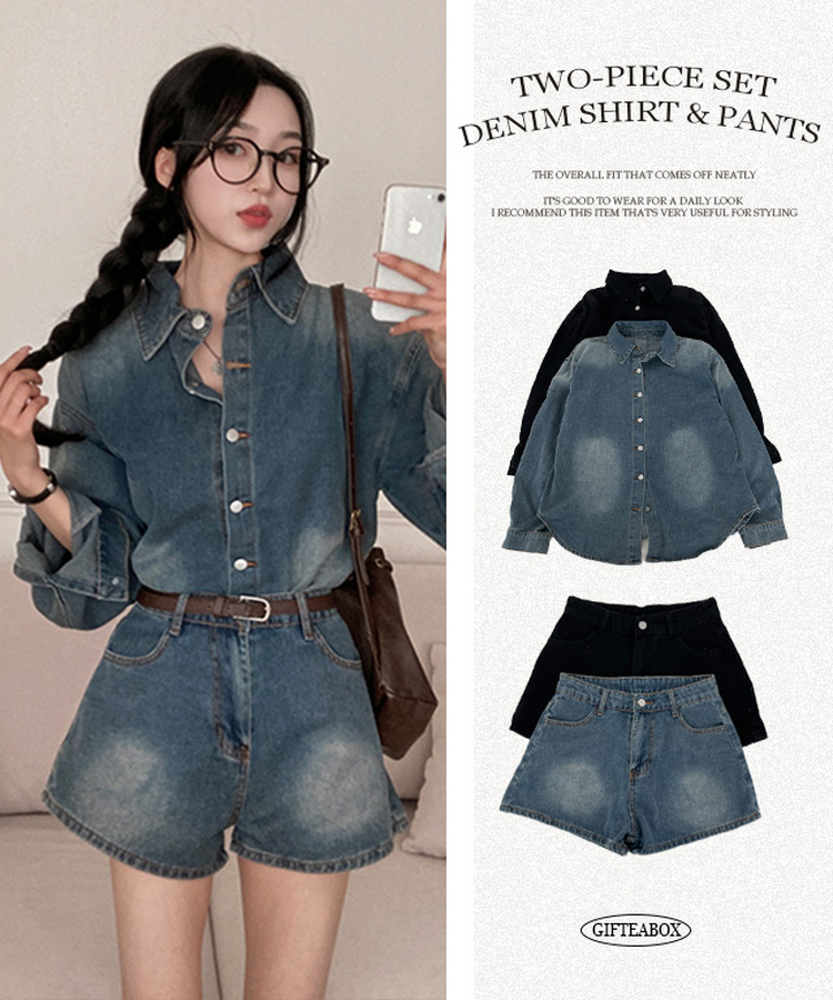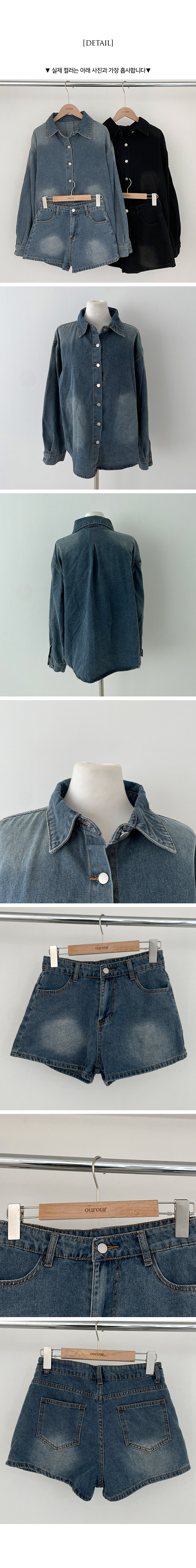 SOP27523 올티 데님 워싱 청남방 숏팬츠 투피스 세트