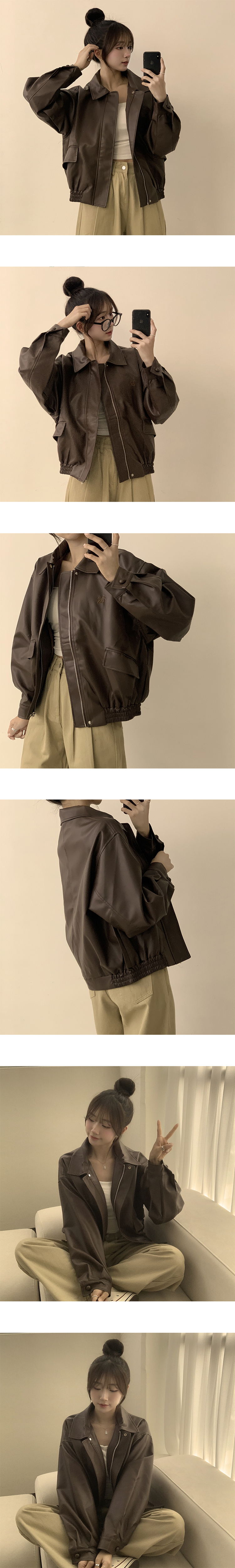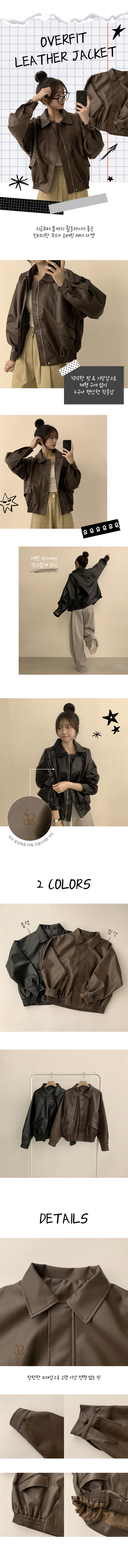 SJP16520 빈티지무드 듬뿍 투유 오버핏 긴팔 레더 자켓 루즈핏 자수 봄 아우터 박시핏 카라 포켓 봄옷 점퍼 2color