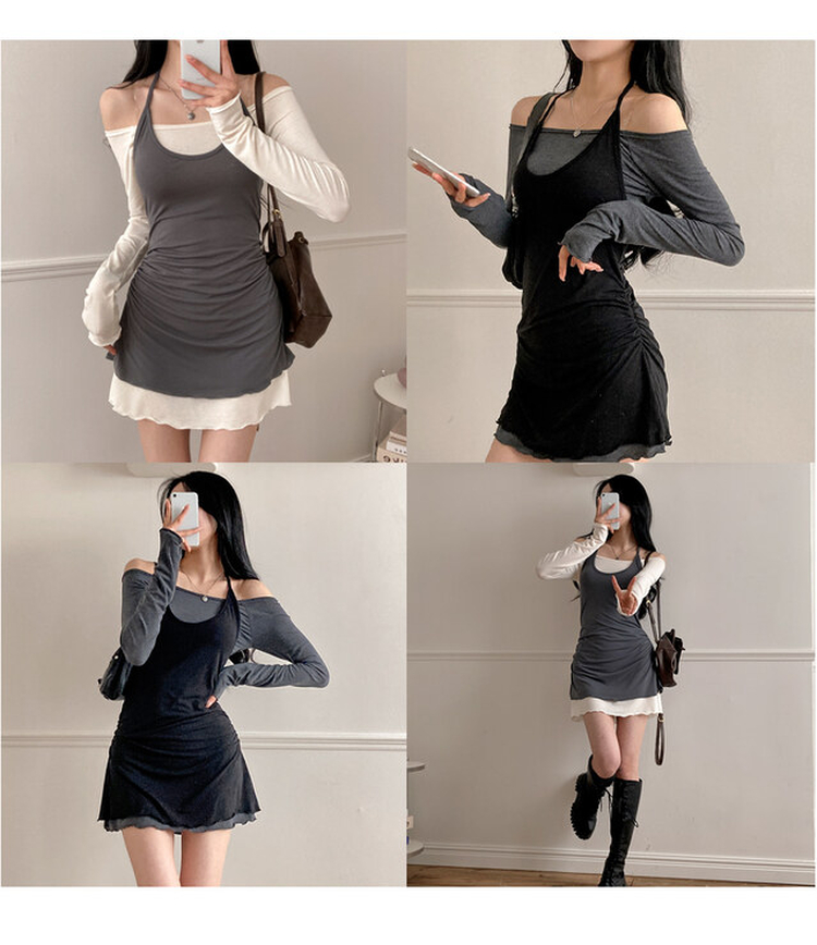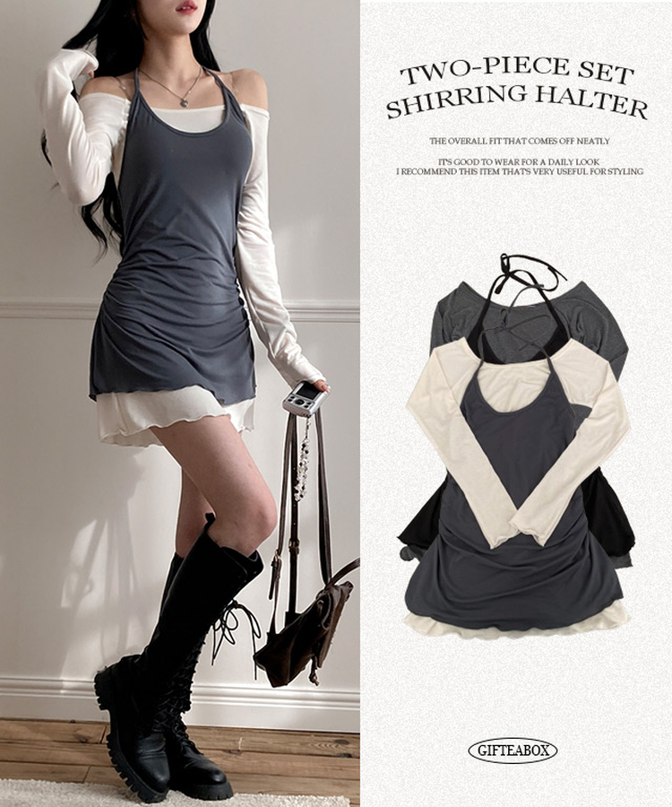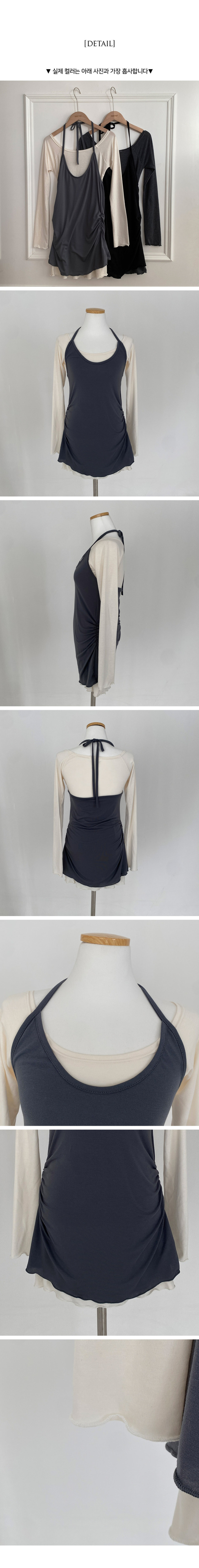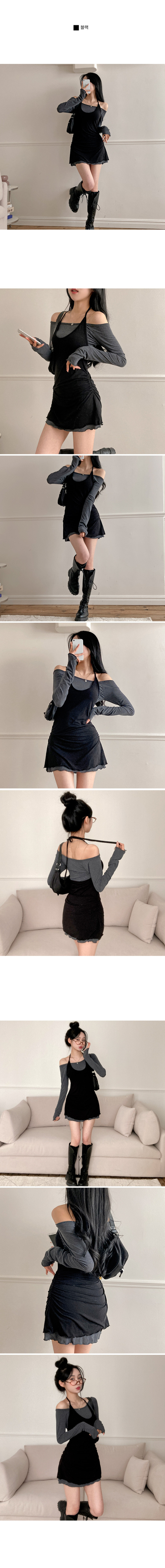SOP27701 유이 옆셔링 레이어드 홀터 오프숄더 뷔스티에 미니 원피스