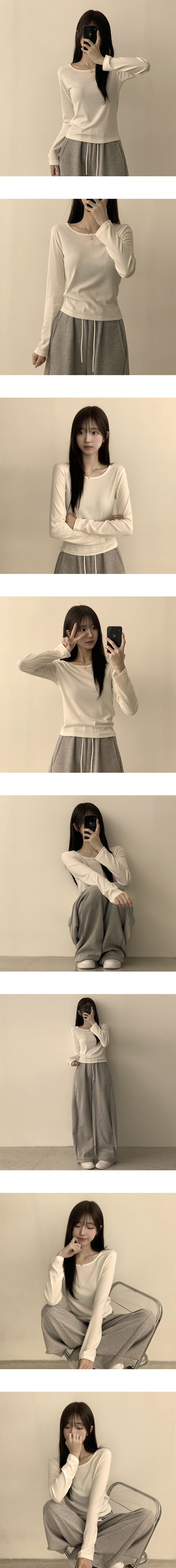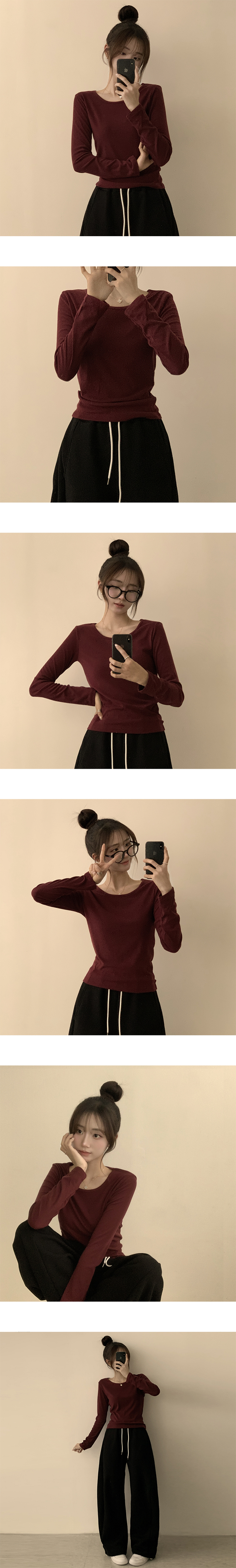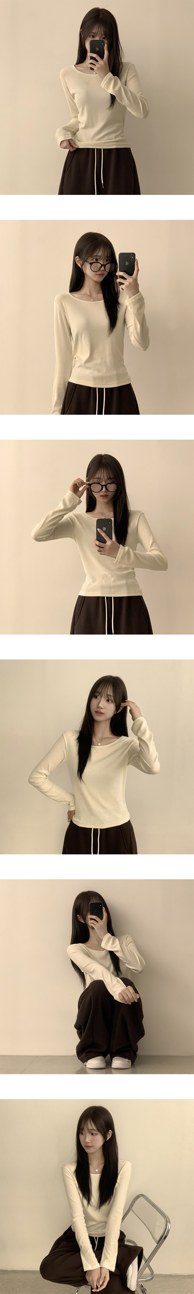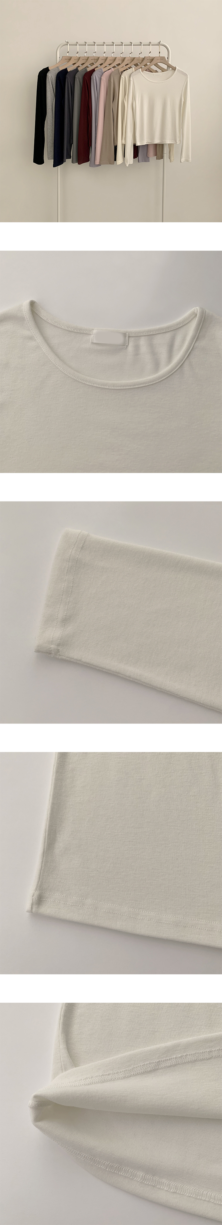STS63722 편하고 말라보이는 윤슬 라운드 무지 봄 긴팔 티셔츠 베이직 세미 크롭 긴팔티 슬림핏 레이어드 상의 11color