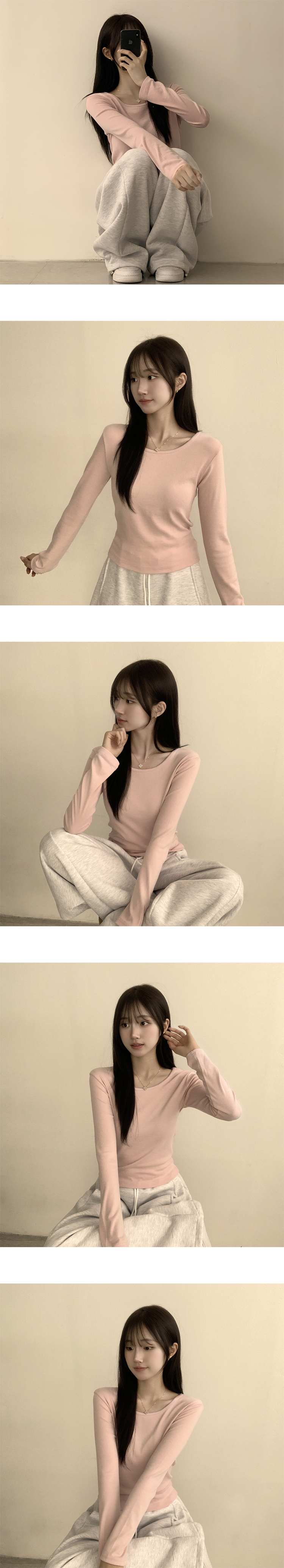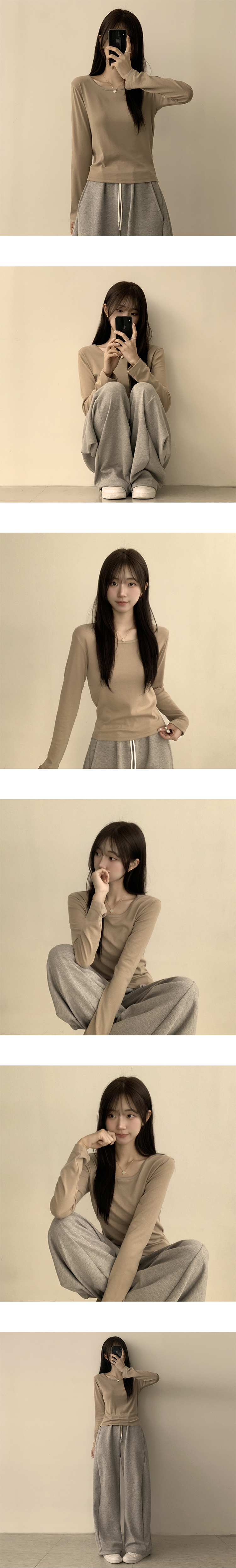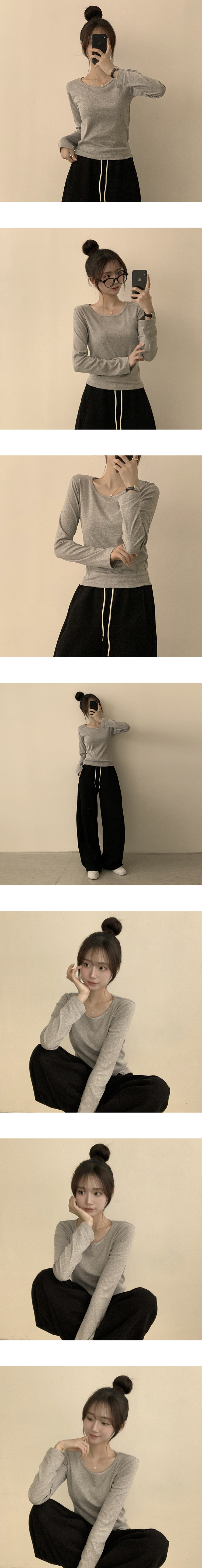 STS63722 편하고 말라보이는 윤슬 라운드 무지 봄 긴팔 티셔츠 베이직 세미 크롭 긴팔티 슬림핏 레이어드 상의 11color