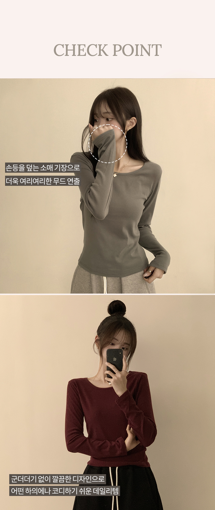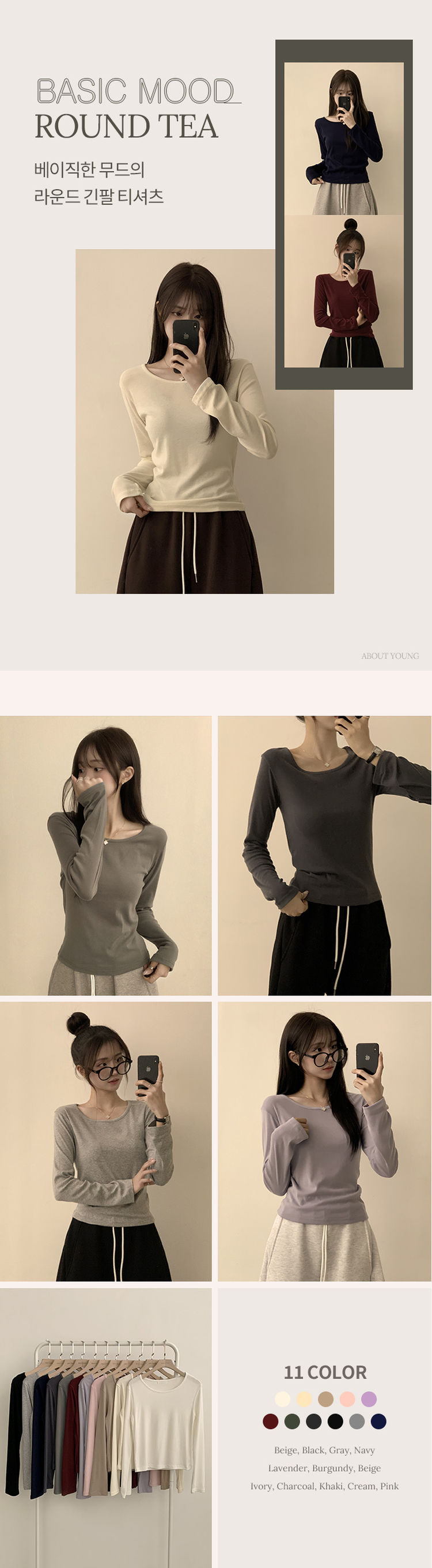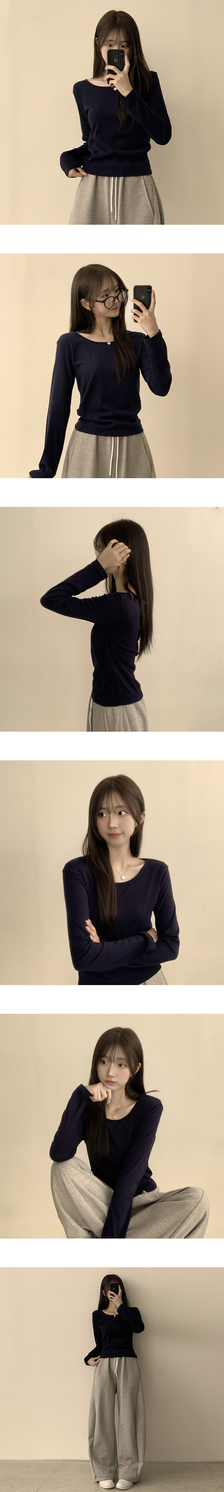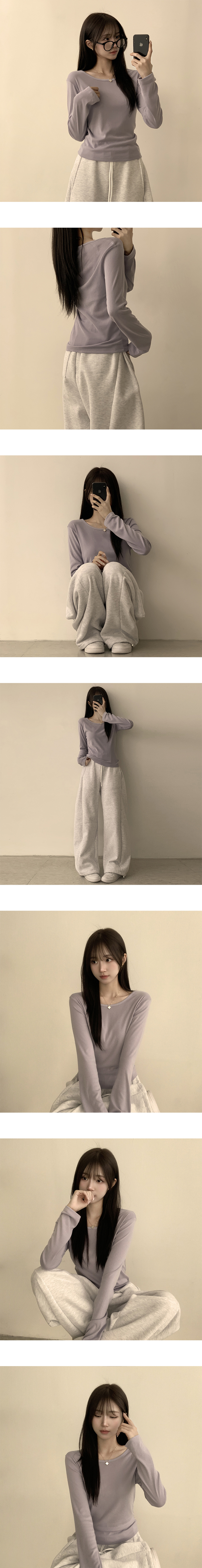 STS63722 편하고 말라보이는 윤슬 라운드 무지 봄 긴팔 티셔츠 베이직 세미 크롭 긴팔티 슬림핏 레이어드 상의 11color