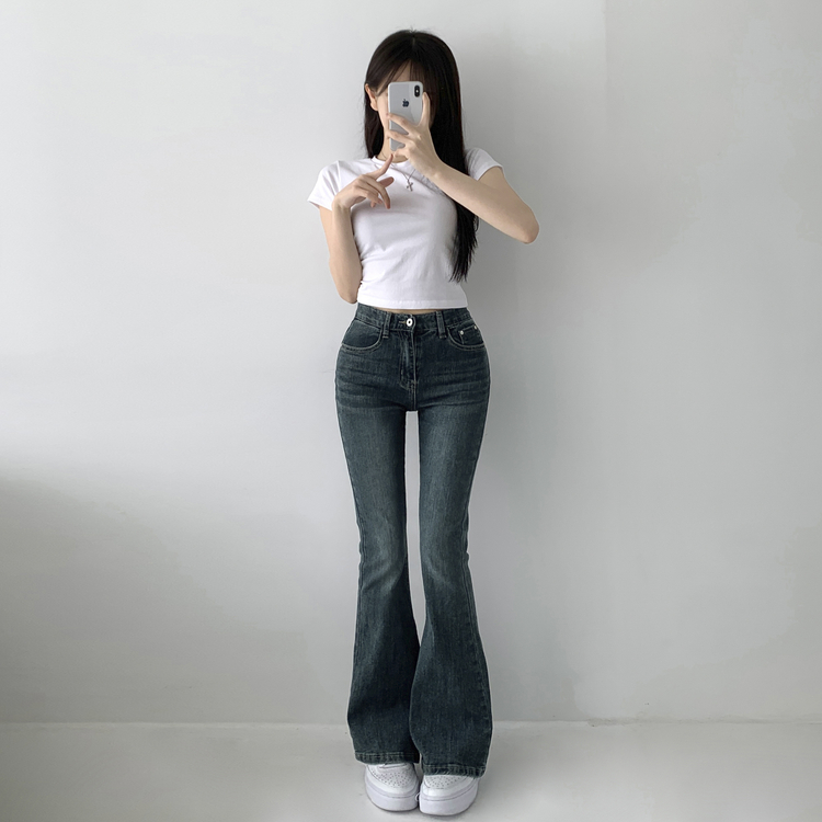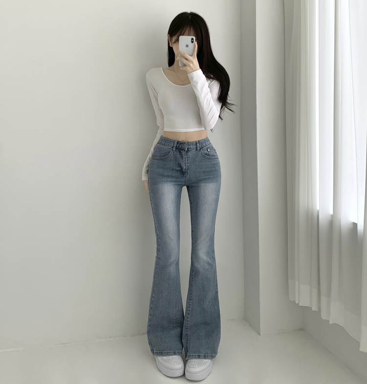 SJE11523 베티 쫀쫀 스판 빈티지 워싱 뒷 포켓 슬림핏 부츠컷 데님 팬츠