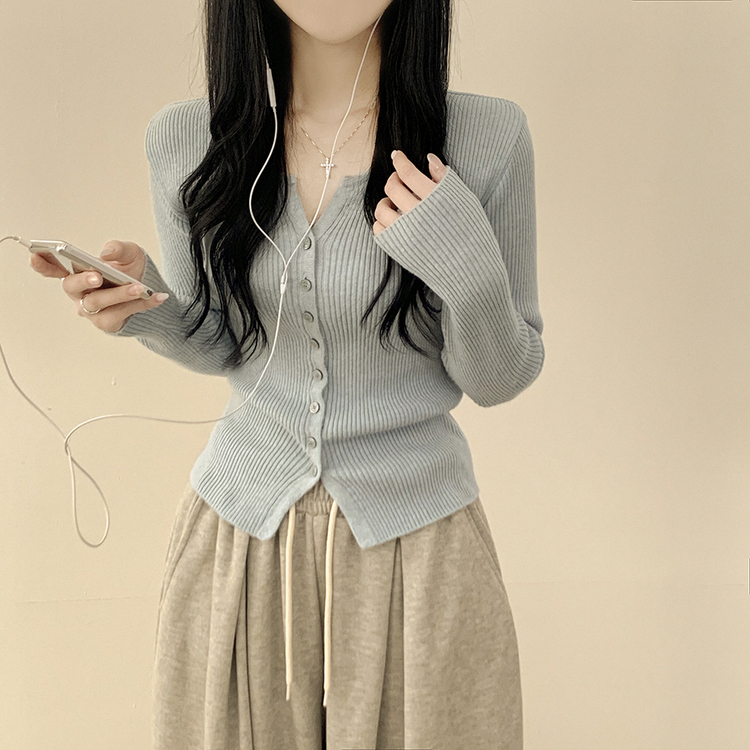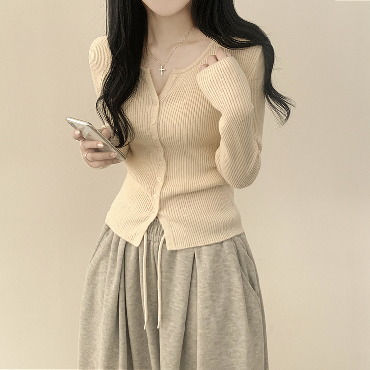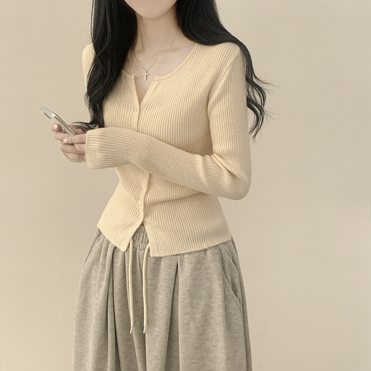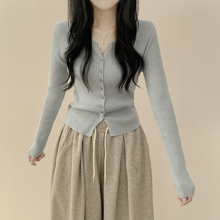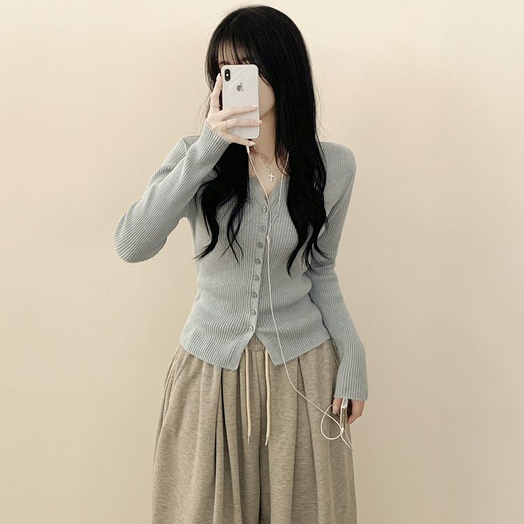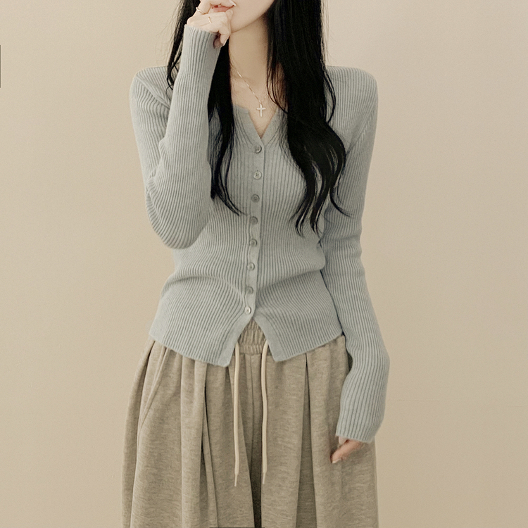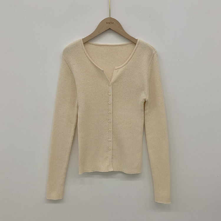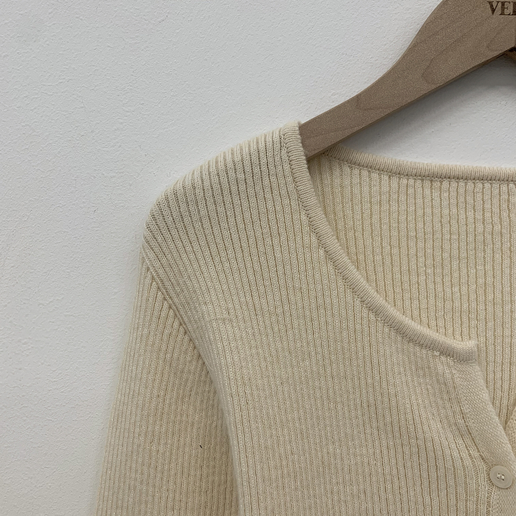 SGD26594 부드러운 허리잘록 슬림핏 세미크롭 골지 니트 트임 기본 긴팔 소라 봄가디건