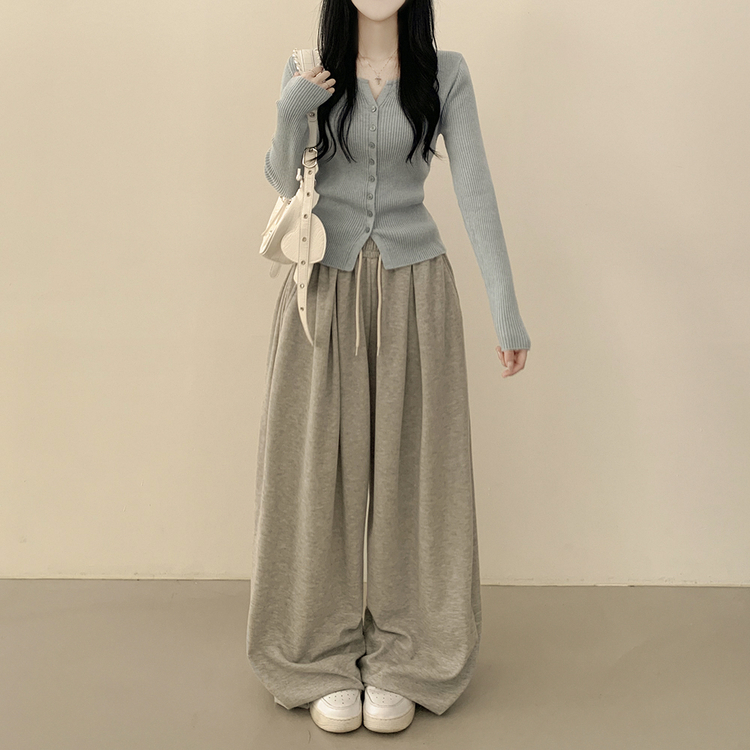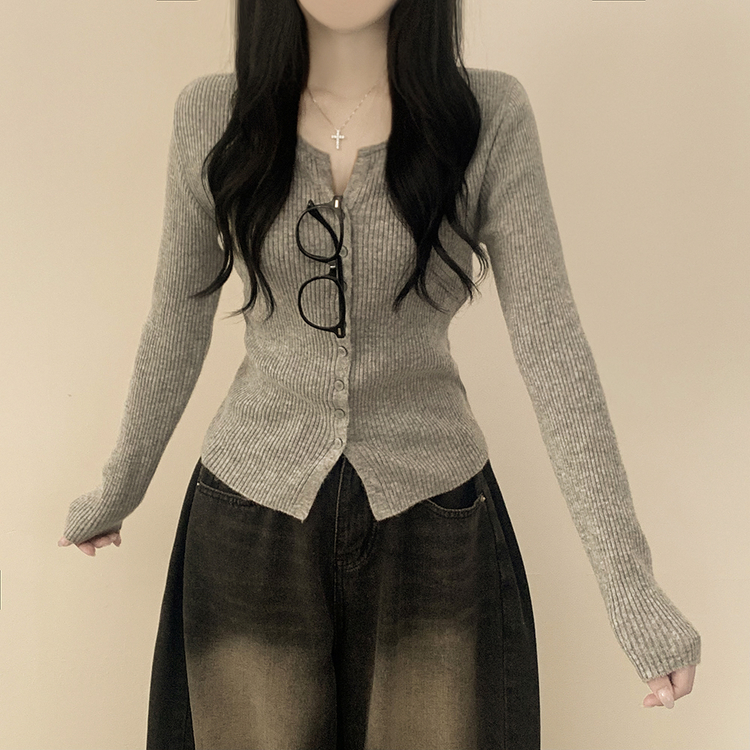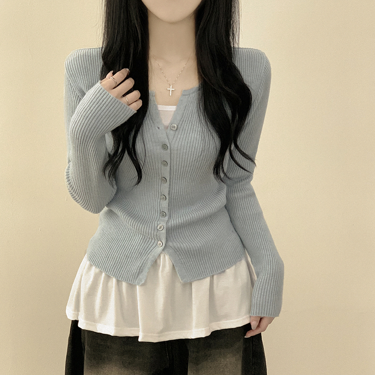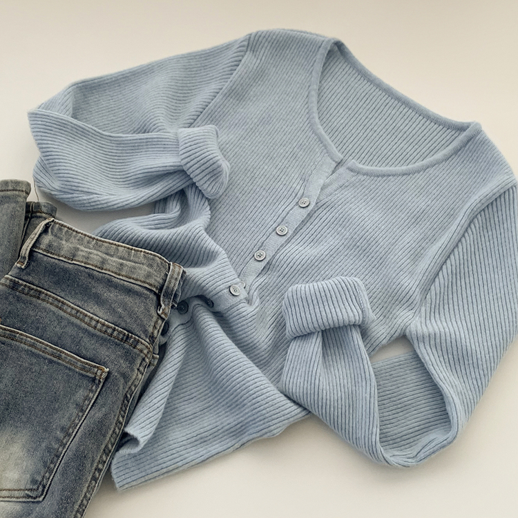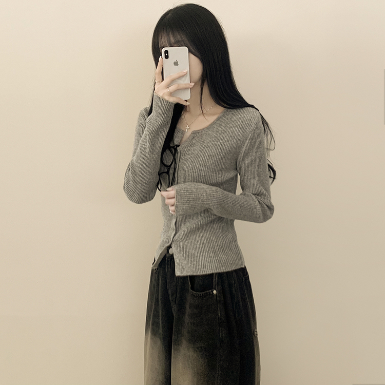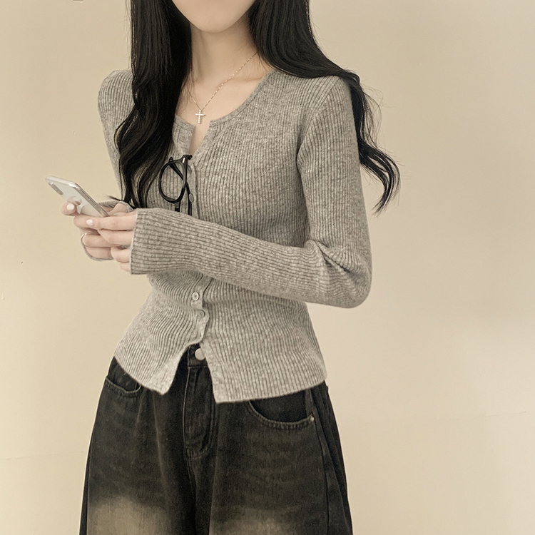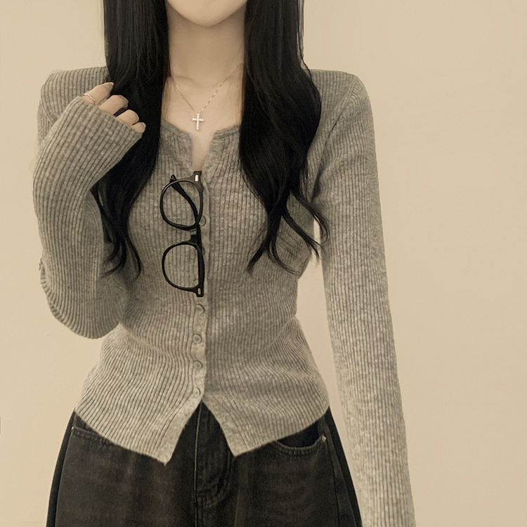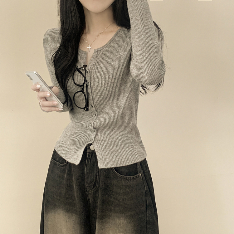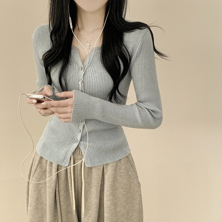 SGD26594 부드러운 허리잘록 슬림핏 세미크롭 골지 니트 트임 기본 긴팔 소라 봄가디건