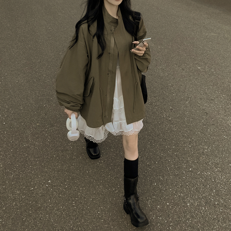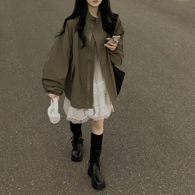 SJP16708 보호본능 귀여운 빈티지 스트링 야상 벌룬자켓 아방핏 봄점퍼 빅사이즈 모리걸룩