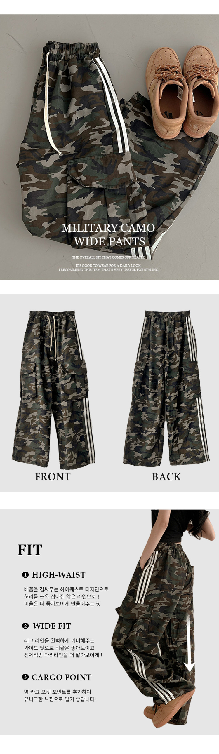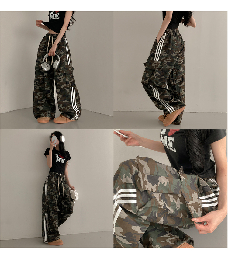 SPS32567 리암 카모 트랙 밀리터리 조거 와이드 밴딩 팬츠