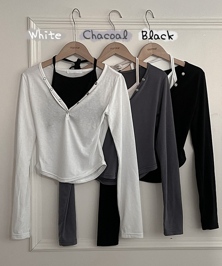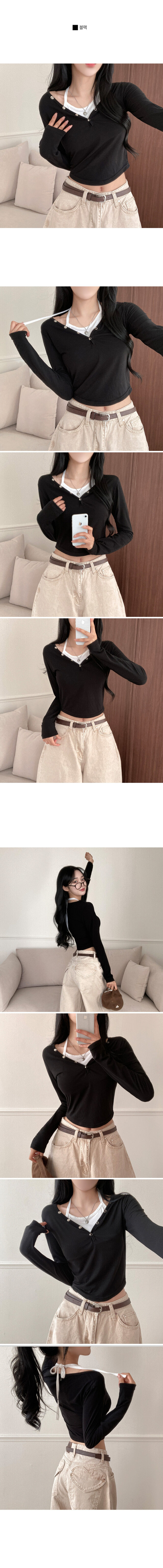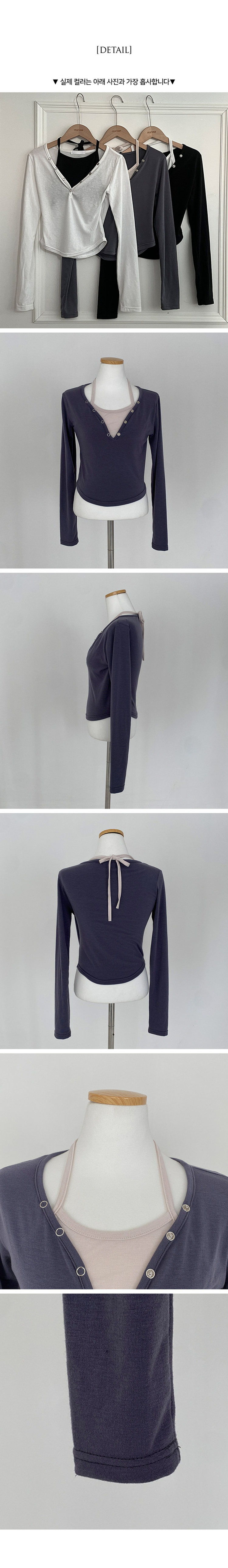 STS64518 브릿 배색 스냅버튼 홀터넥 일체형 긴팔 티셔츠