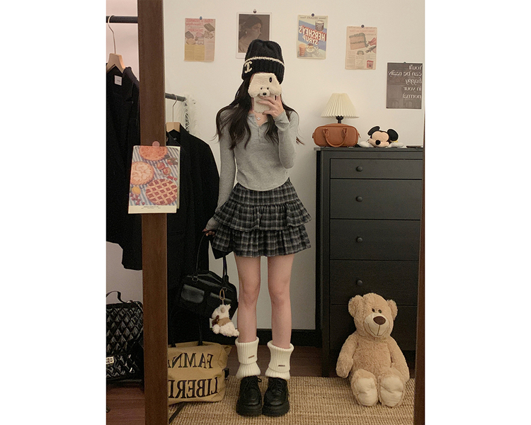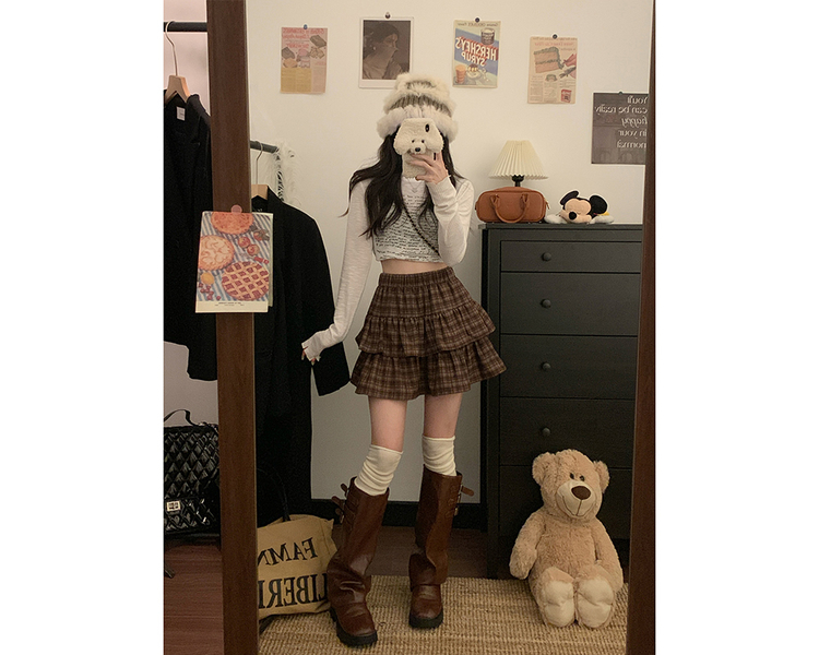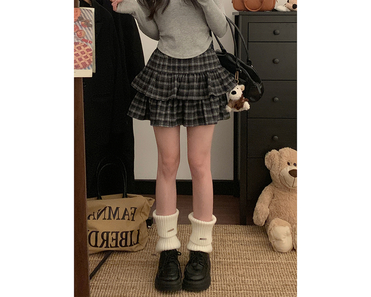 SSK22208 체크 캉캉 스커트