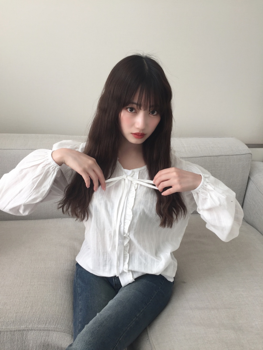 SBS25457 프릴 리본 셔츠 블라우스