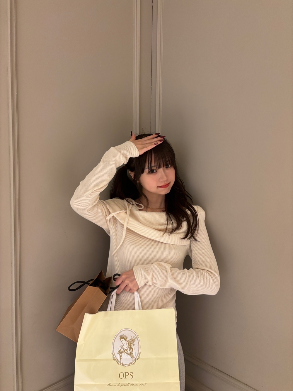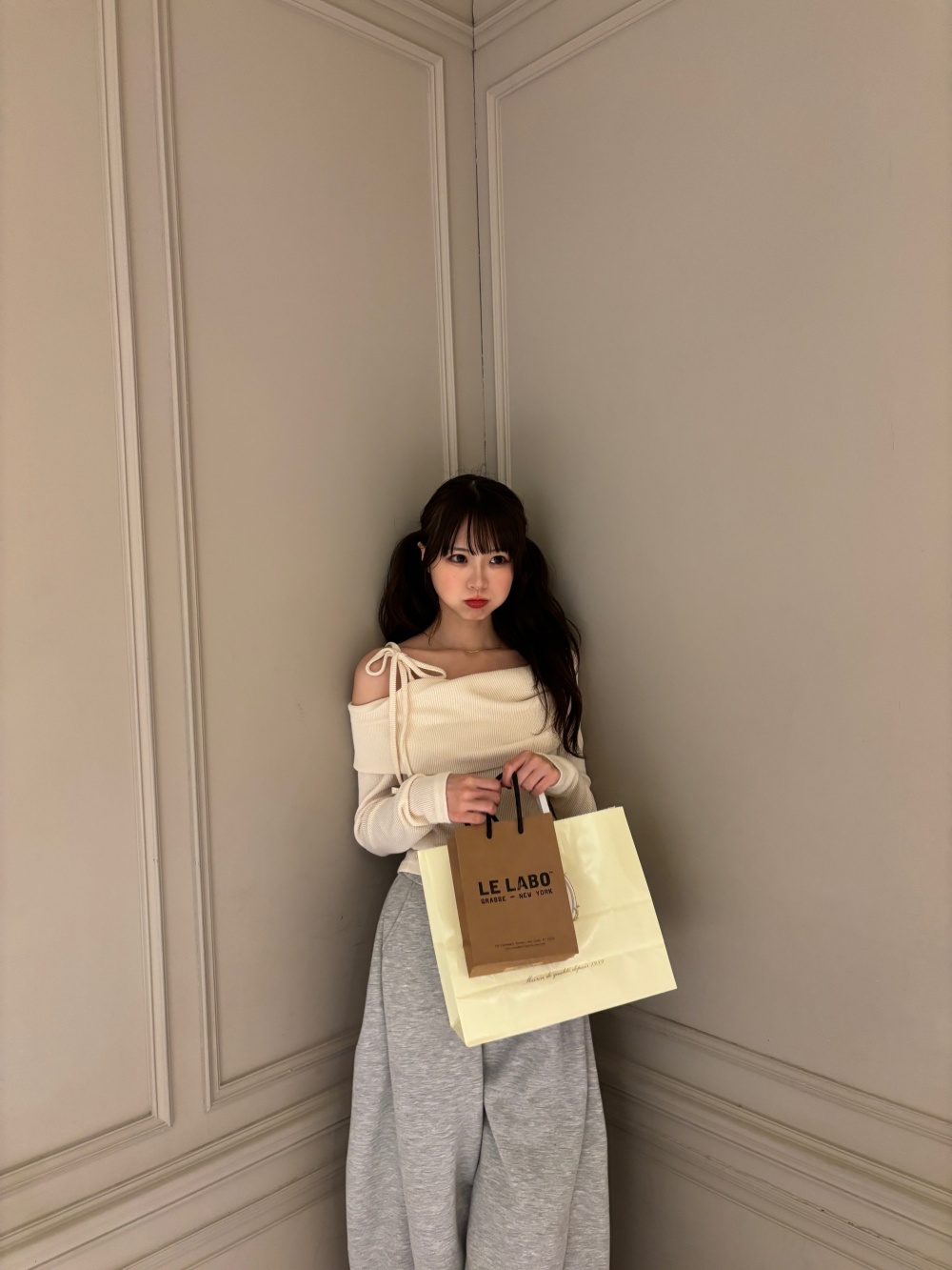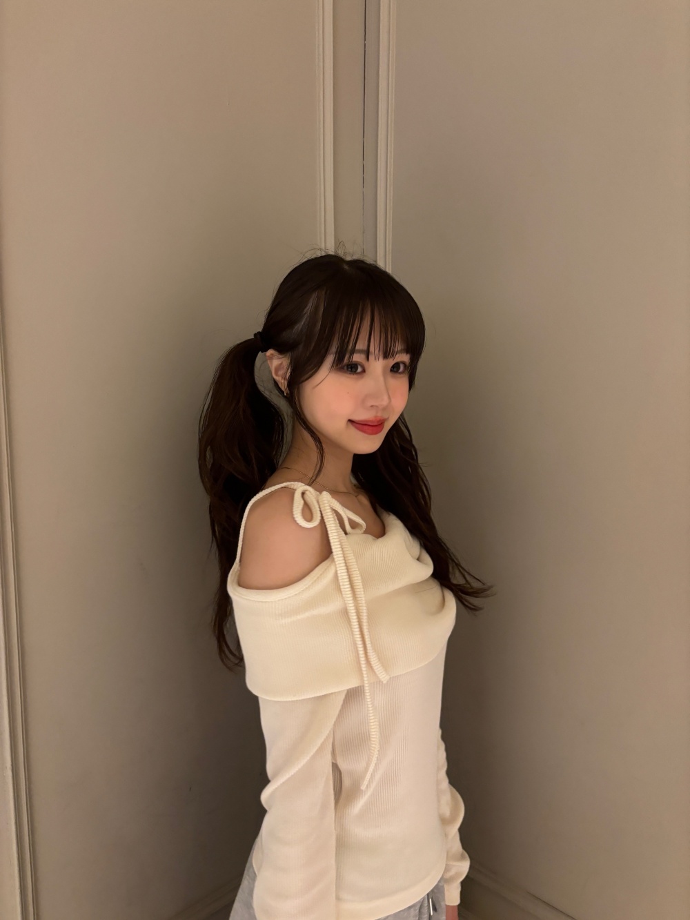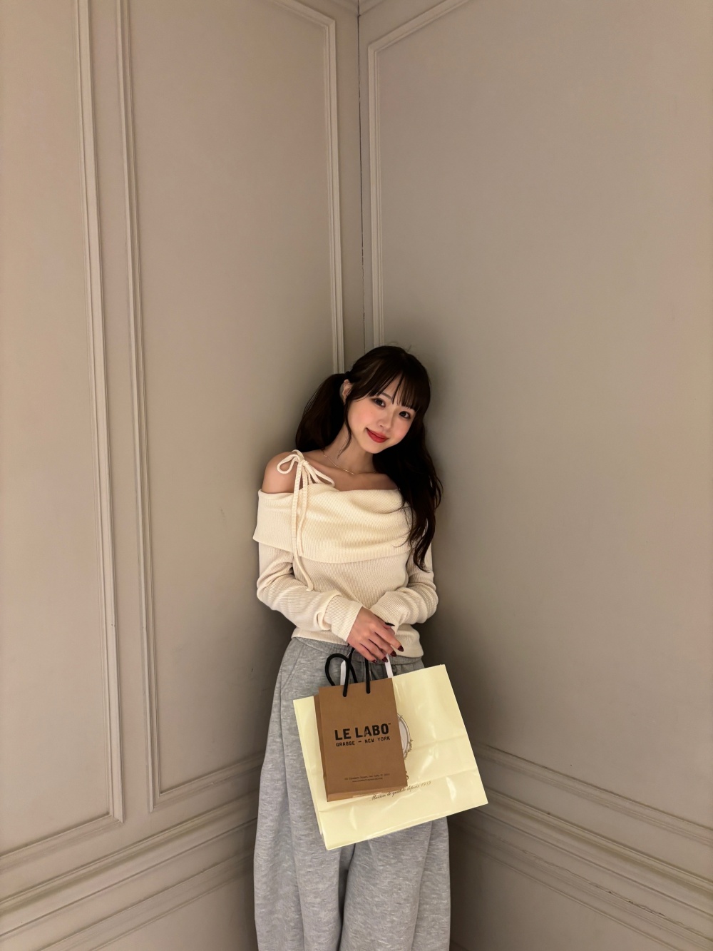 STS64801 리본 스트랩 골지 오프숄더 티셔츠