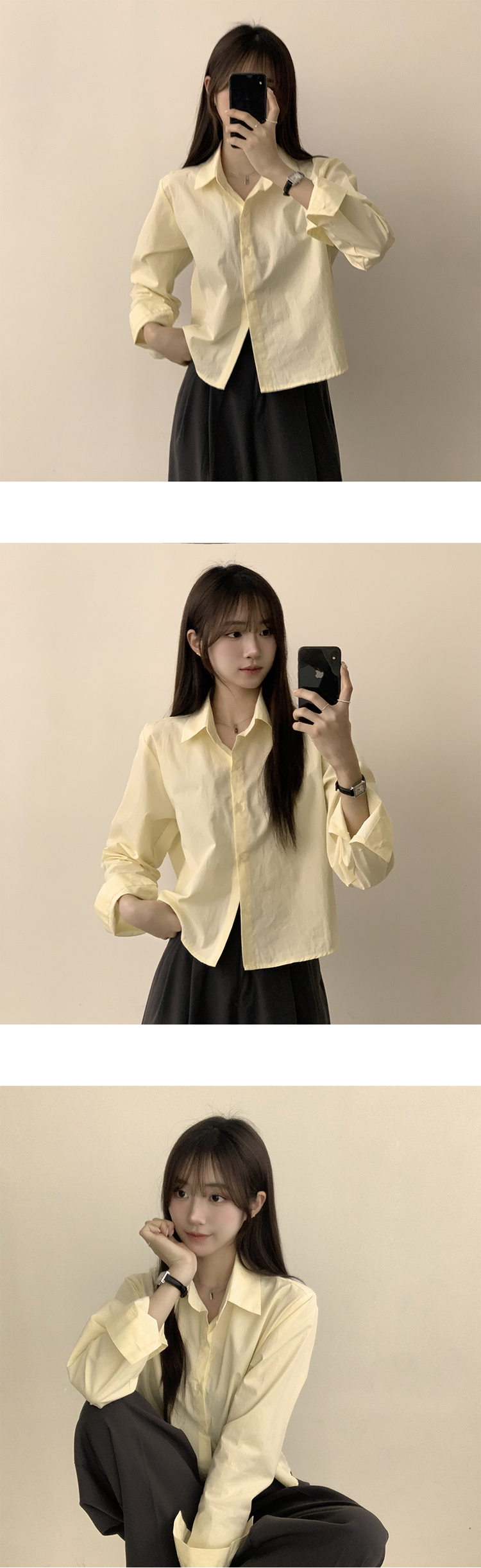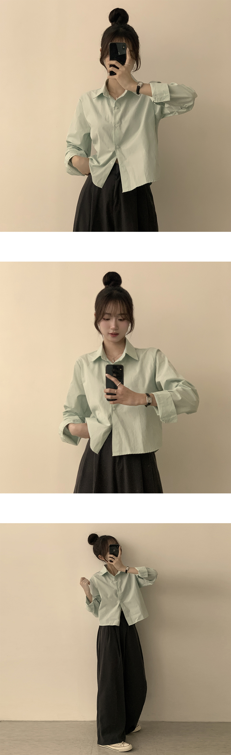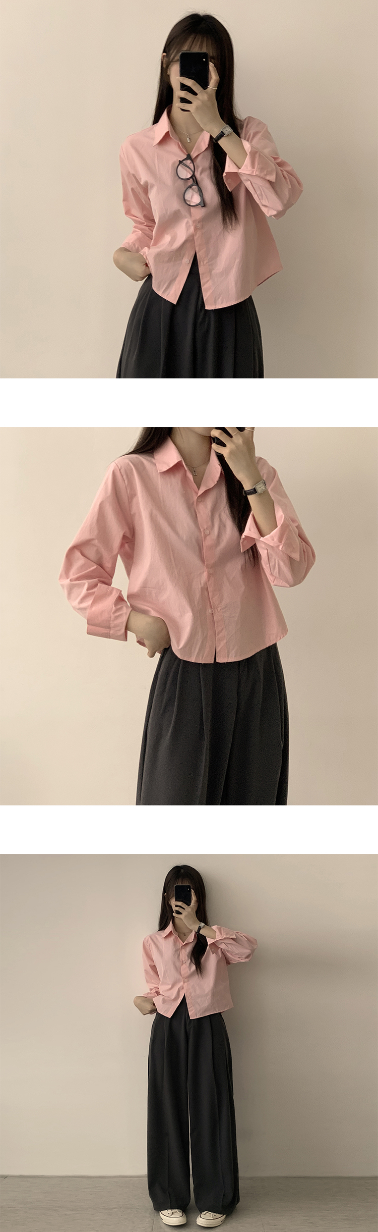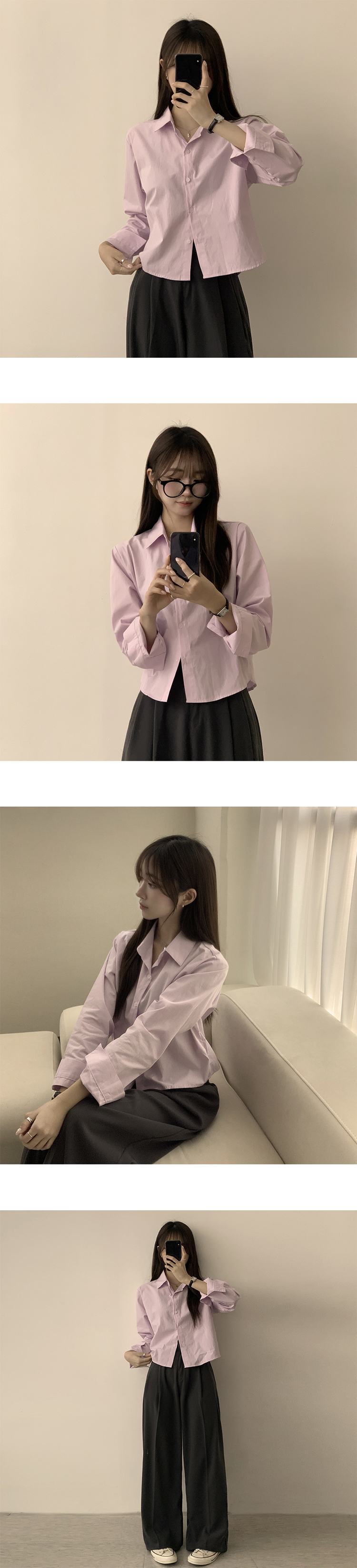 SBS25539 베이직의 정석 유니 파스텔 카라 버튼 세미 크롭 긴팔 셔츠 봄 캐주얼 남방 데일리 상의 11color
