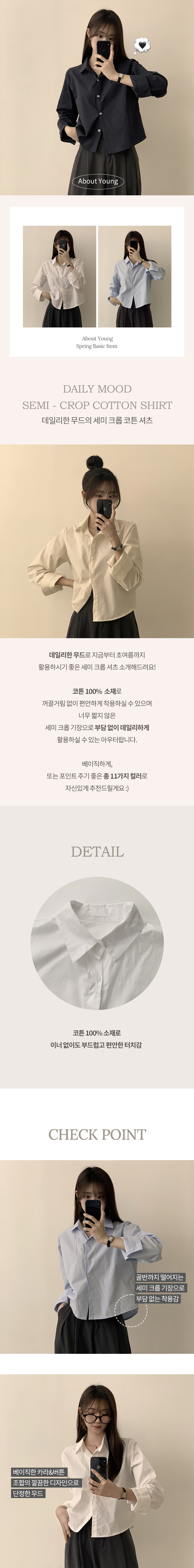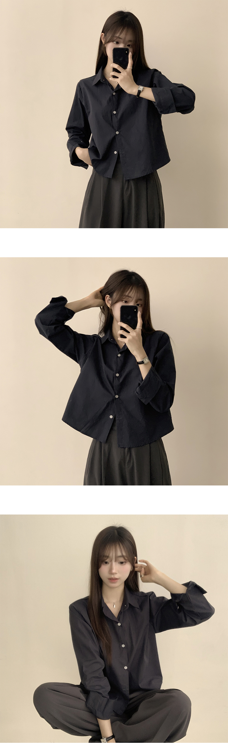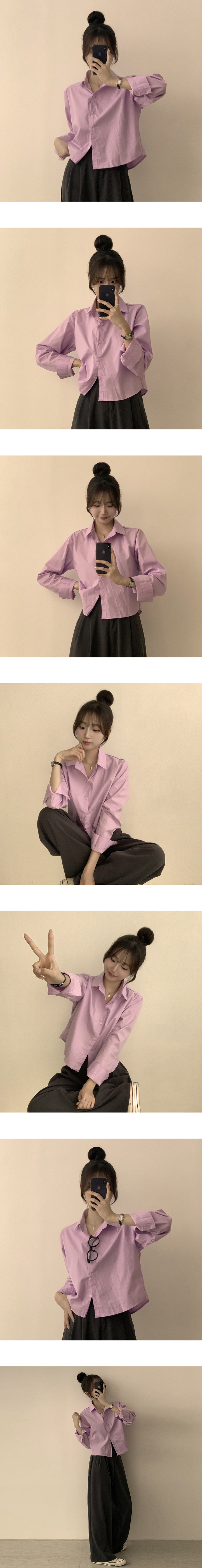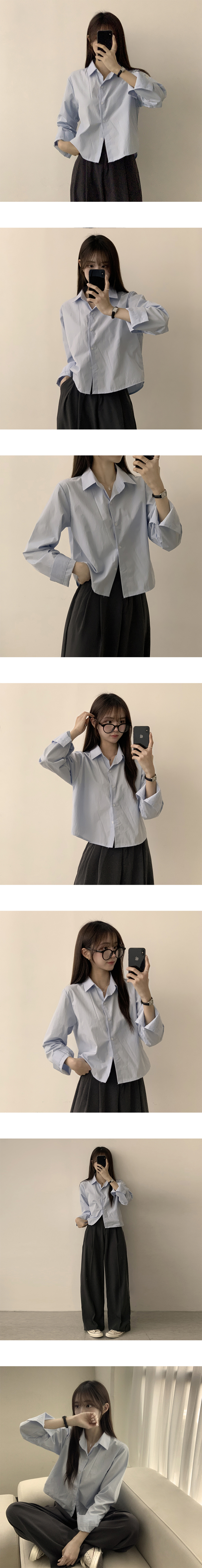 SBS25539 베이직의 정석 유니 파스텔 카라 버튼 세미 크롭 긴팔 셔츠 봄 캐주얼 남방 데일리 상의 11color