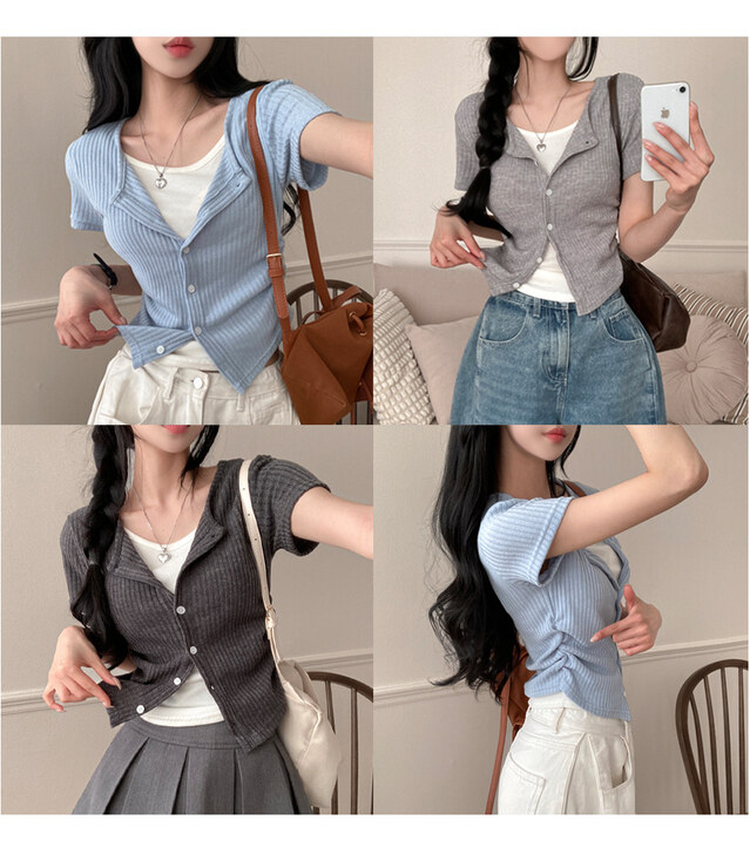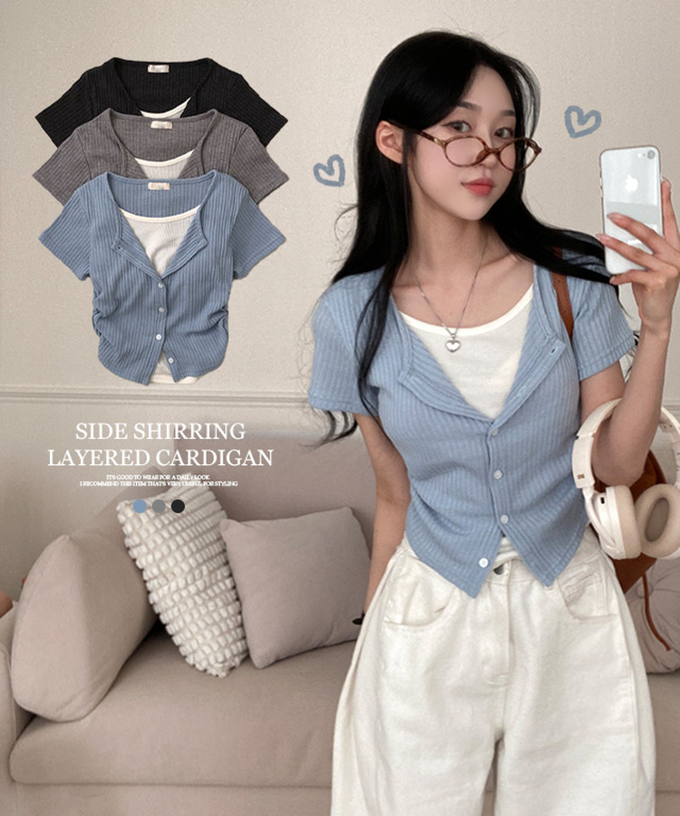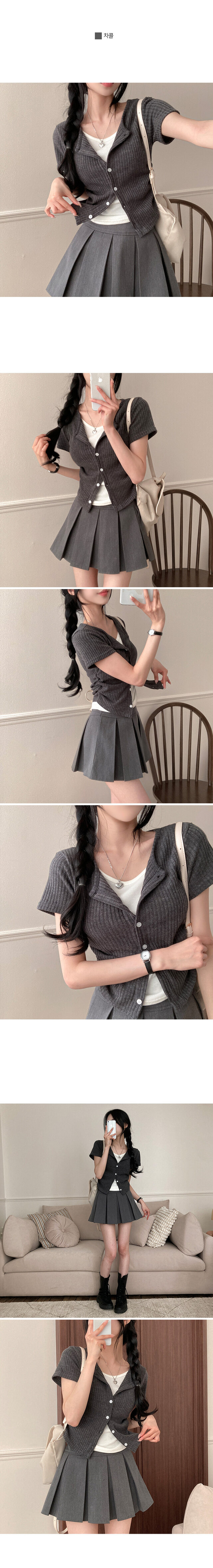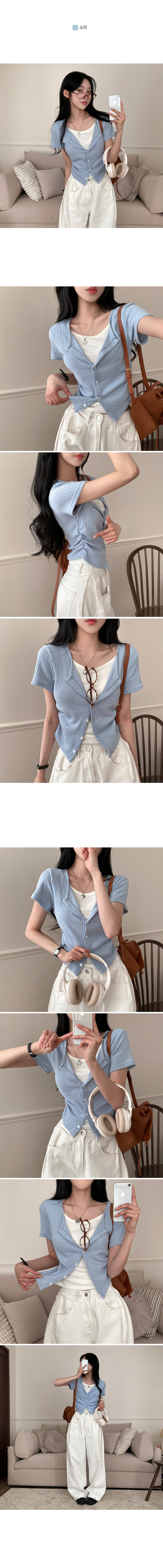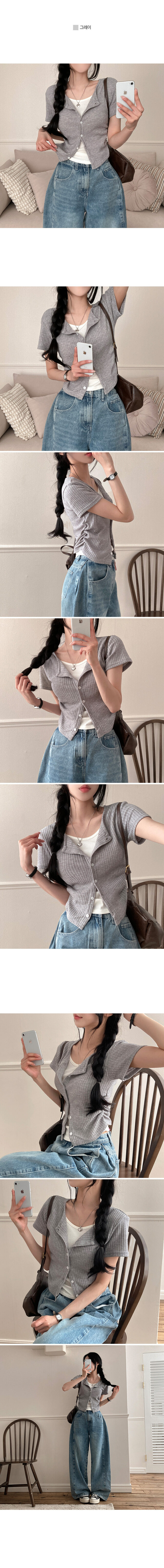 SGD27163 론지 옆셔링 골지 반팔 일체형 반팔 가디건 티셔츠