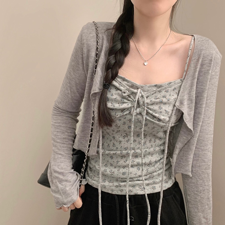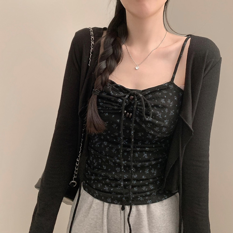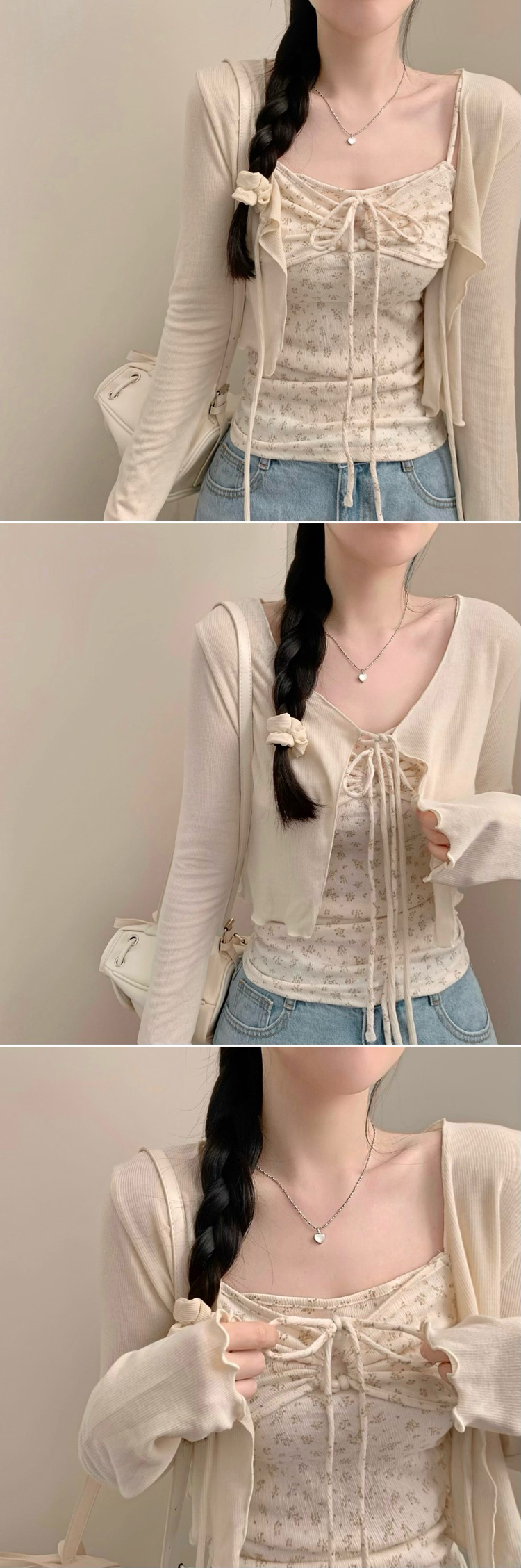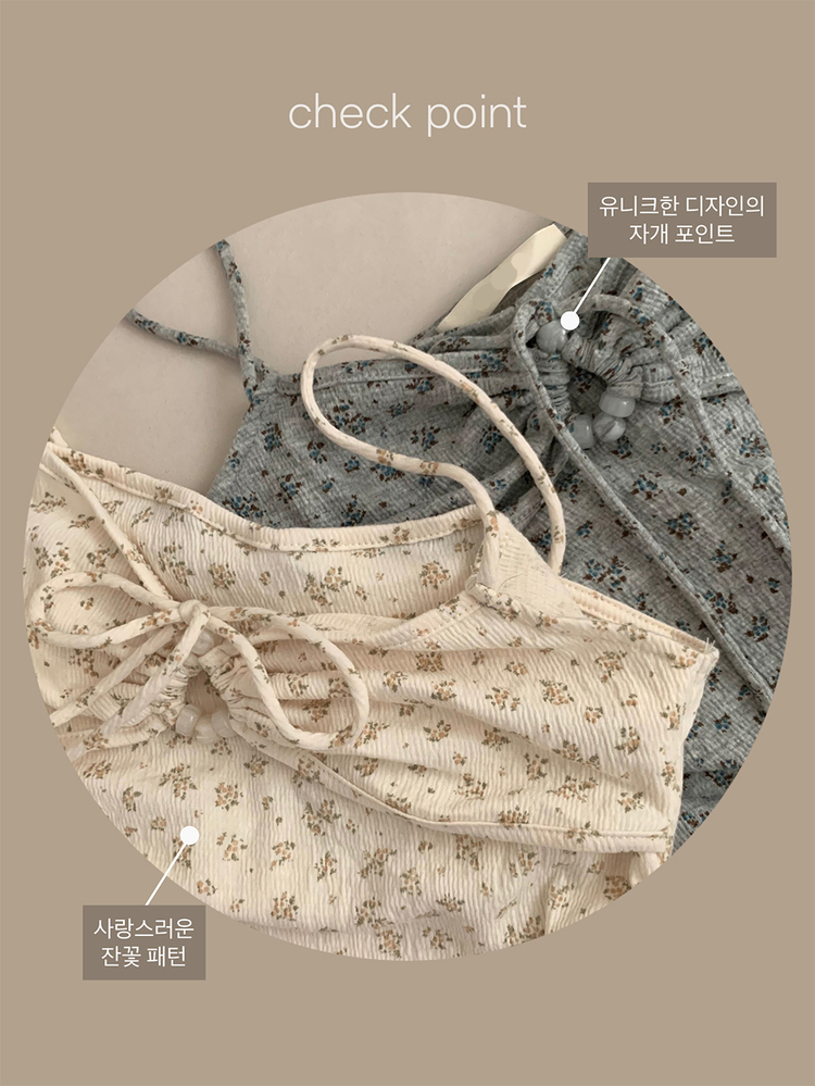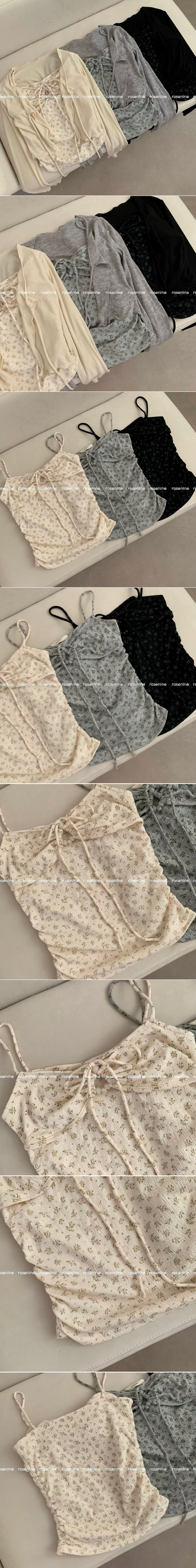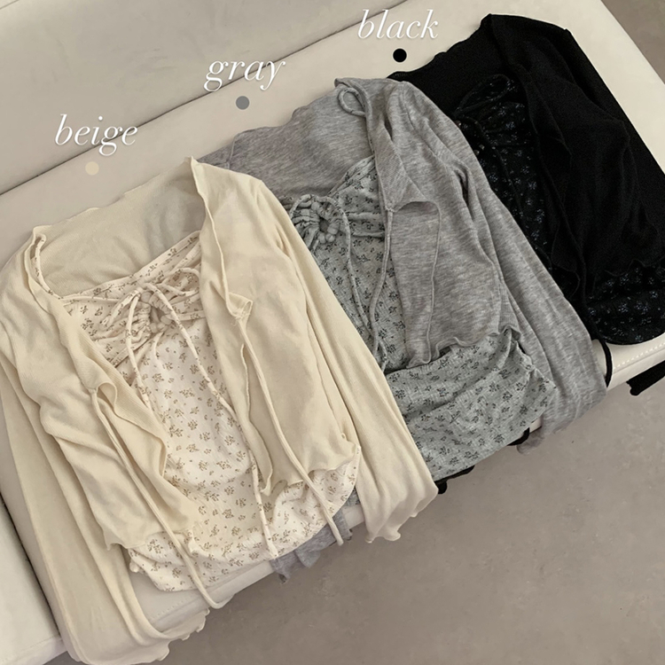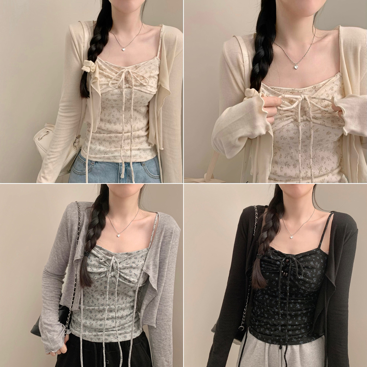 SGD27188 모리걸 잔꽃 자개 리본 끈나시 가디건 세트 보헤미안 히피