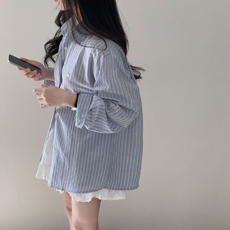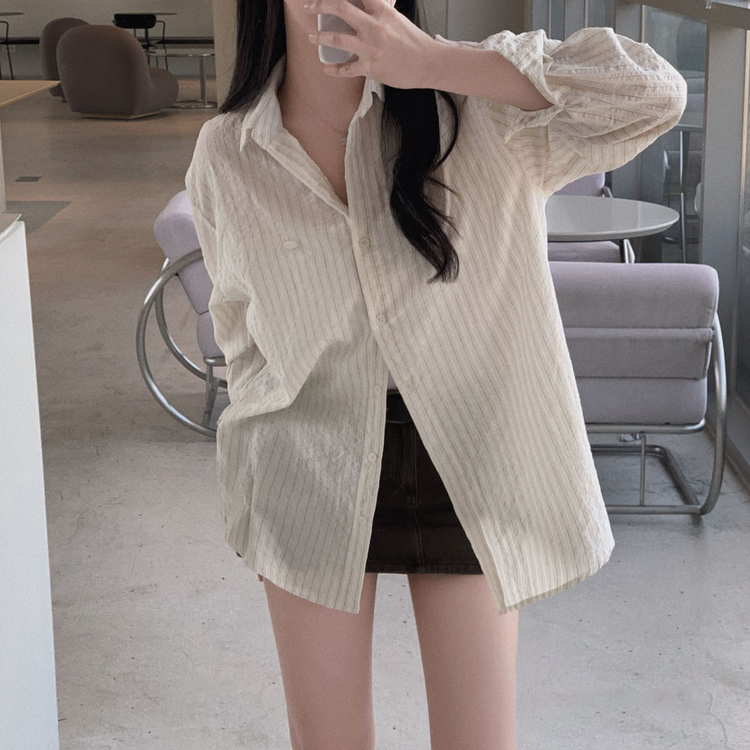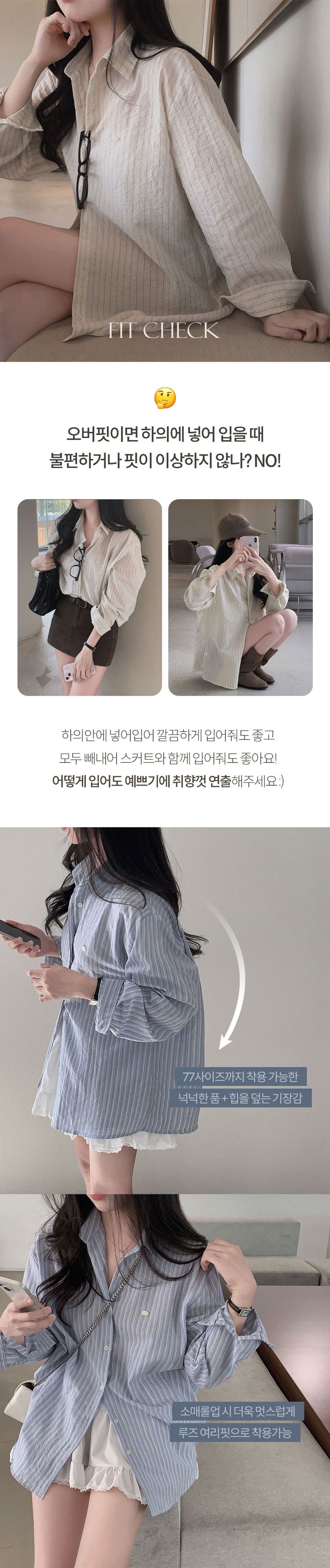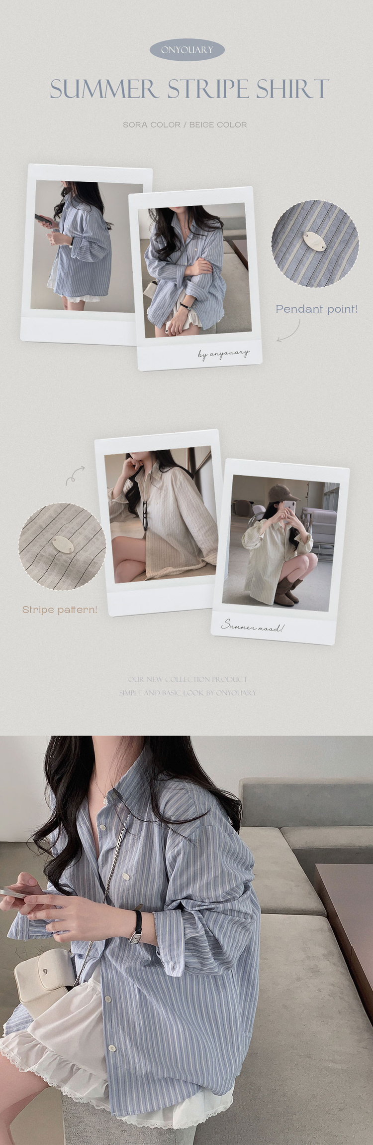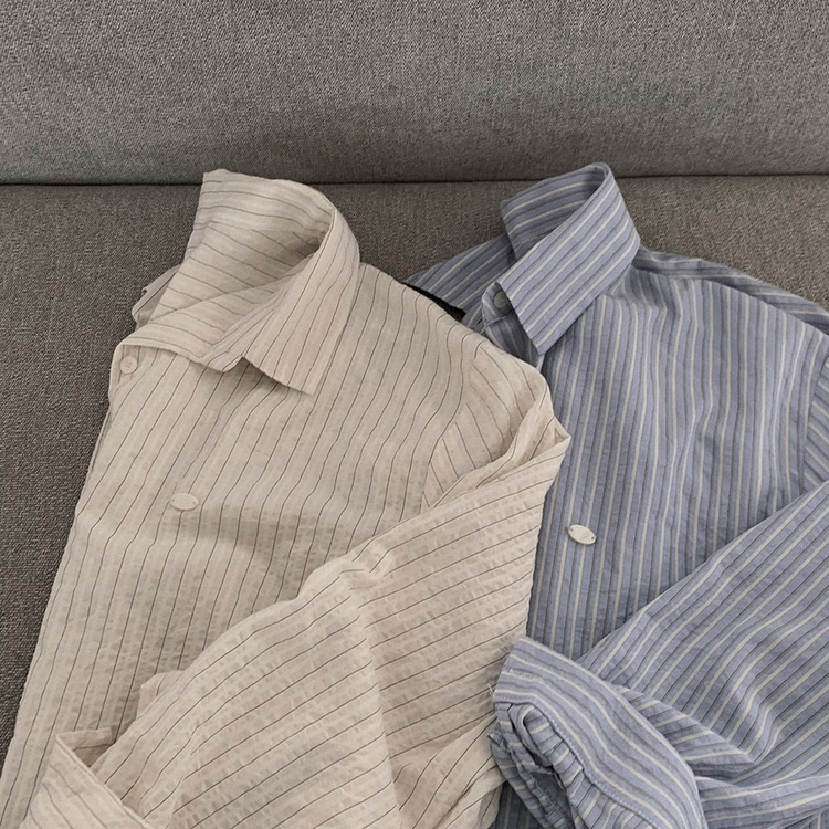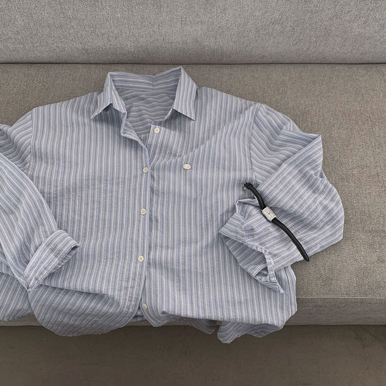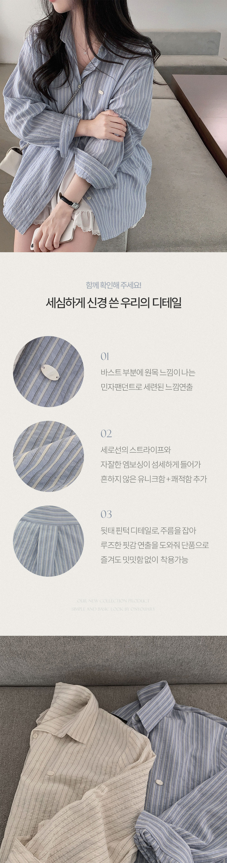SBS25817 여름교복 확정피부에 달라붙지 않는 엠보싱 팬던트 스트라이프 루즈핏 셔츠 남방