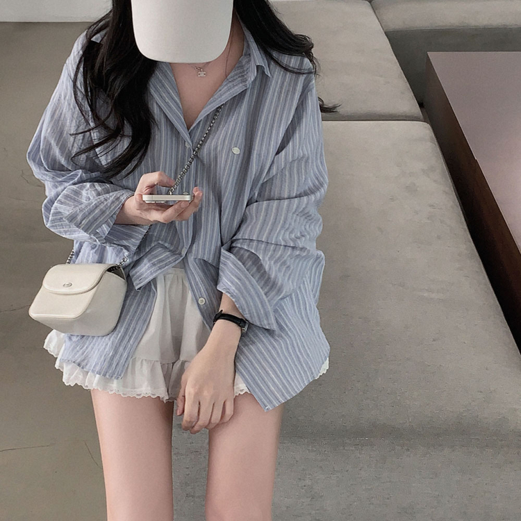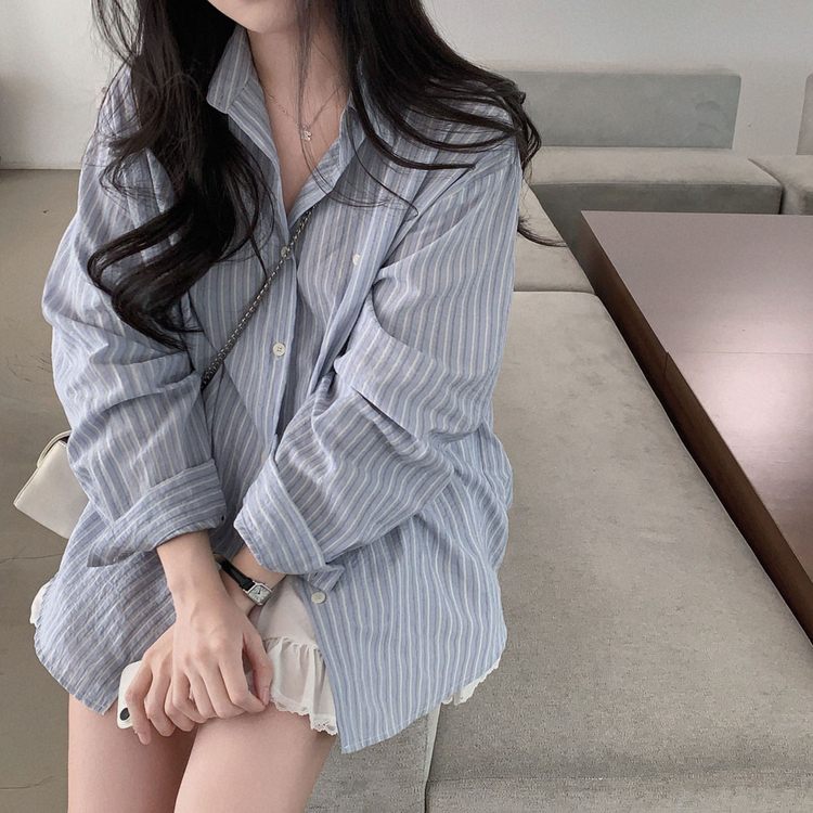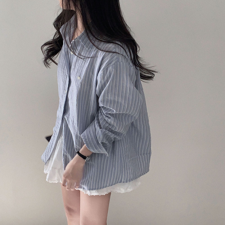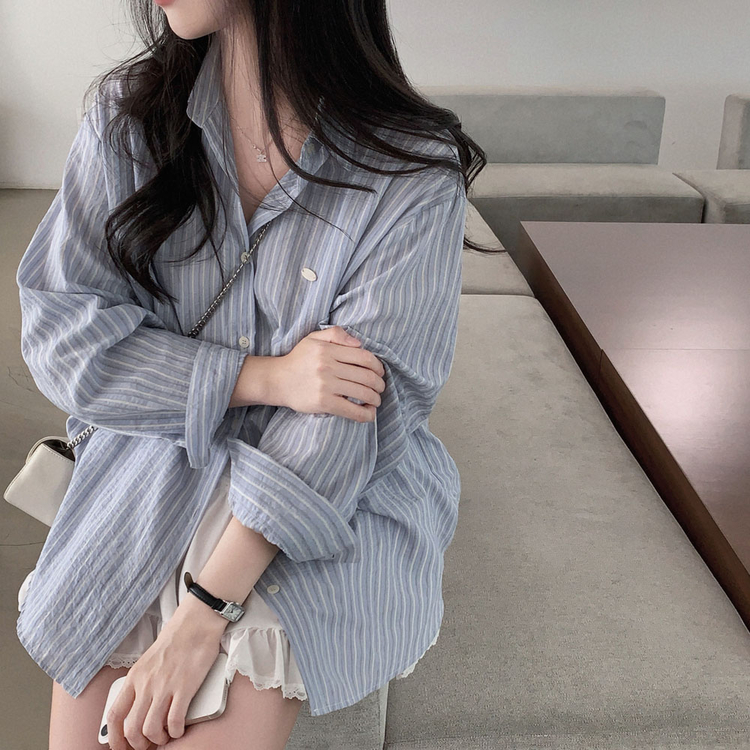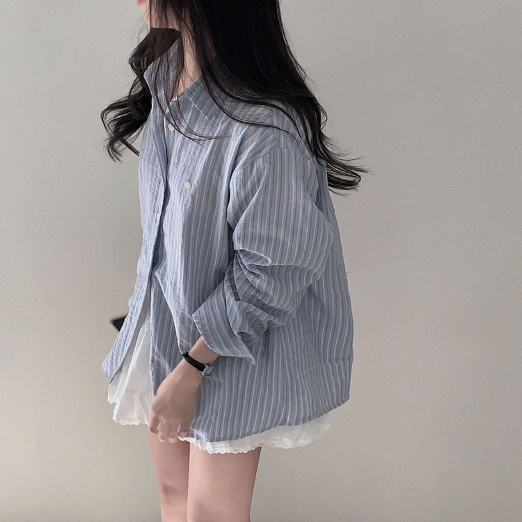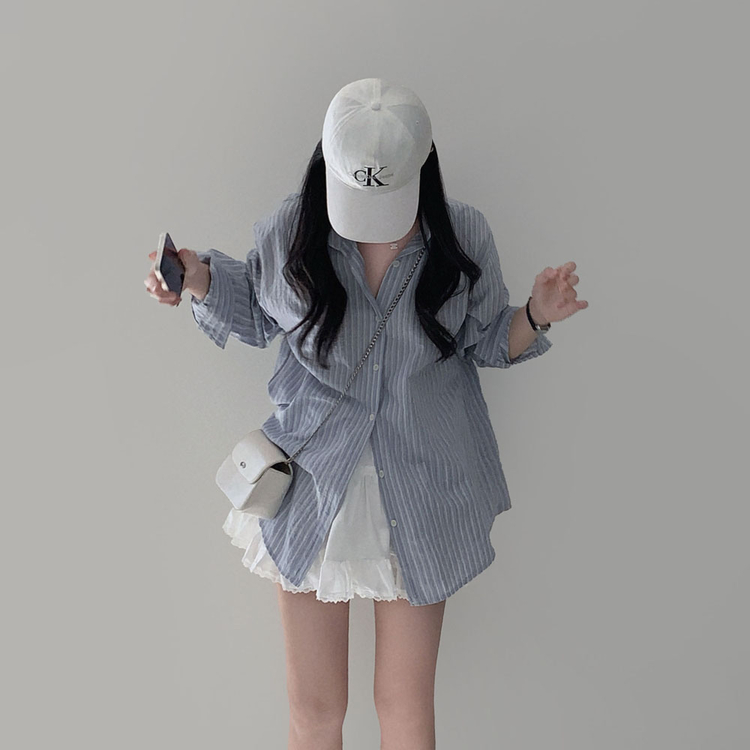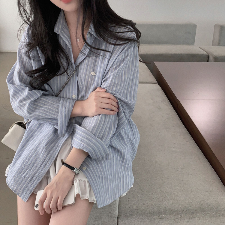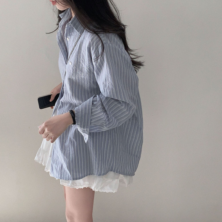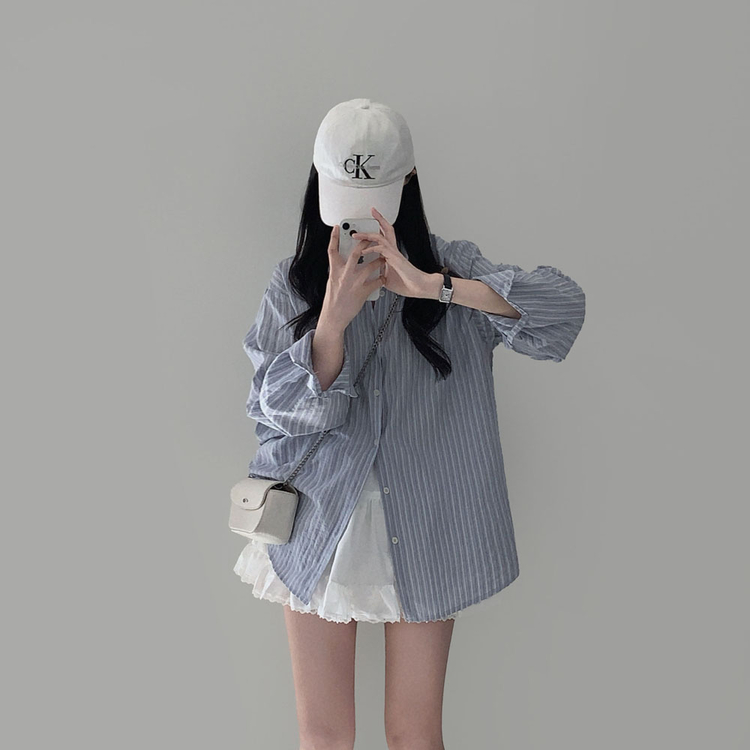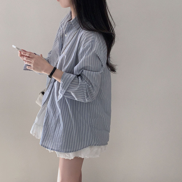 SBS25817 여름교복 확정피부에 달라붙지 않는 엠보싱 팬던트 스트라이프 루즈핏 셔츠 남방