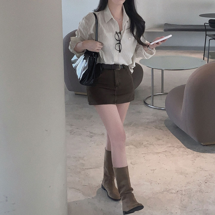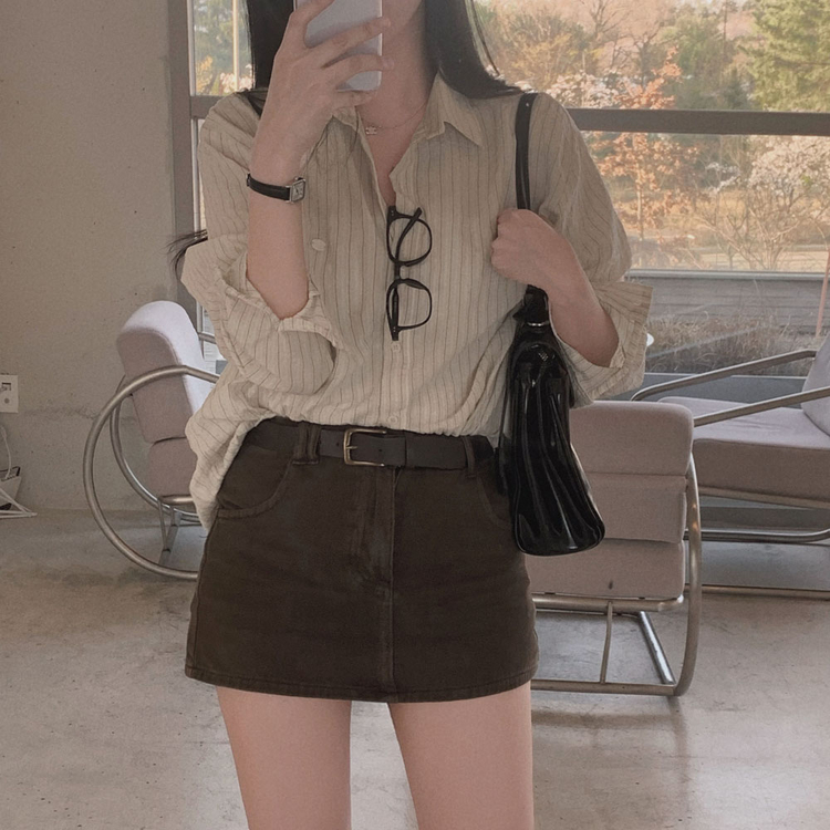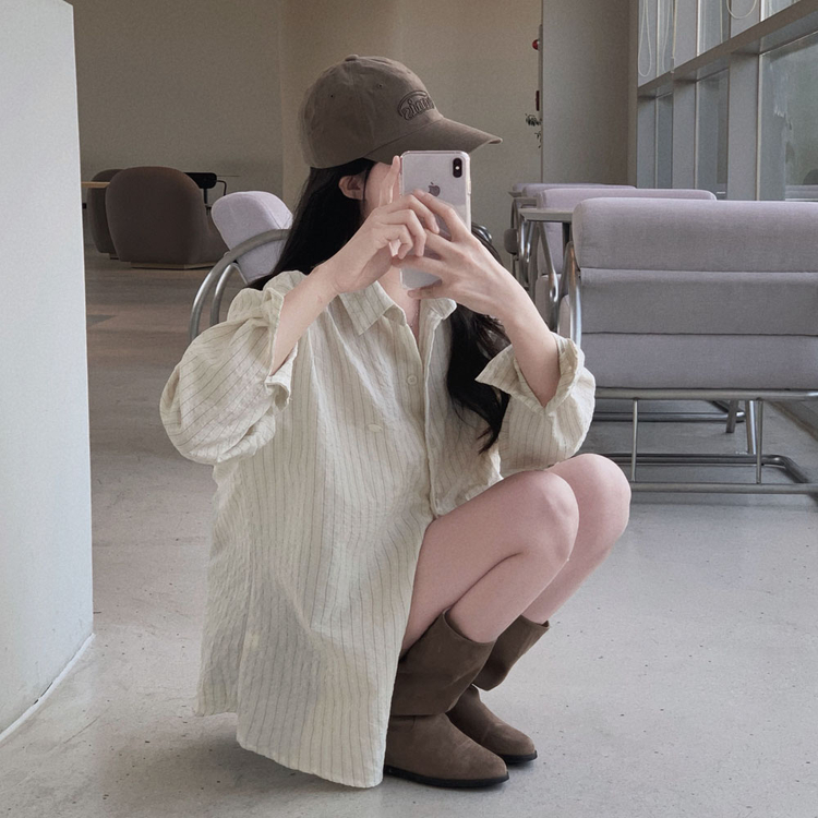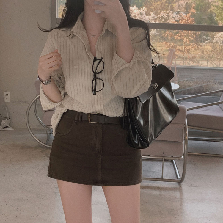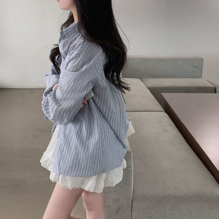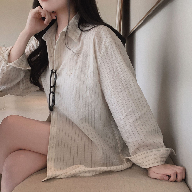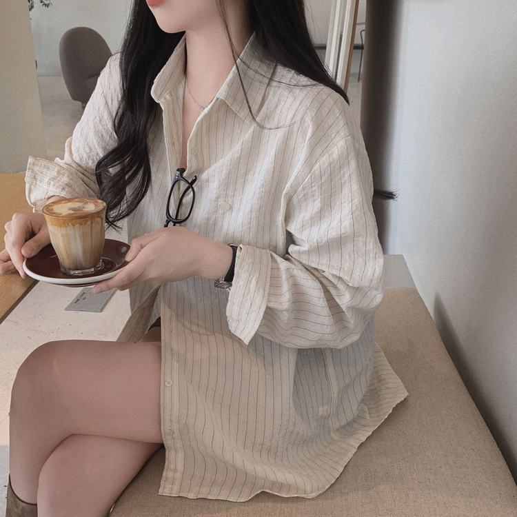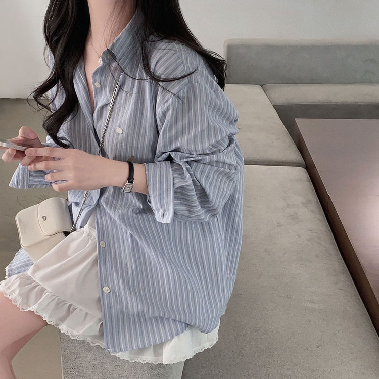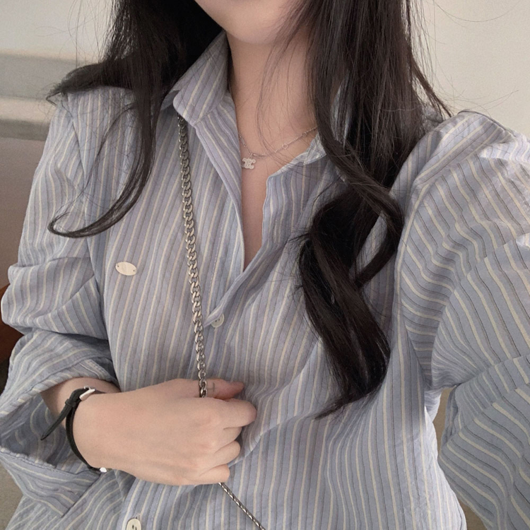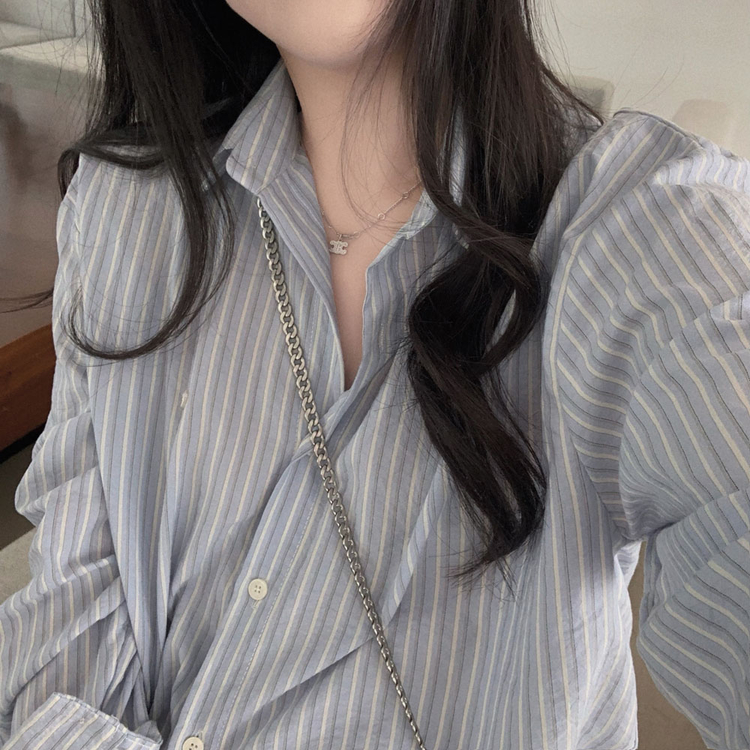 SBS25817 여름교복 확정피부에 달라붙지 않는 엠보싱 팬던트 스트라이프 루즈핏 셔츠 남방