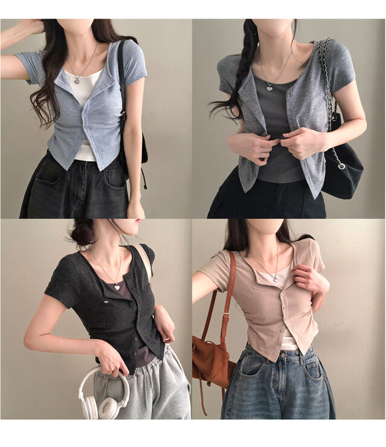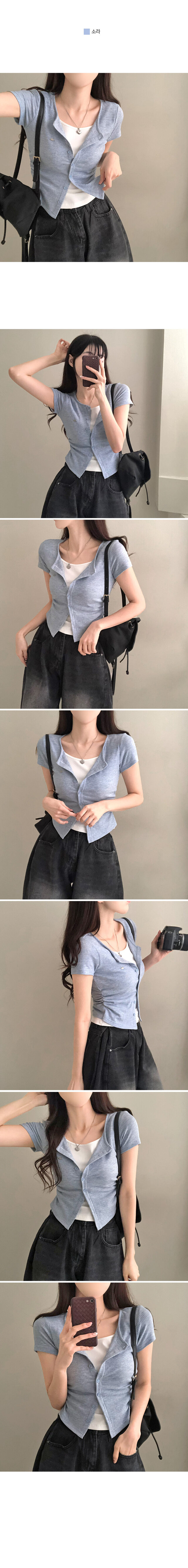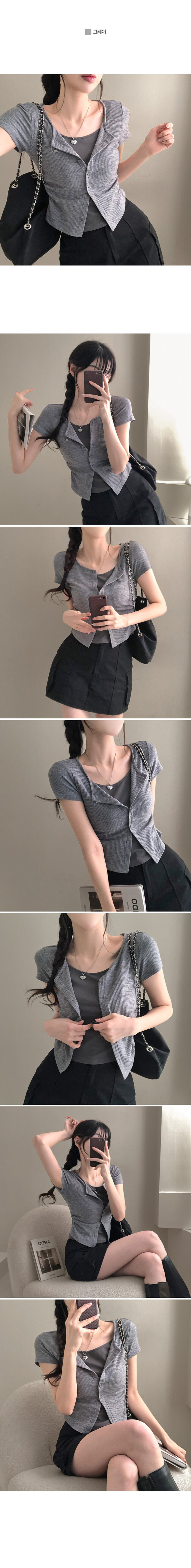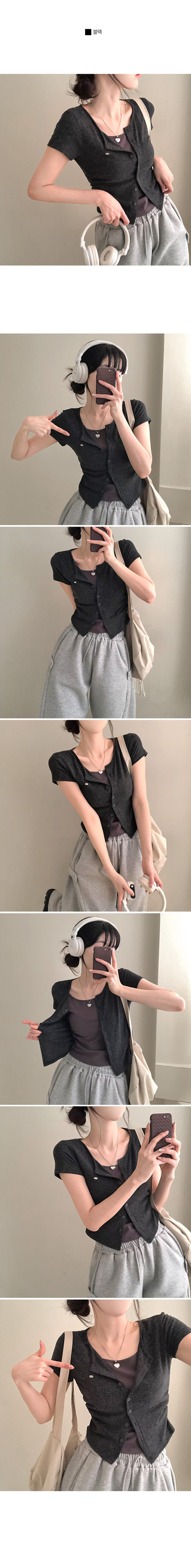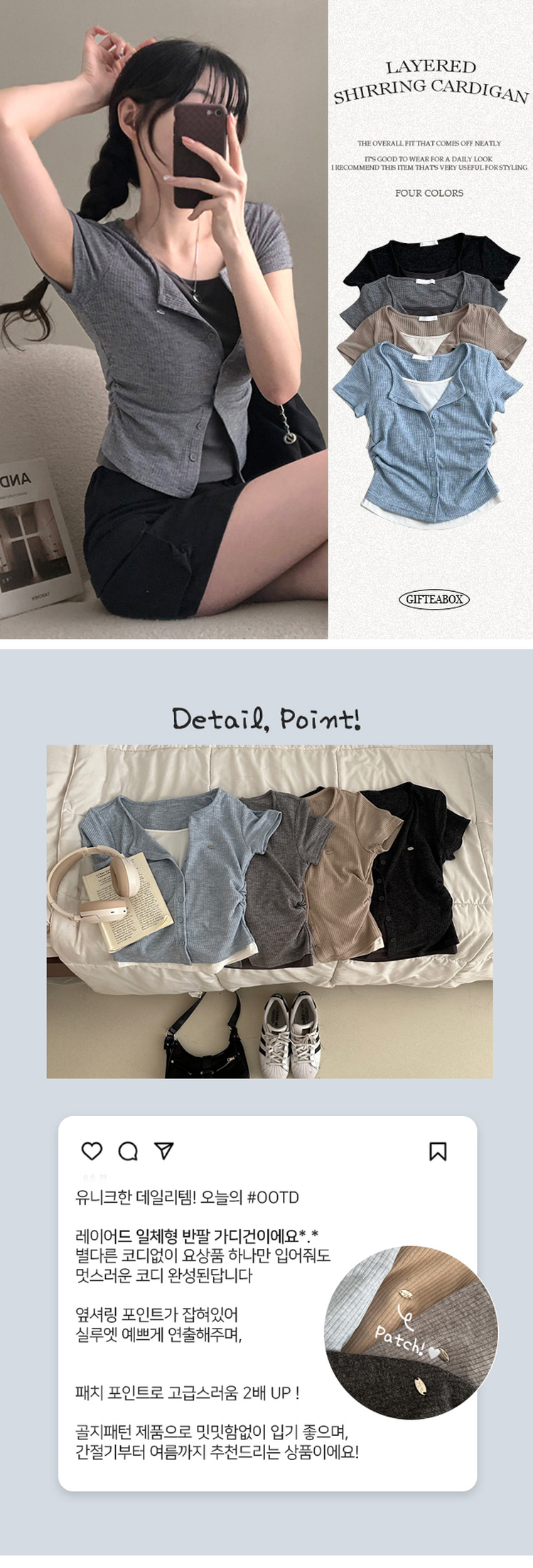 SGD27378 이븐 패치 이너 레이어드 반팔 셔링 가디건