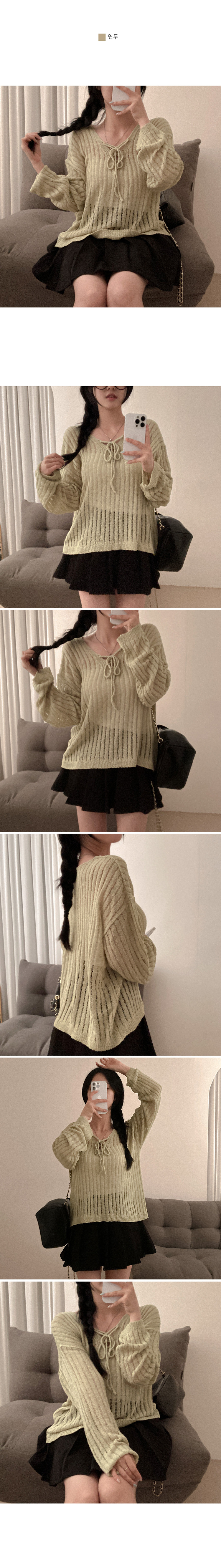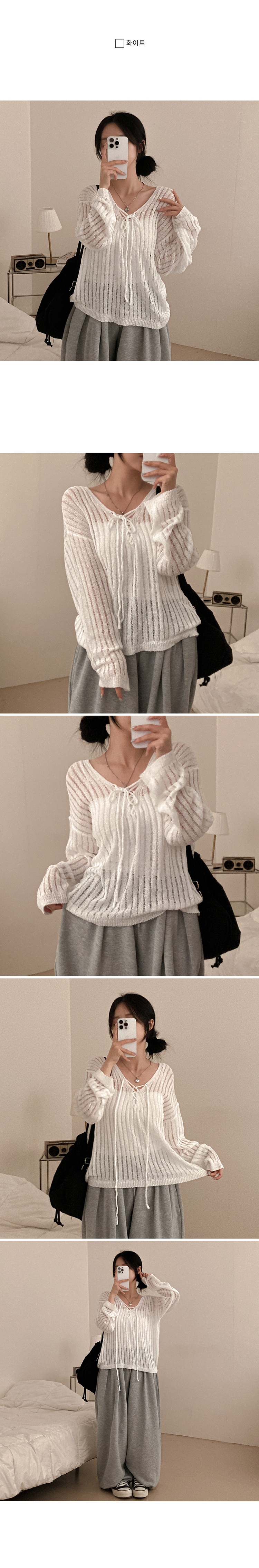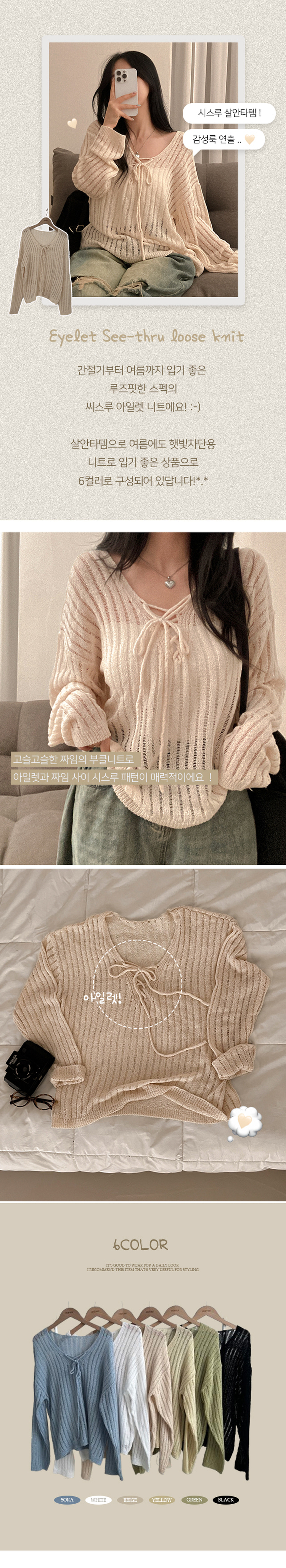 SNT31135 아일렛 리본 시스루 루즈핏 부클 니트
