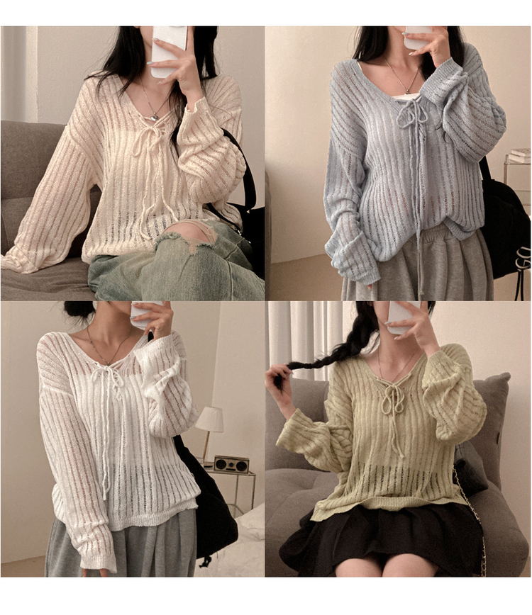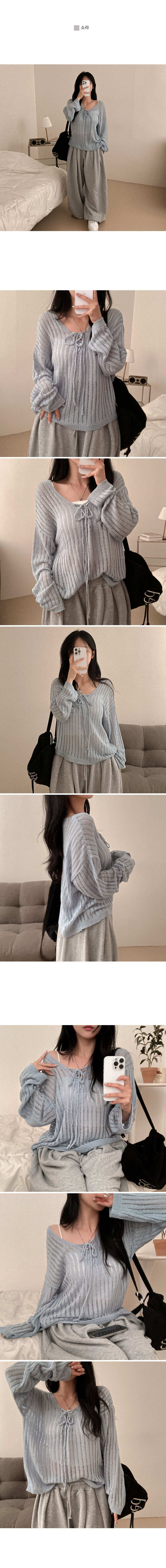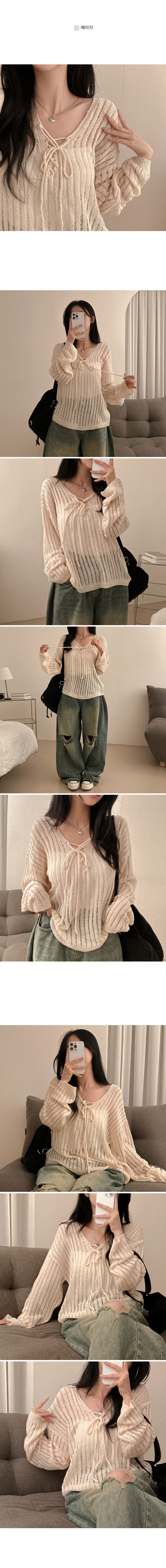 SNT31135 아일렛 리본 시스루 루즈핏 부클 니트
