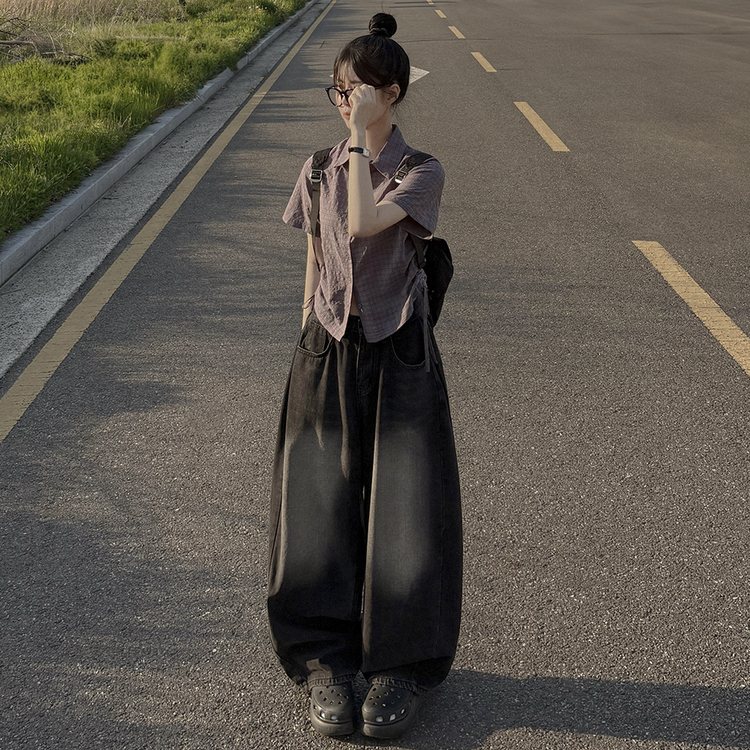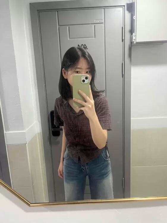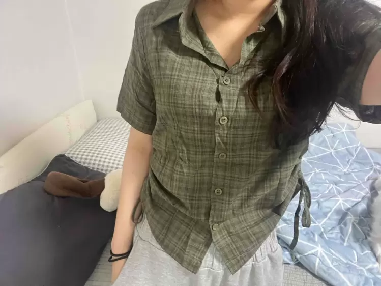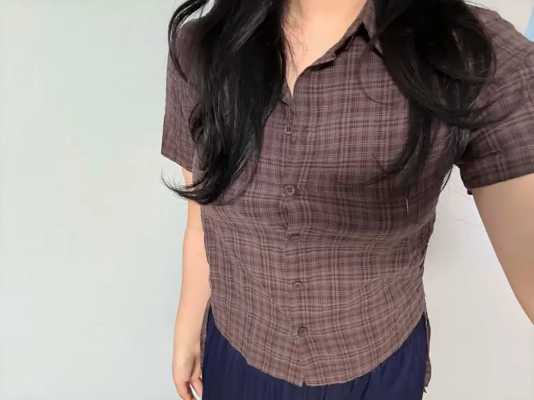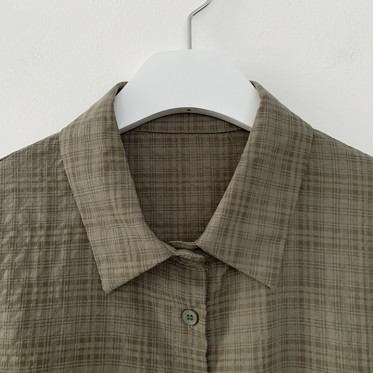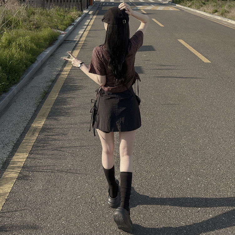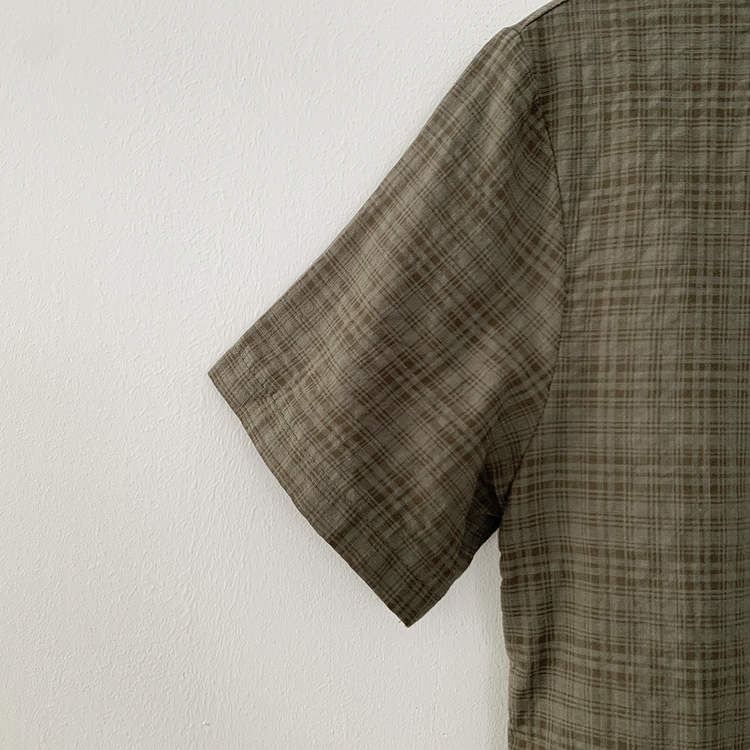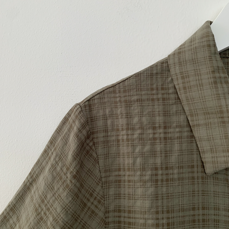 SBS26277 너드러블리 옆셔링 스트링 무채색 버건디 여름 반팔 크롭 체크셔츠 남방