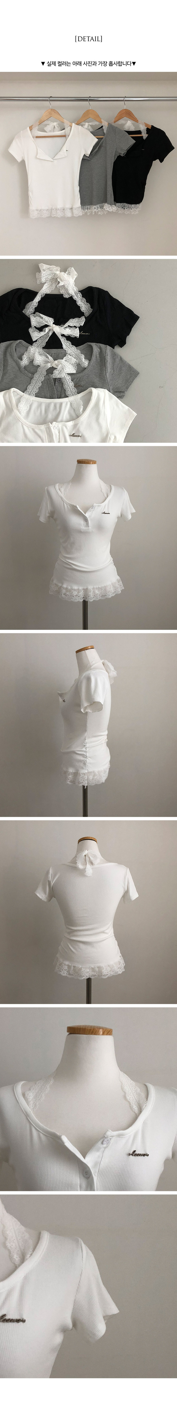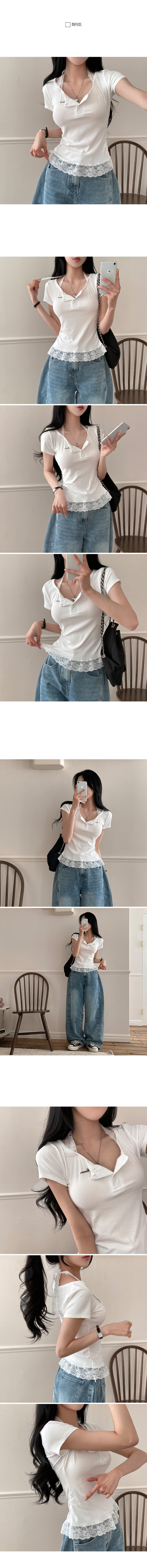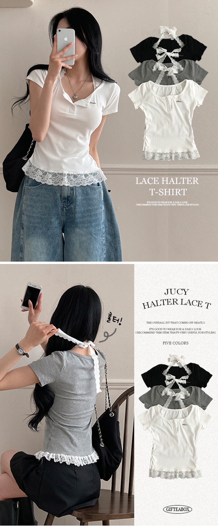STS66603 쥬시 레이스 홀터 실퍼 패치 프릴 반팔 티셔츠