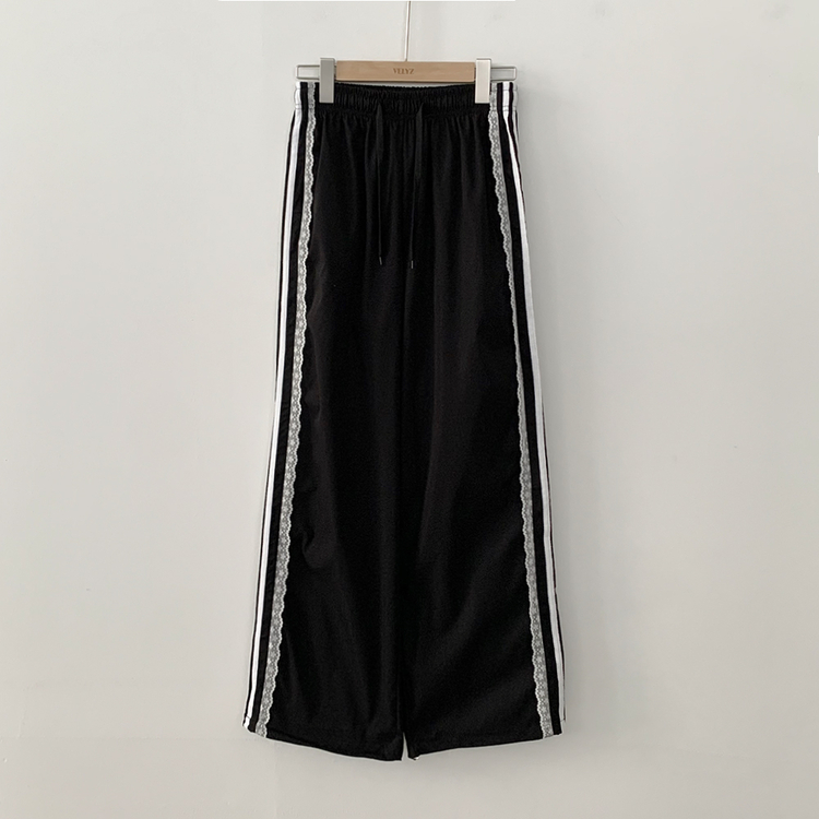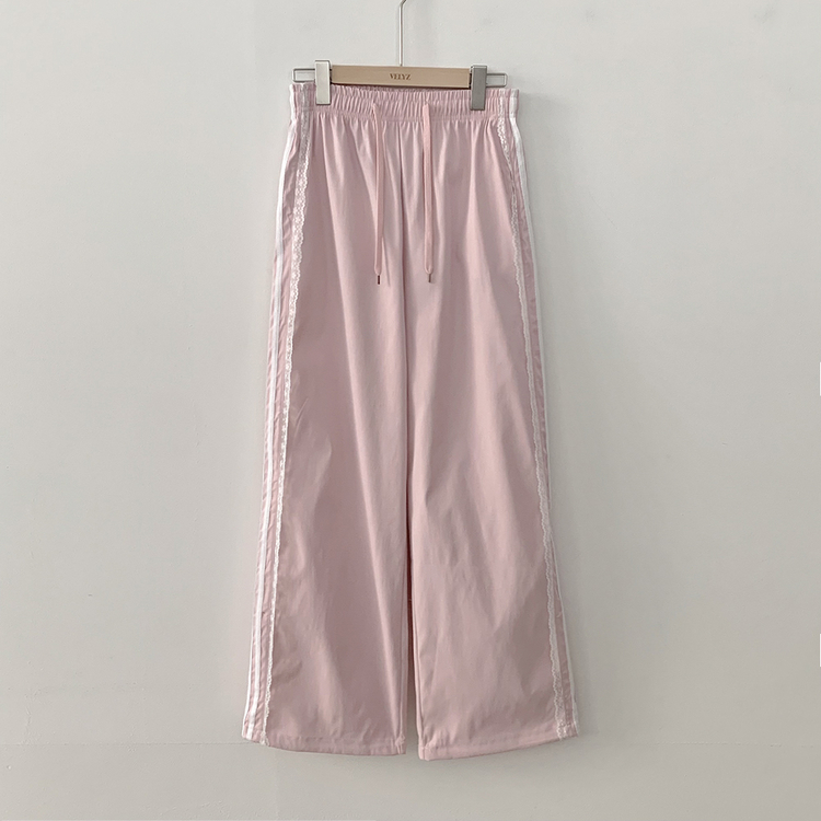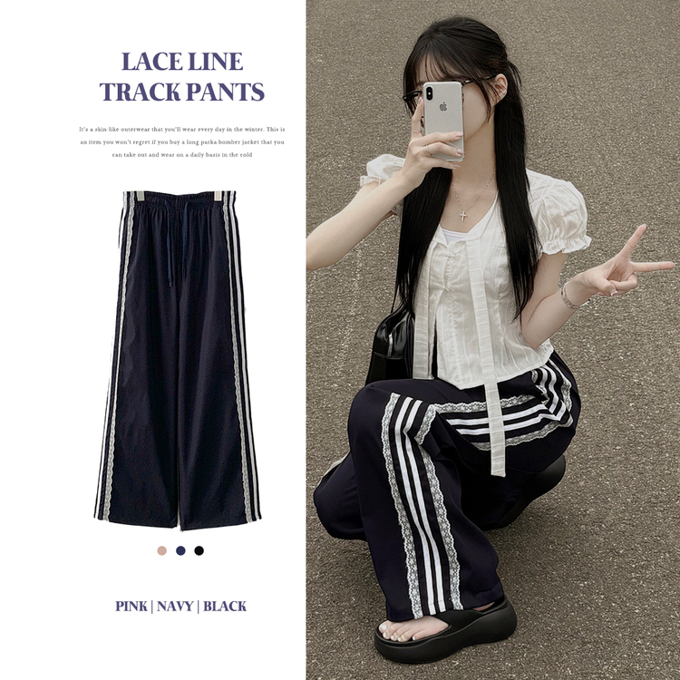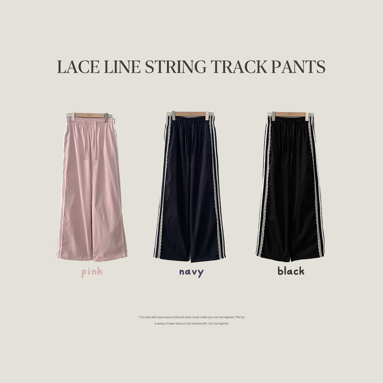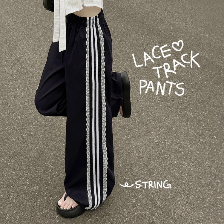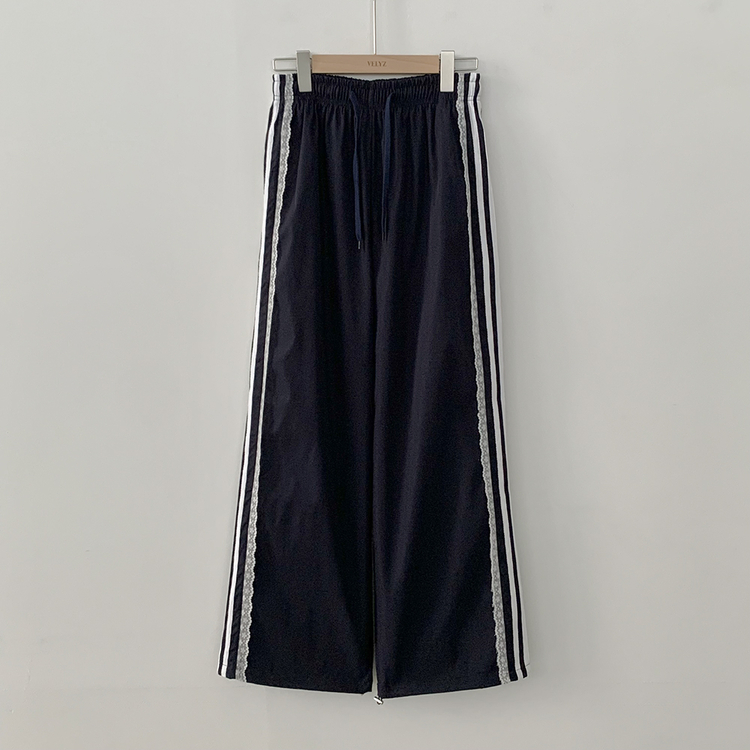 SPS34095 여름재질 나일론 레이스 두줄 네줄 라인 밴딩 스트링 트랙 롱팬츠 스포티스파이스