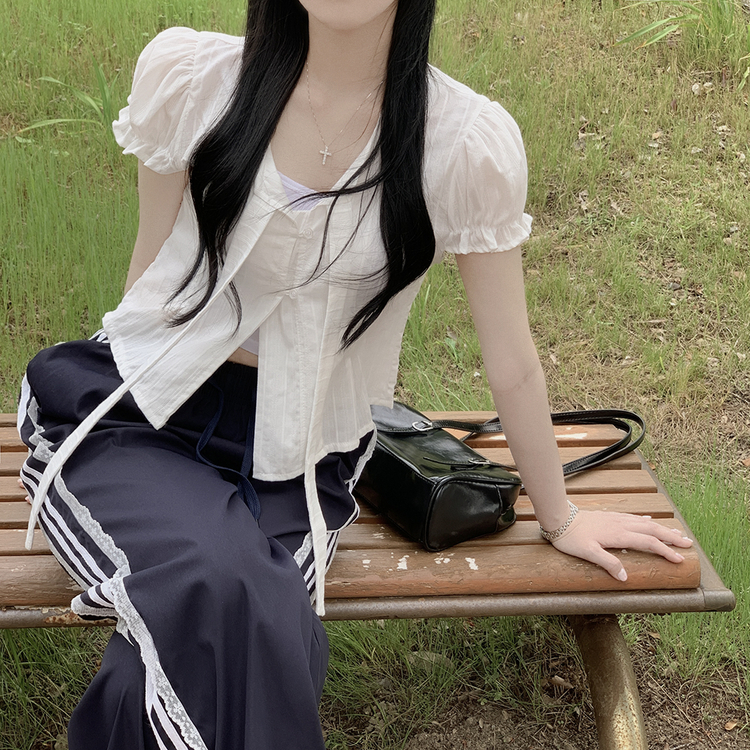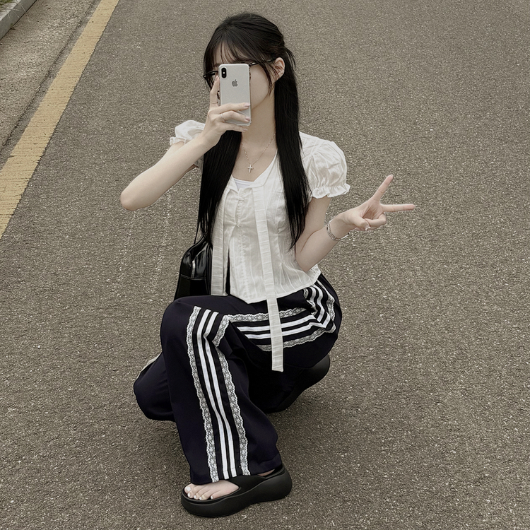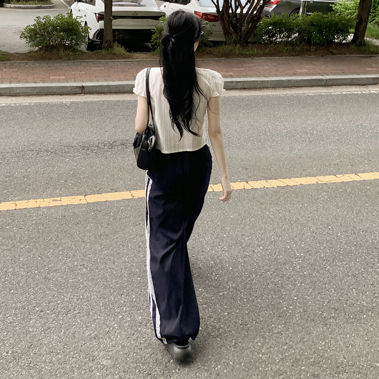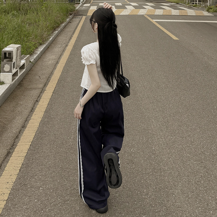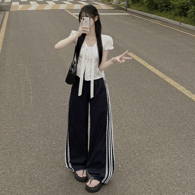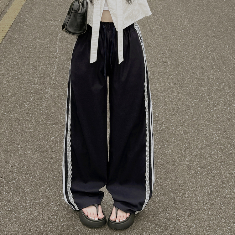 SPS34095 여름재질 나일론 레이스 두줄 네줄 라인 밴딩 스트링 트랙 롱팬츠 스포티스파이스