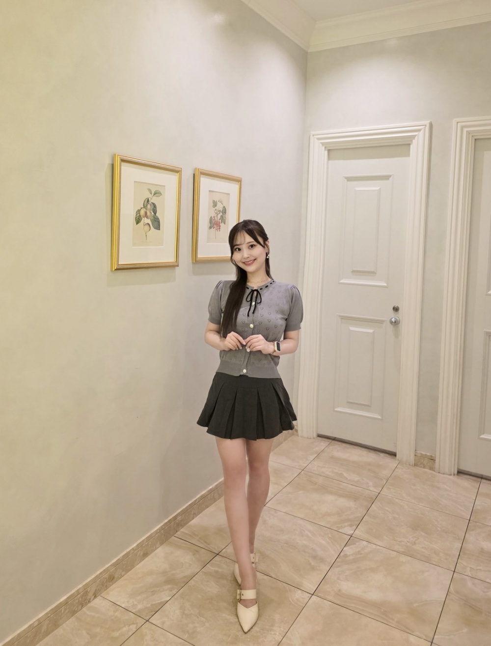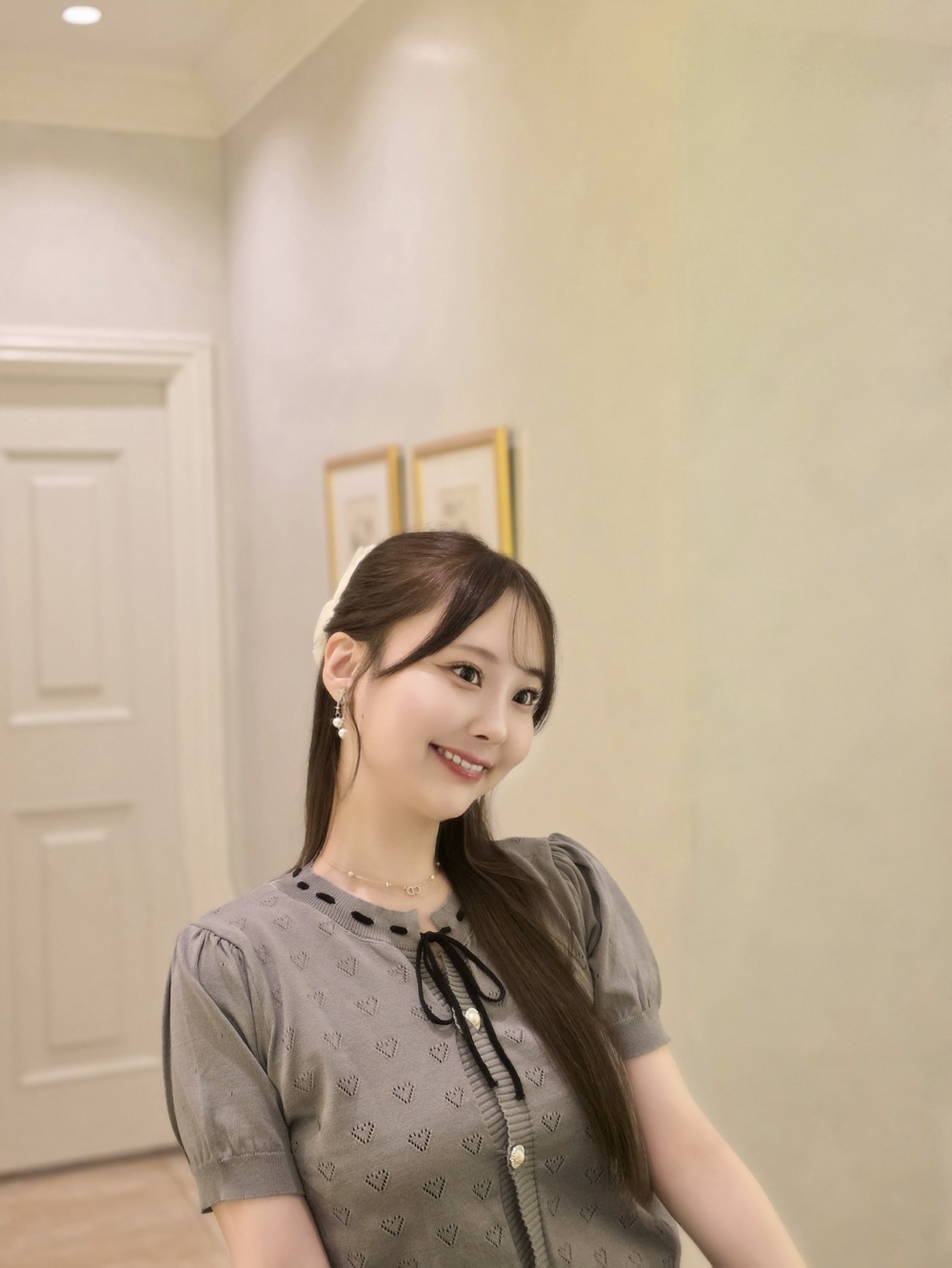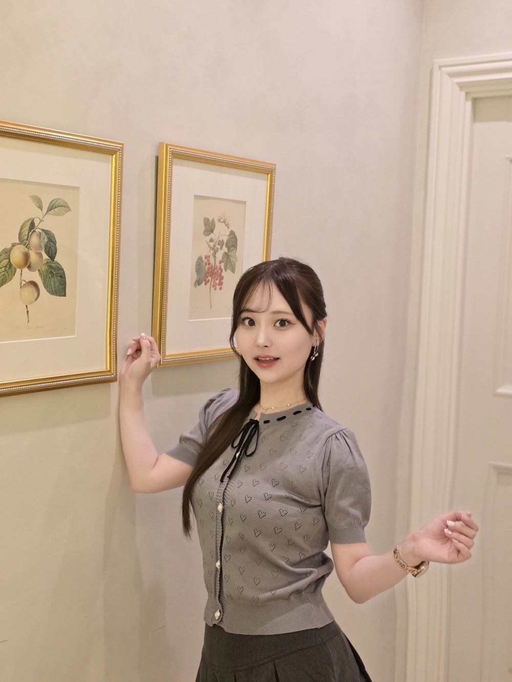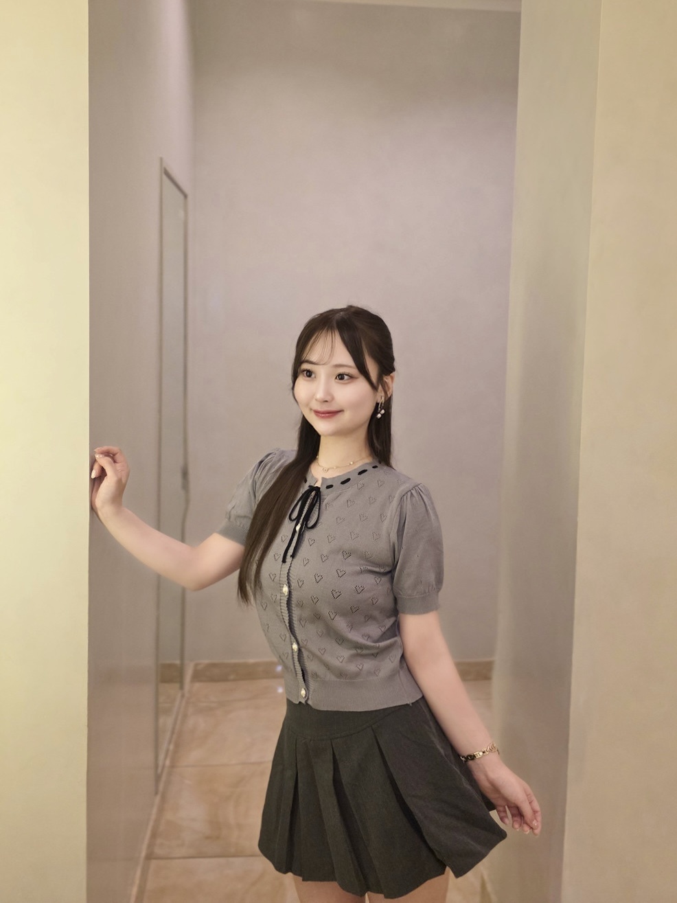 SNT31576 하트 펀칭 리본 반팔 가디건