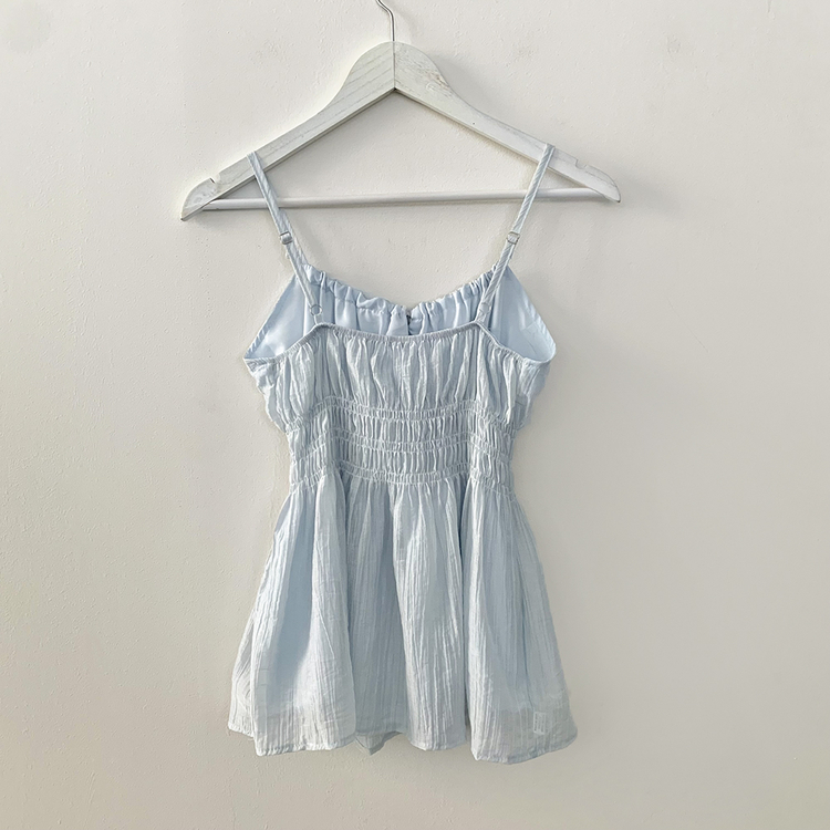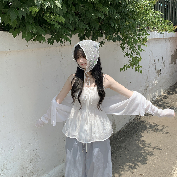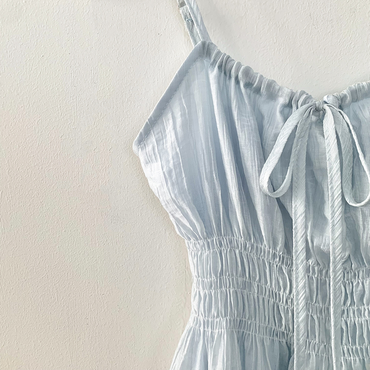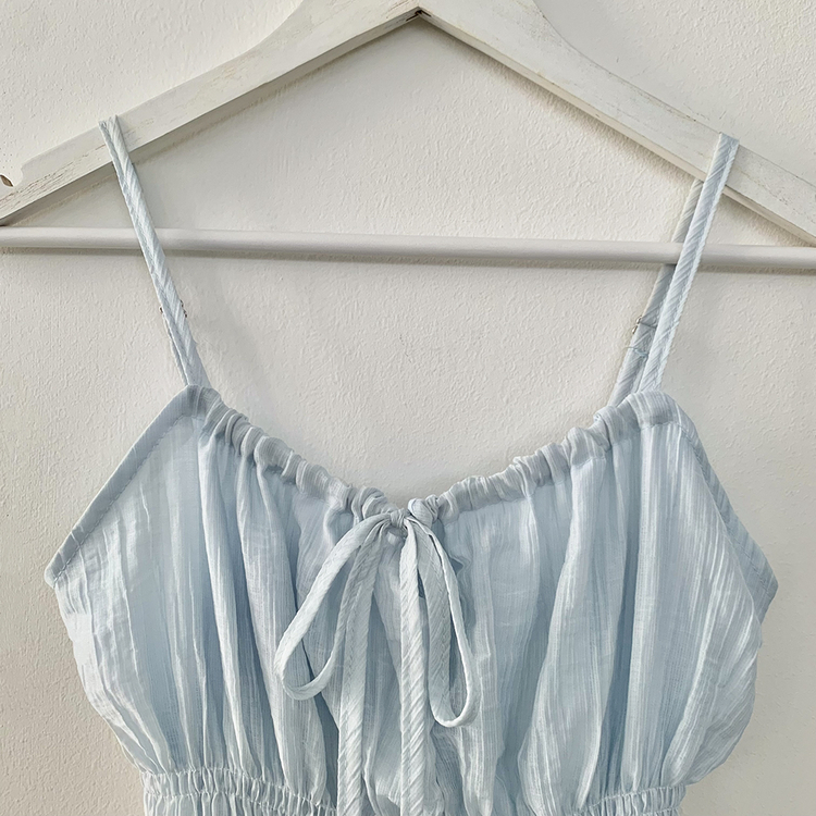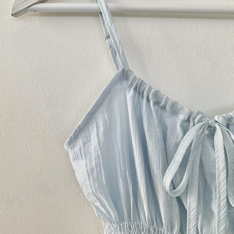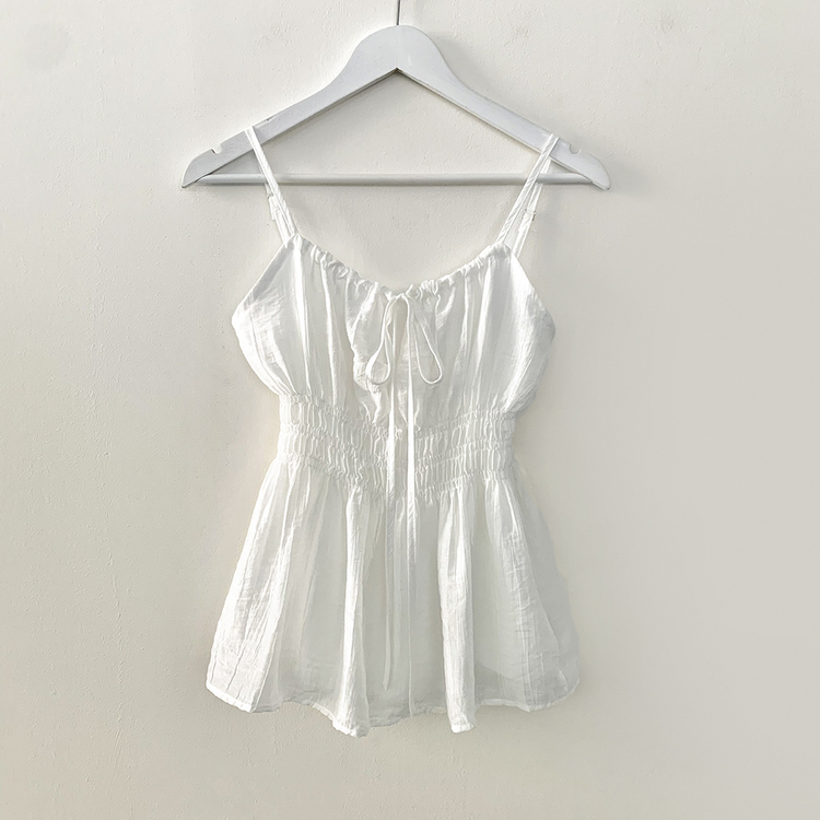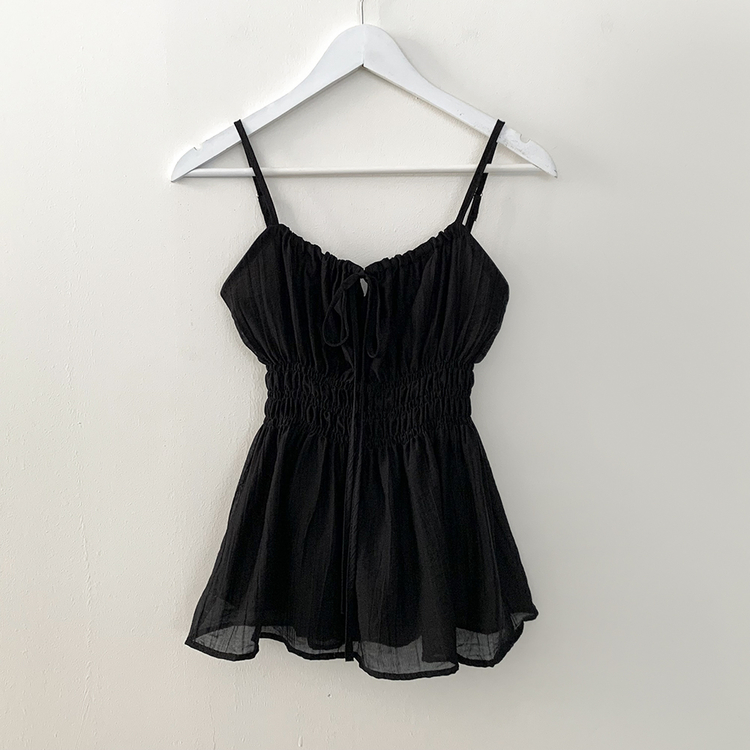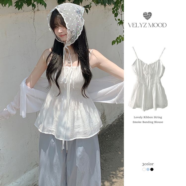 SBS28473 청순러블리 셔링 플레어 쉬폰 끈나시 모리걸 블라우스 편한 여름휴가룩 바캉스