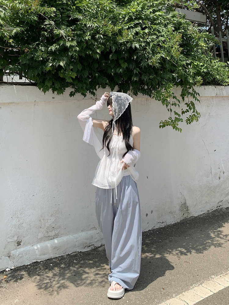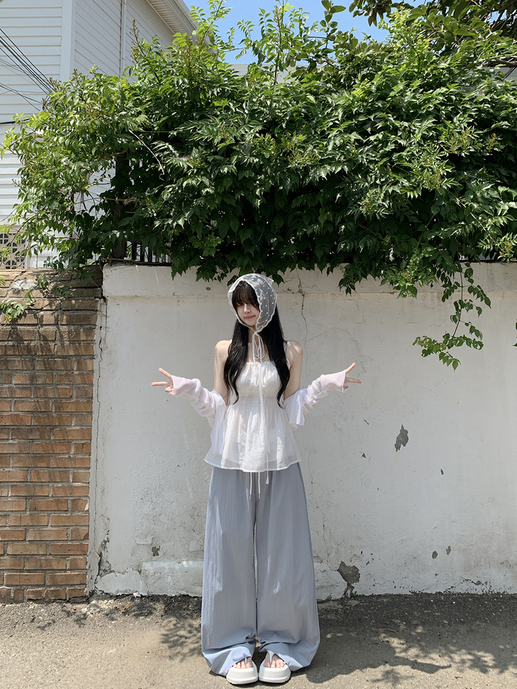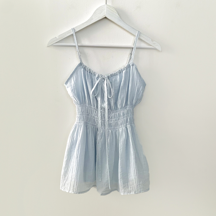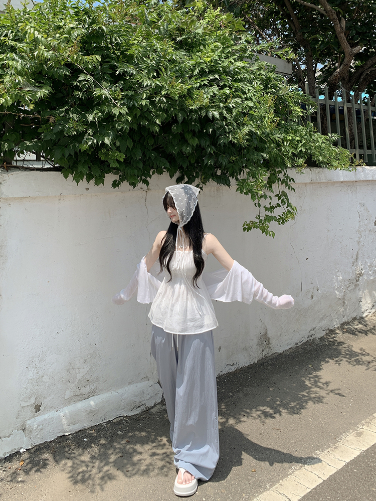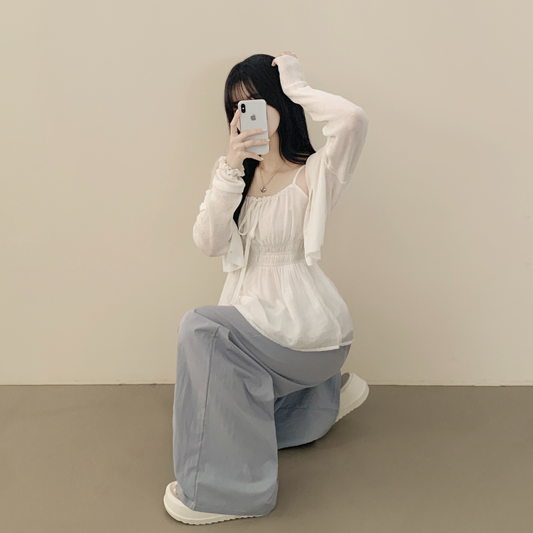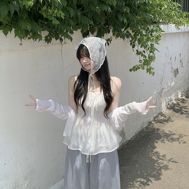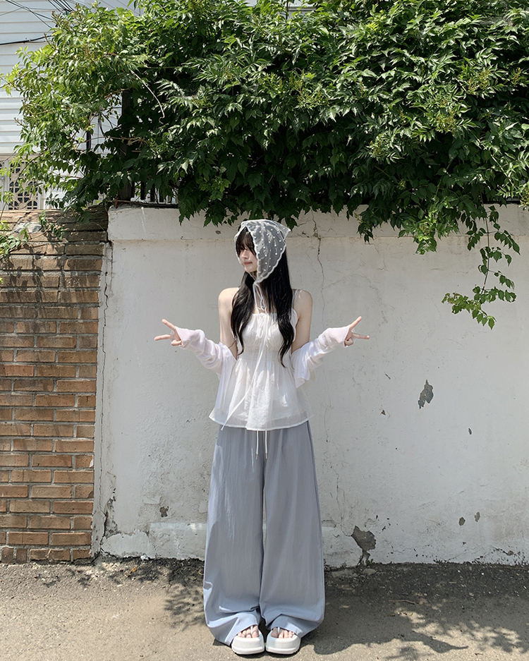 SBS28473 청순러블리 셔링 플레어 쉬폰 끈나시 모리걸 블라우스 편한 여름휴가룩 바캉스