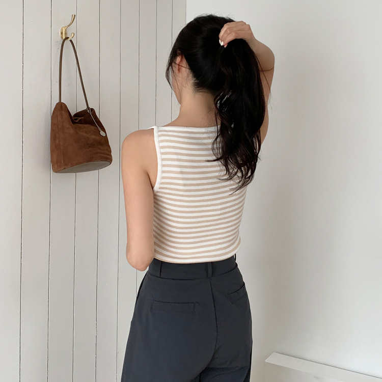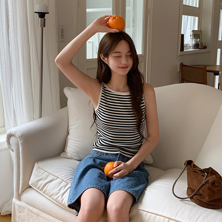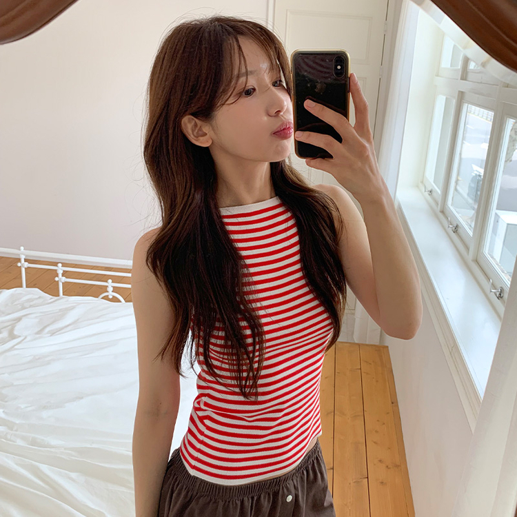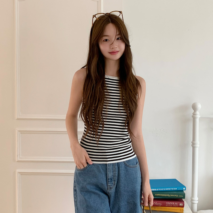 STS69916 nt5137 (여름데일리템/만능코디♥/부유방커버O) 노이븐 배색 스트라이프 슬리브리스 니트