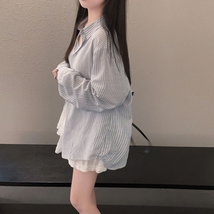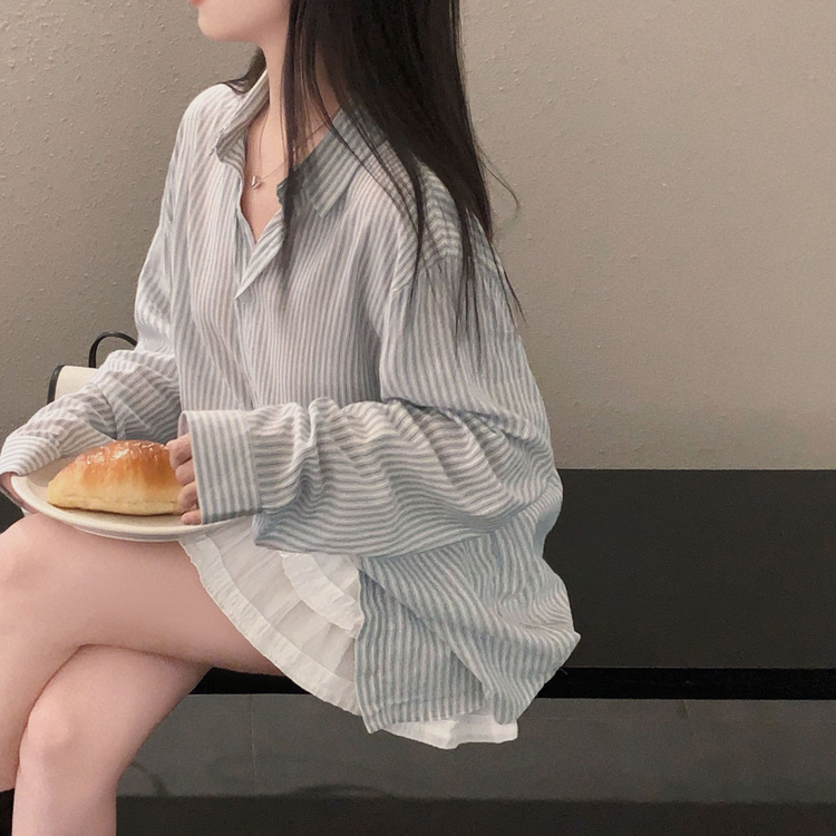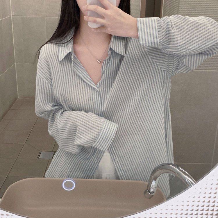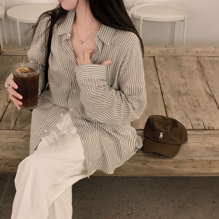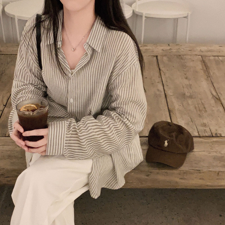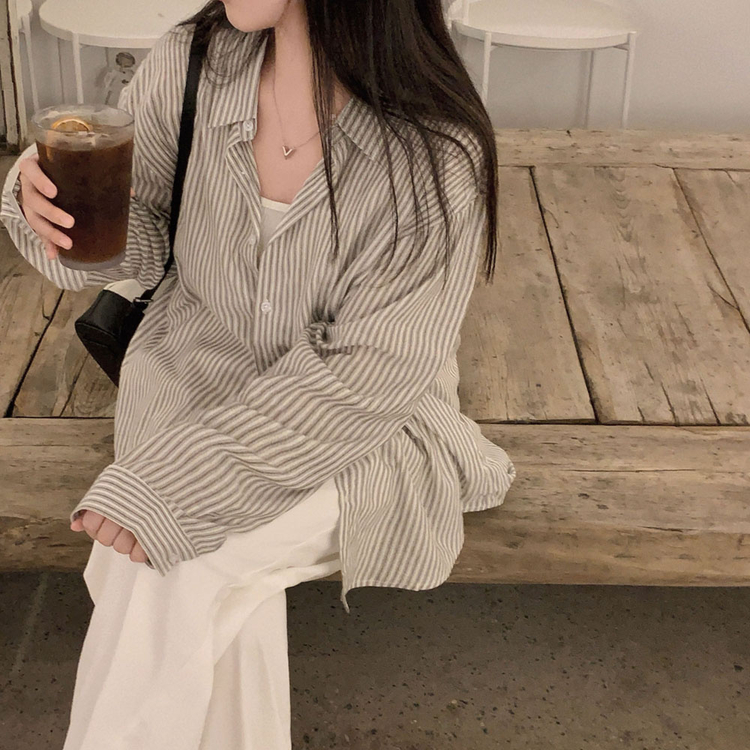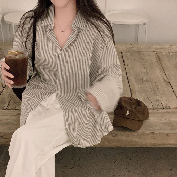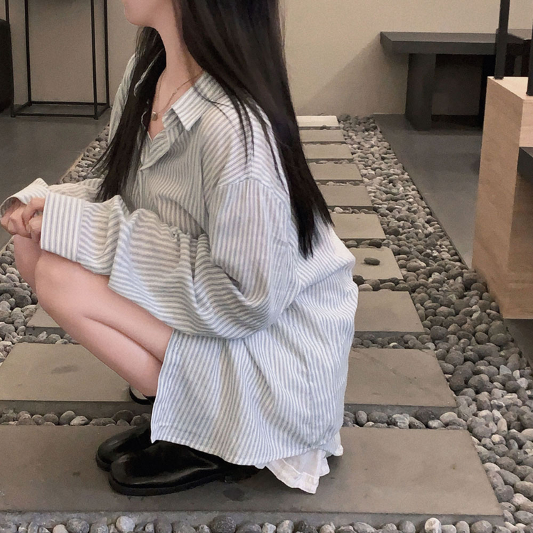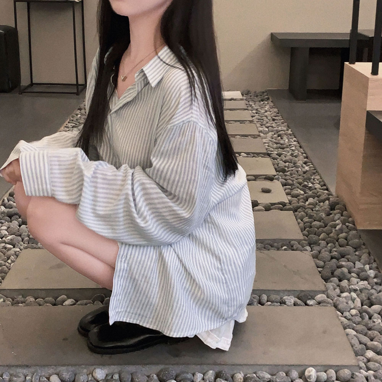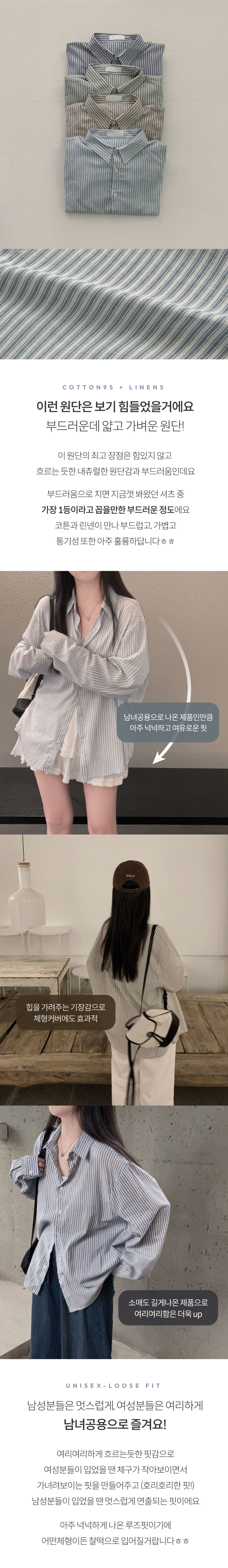 SBS28811 구름이야 셔츠야소프트 스트라이프 루즈핏 남녀공용 긴팔셔츠
