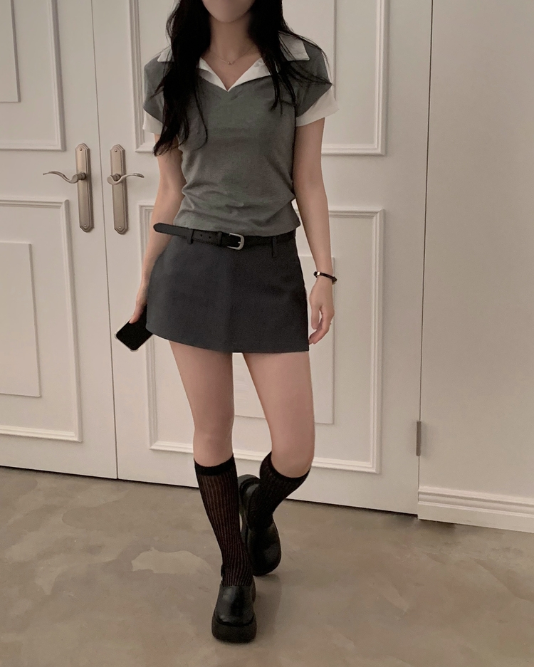 SSK23817 라이징 트임 라인 치마바지 미니스커트 3color