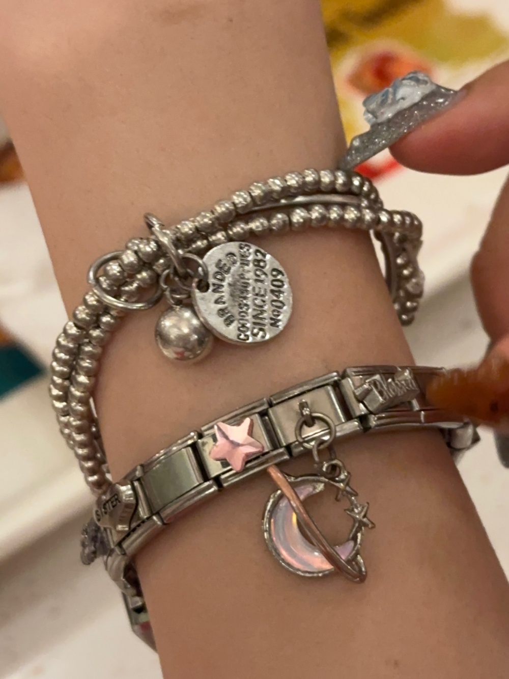 SAC8159 실버 비즈 볼 레이어드 팔찌
