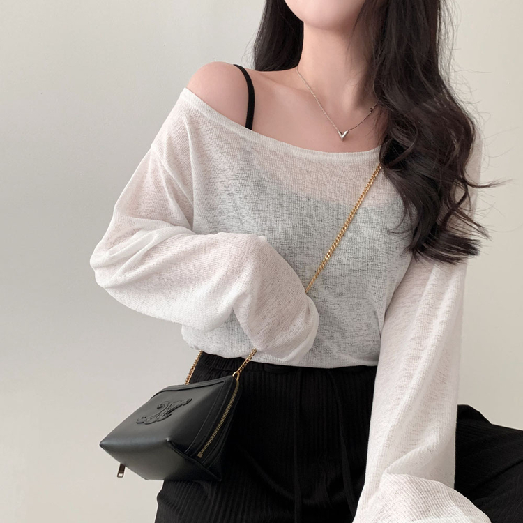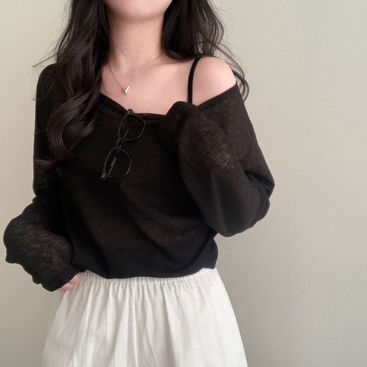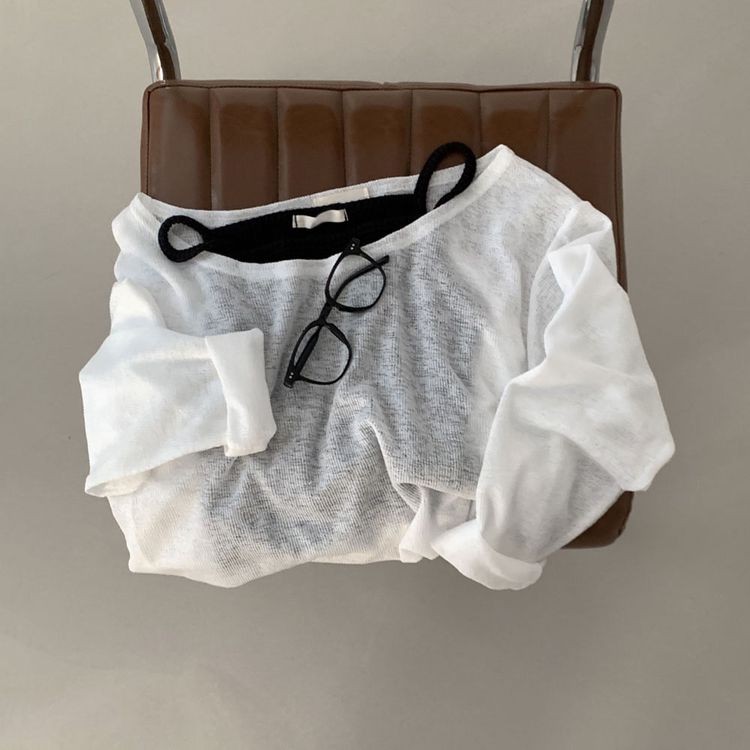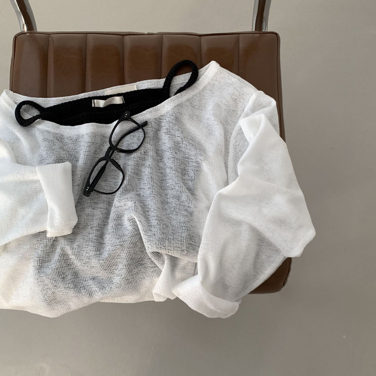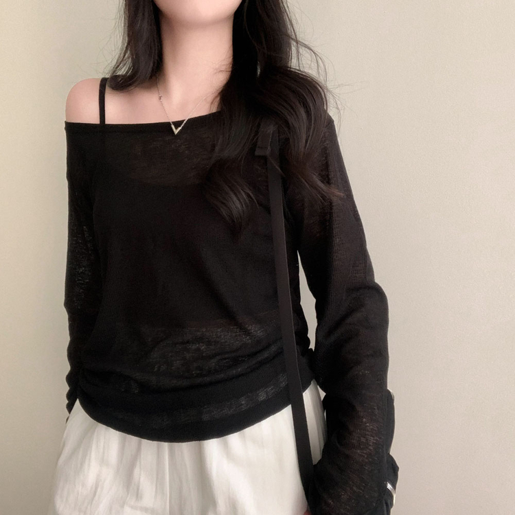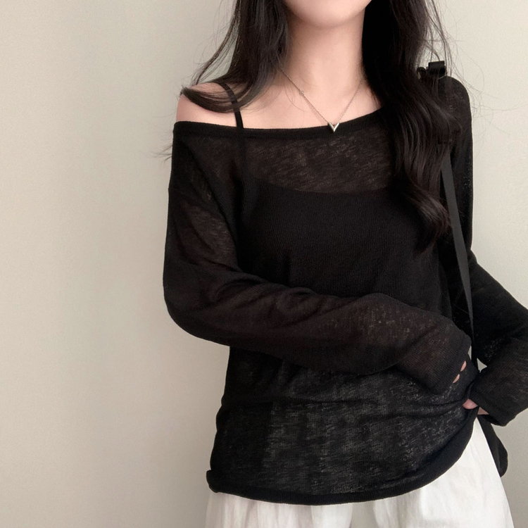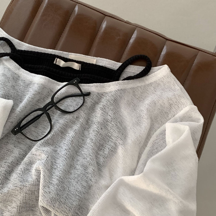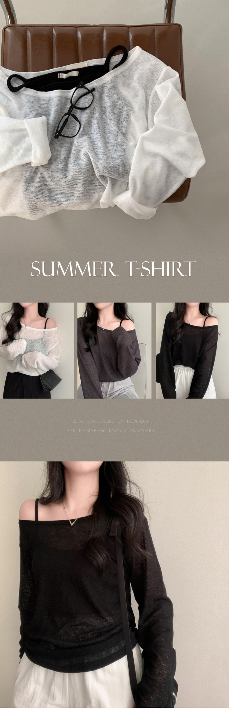 STS70811 애쉬 시스루 오프숄더 원숄더 루즈핏 긴팔 티셔츠