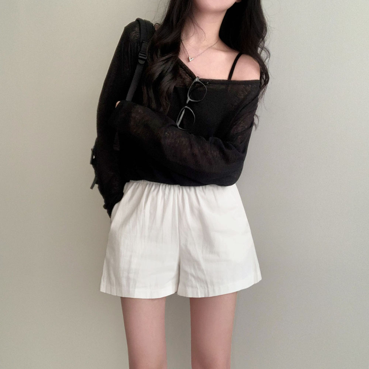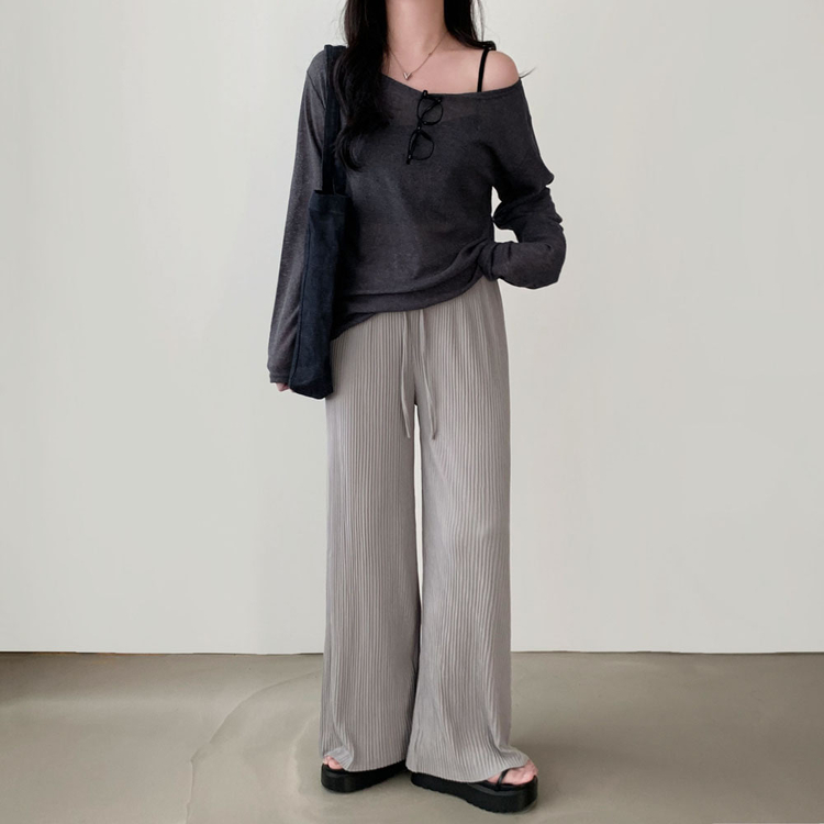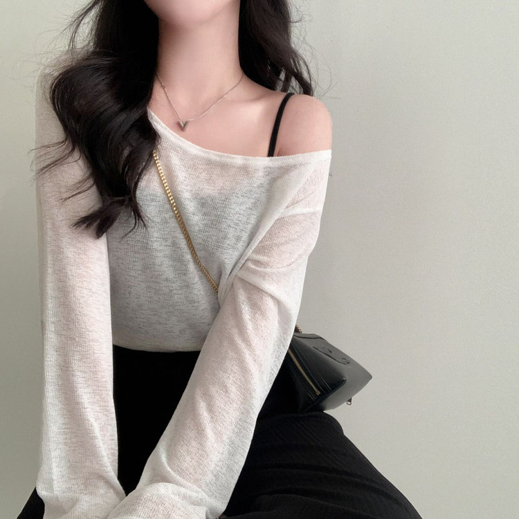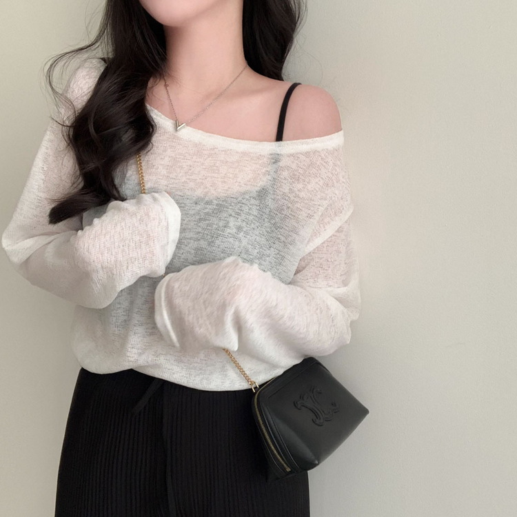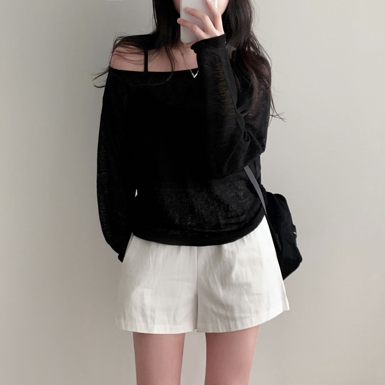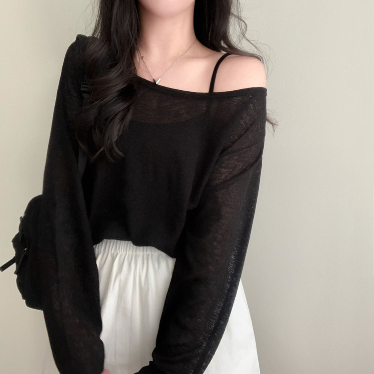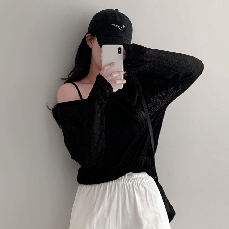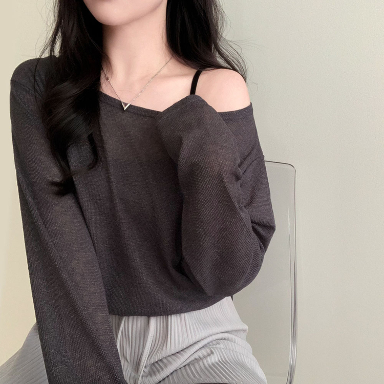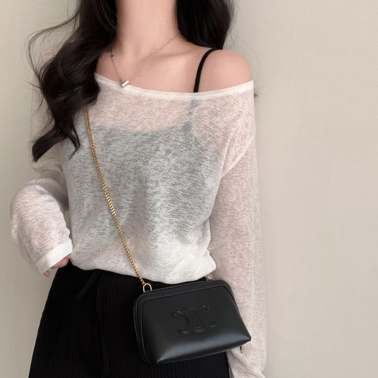 STS70811 애쉬 시스루 오프숄더 원숄더 루즈핏 긴팔 티셔츠