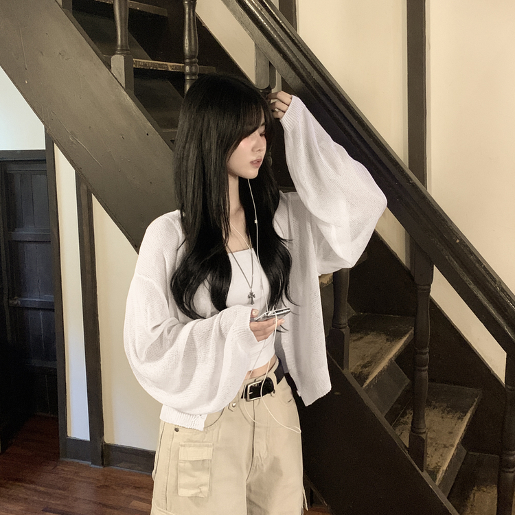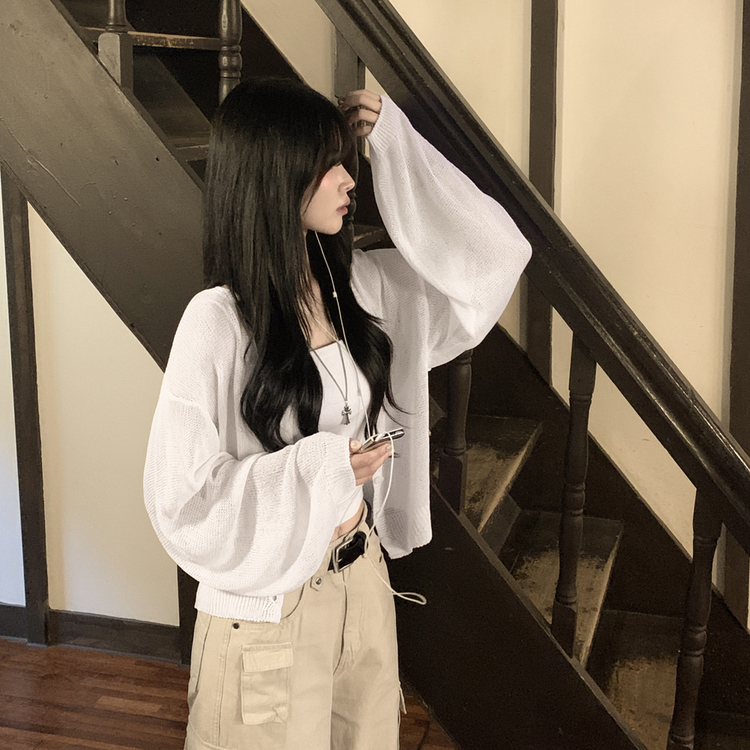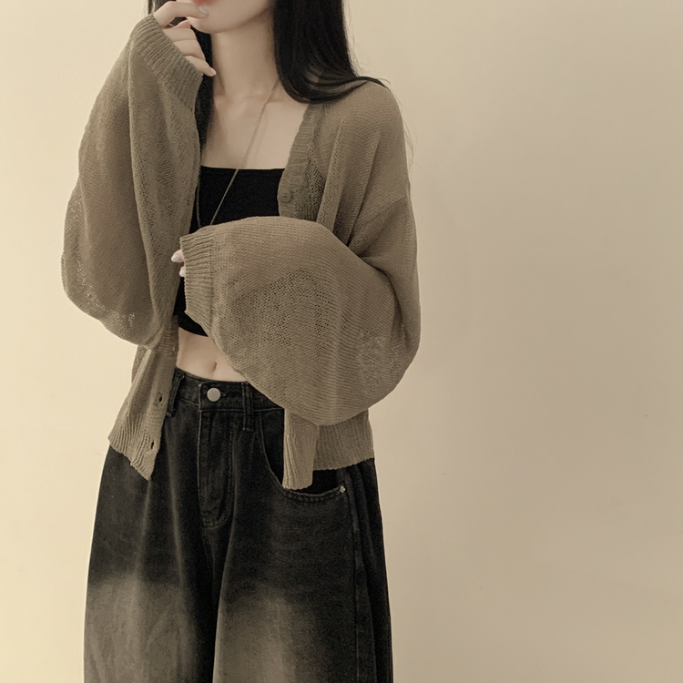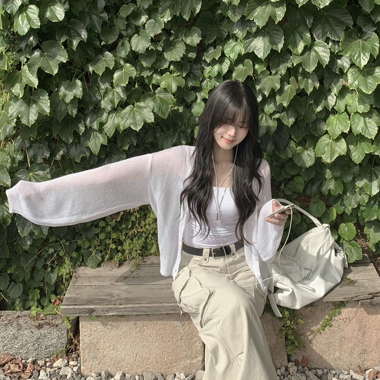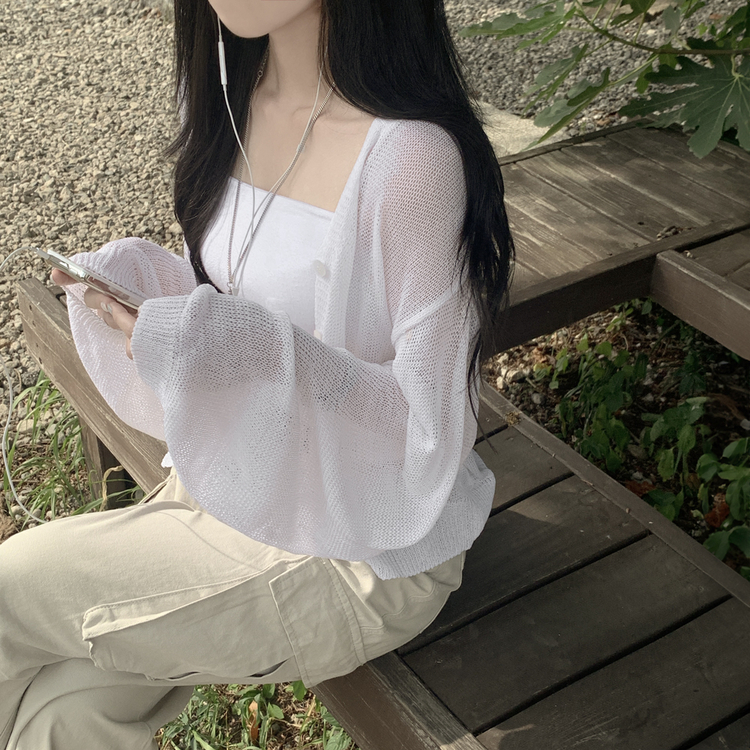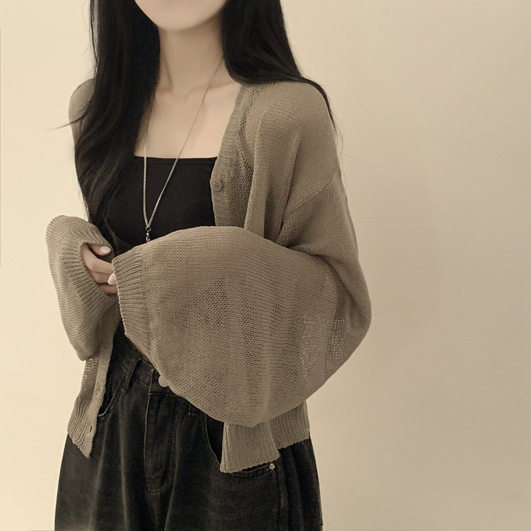 SGD28345 안입은듯 시원 아방핏 시스루 벌룬 크롭 박시 니트가디건 여름 간절기 가디건 빅사이즈